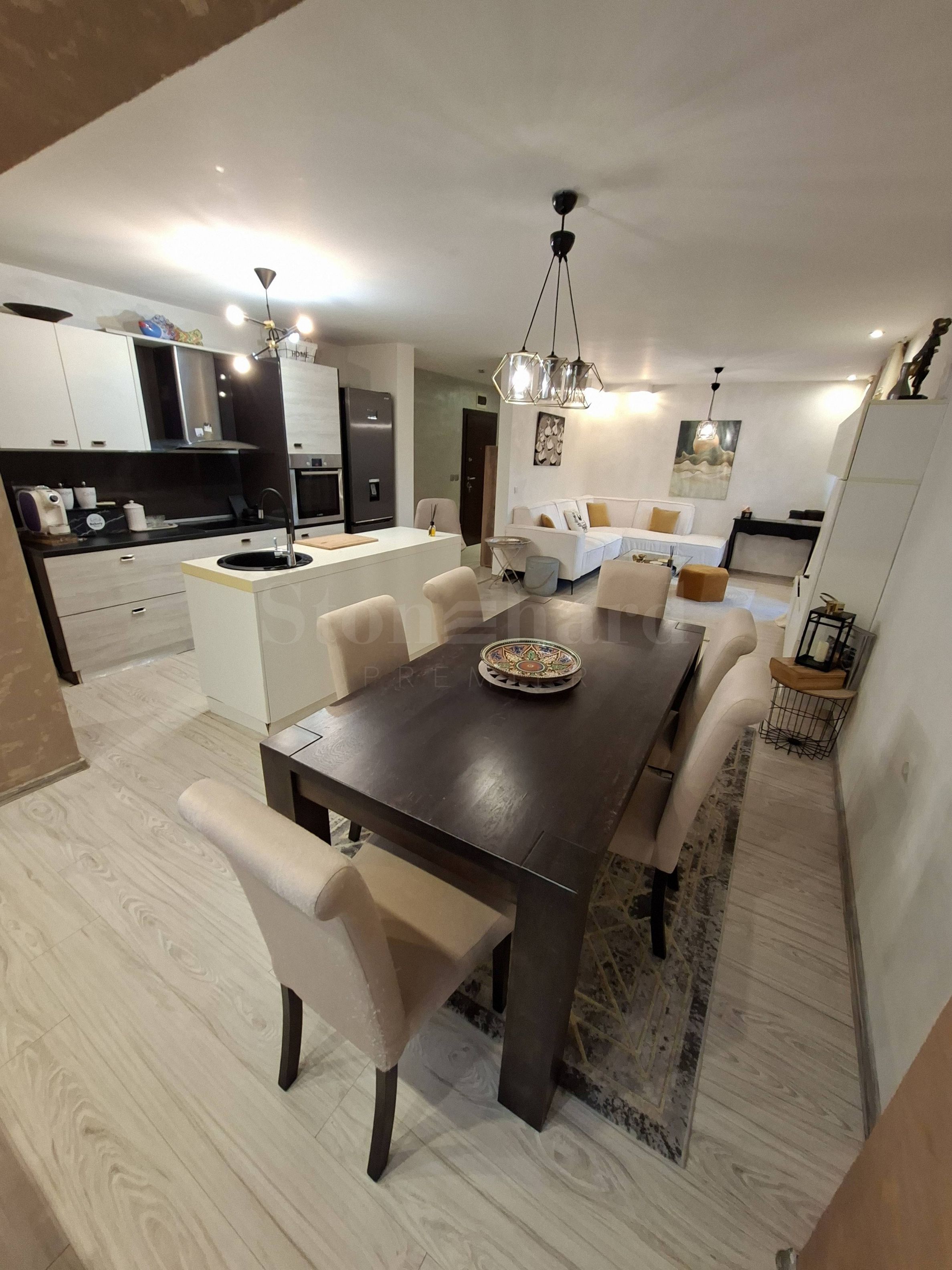 Mieszkanie jest w pełni umeblowane i wyposażone w wysokiej klasy materiały, meble i sprzęt AGD. Nadaje się zarówno do użytku osobistego, całorocznego, jak i inwestycyjnego.