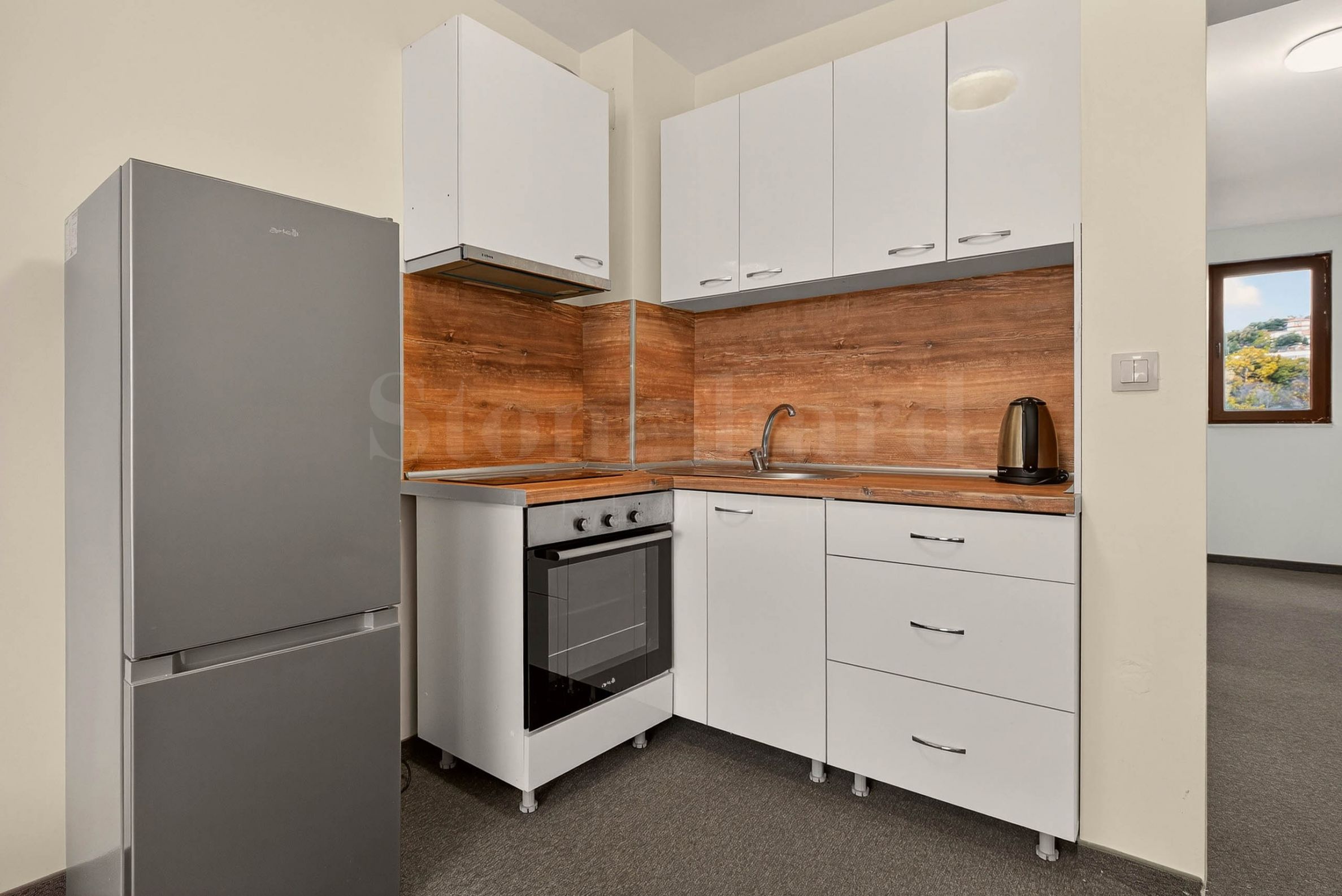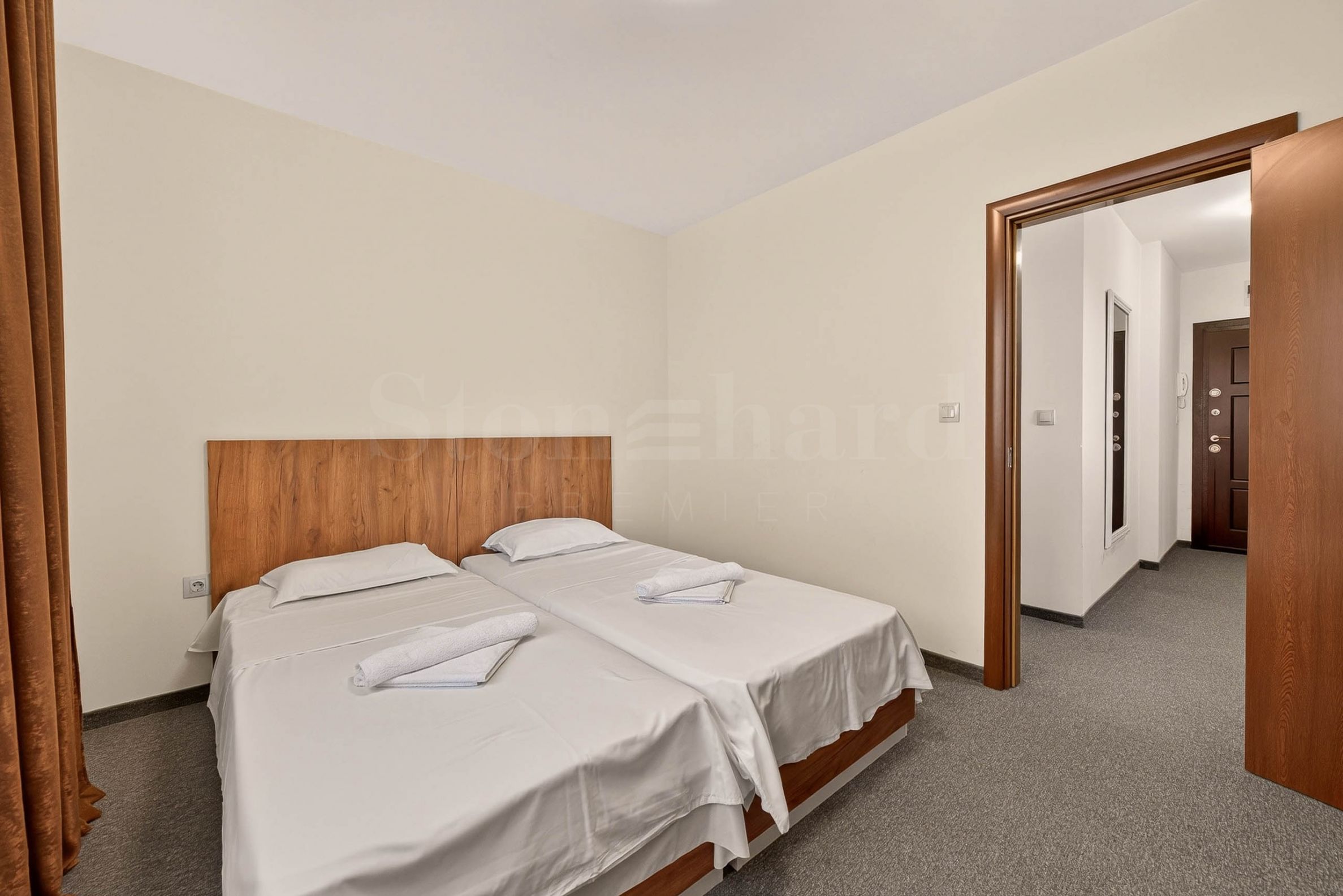 Mieszkanie jest sprzedawane w stanie widocznym na zdjęciach, w pełni umeblowane i wyposażone we wszystko, czego potrzeba do życia, takie jak meble i sprzęt AGD. Kompleks oferuje również apartamenty dwu- i trzypokojowe z możliwością zakupu w ramach bułgarskiego kodeksu budowlanego lub w stanie „pod klucz”.