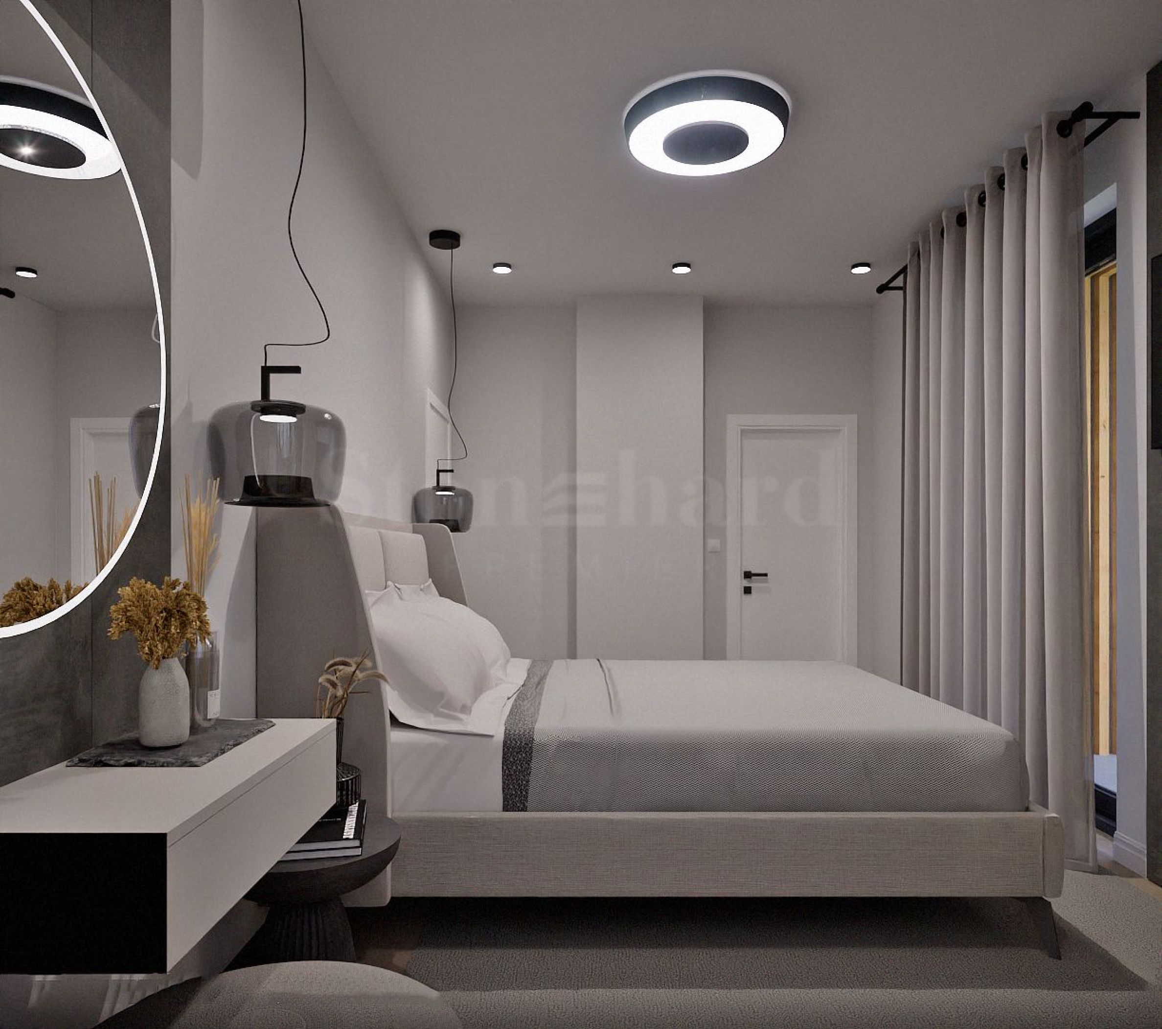 Dom sprzedawany jest w stanie deweloperskim "pod klucz", luksusowo umeblowany i wyposażony w nowoczesnym i eleganckim stylu, z wysokiej jakości materiałów. Wysokiej klasy izolacja, 5-komorowe okna Rehau o doskonałych właściwościach termoizolacyjnych i akustycznych, szklane balustrady na balkonach. Ogrzewanie i chłodzenie realizowane jest za pomocą ogrzewania podłogowego i klimatyzacji.