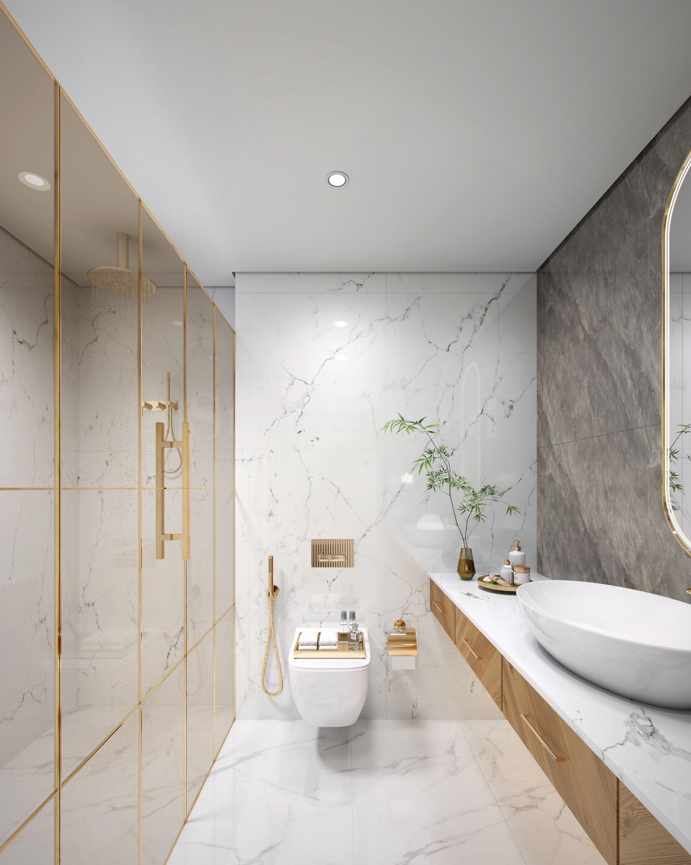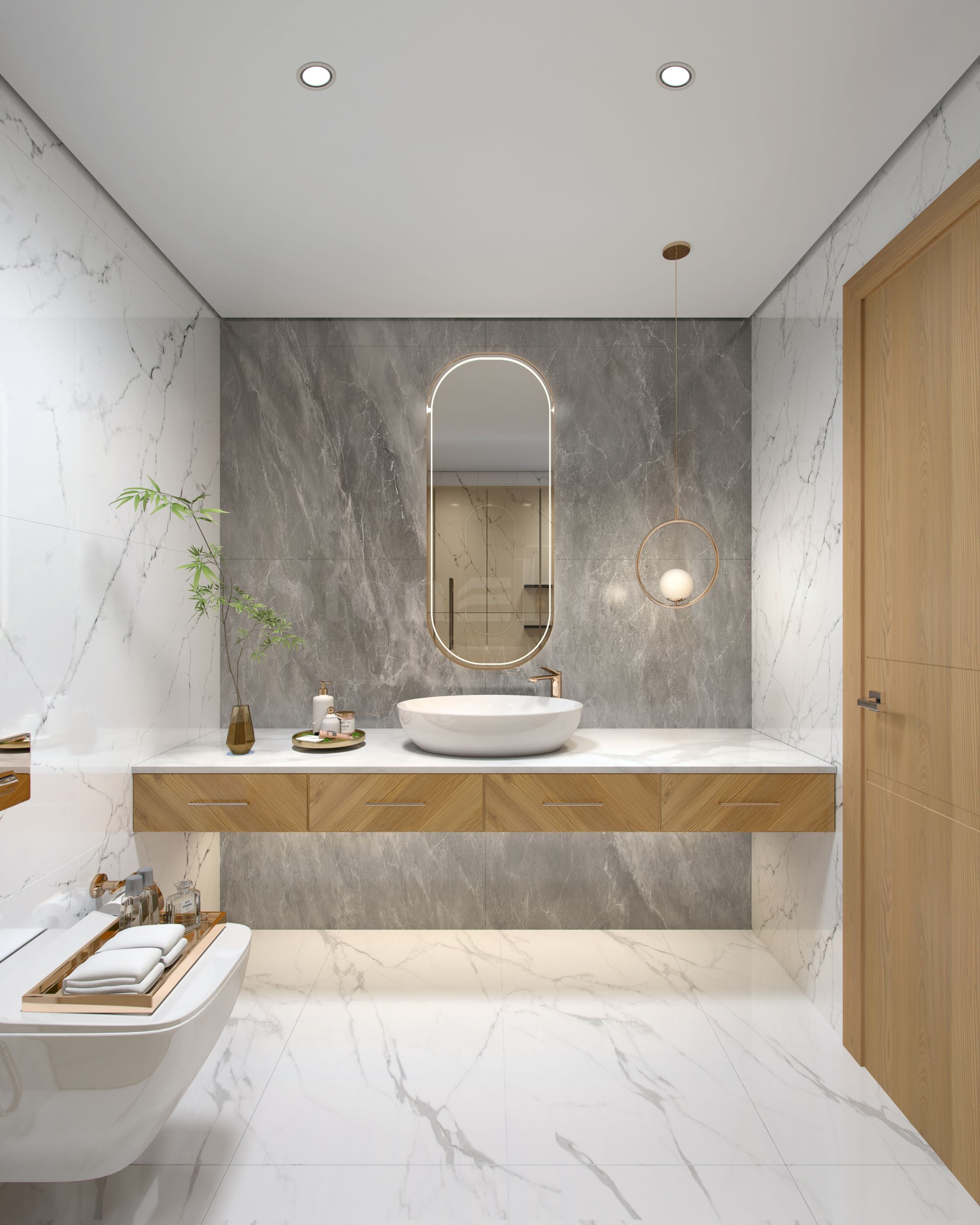 Sypialnie zaprojektowano jako prywatne strefy zapewniające prywatność i relaks, z wygodnymi łóżkami i przestronnymi przestrzeniami. Wysokie sufity i okna sięgające od podłogi do sufitu wypełniają pomieszczenia naturalnym światłem i podkreślają wrażenie przestronności. Każda sypialnia posiada wbudowane szafy i łazienkę, a sypialnie główne uzupełniają funkcjonalne garderoby z inteligentnymi rozwiązaniami zapewniającymi optymalną organizację przestrzeni.