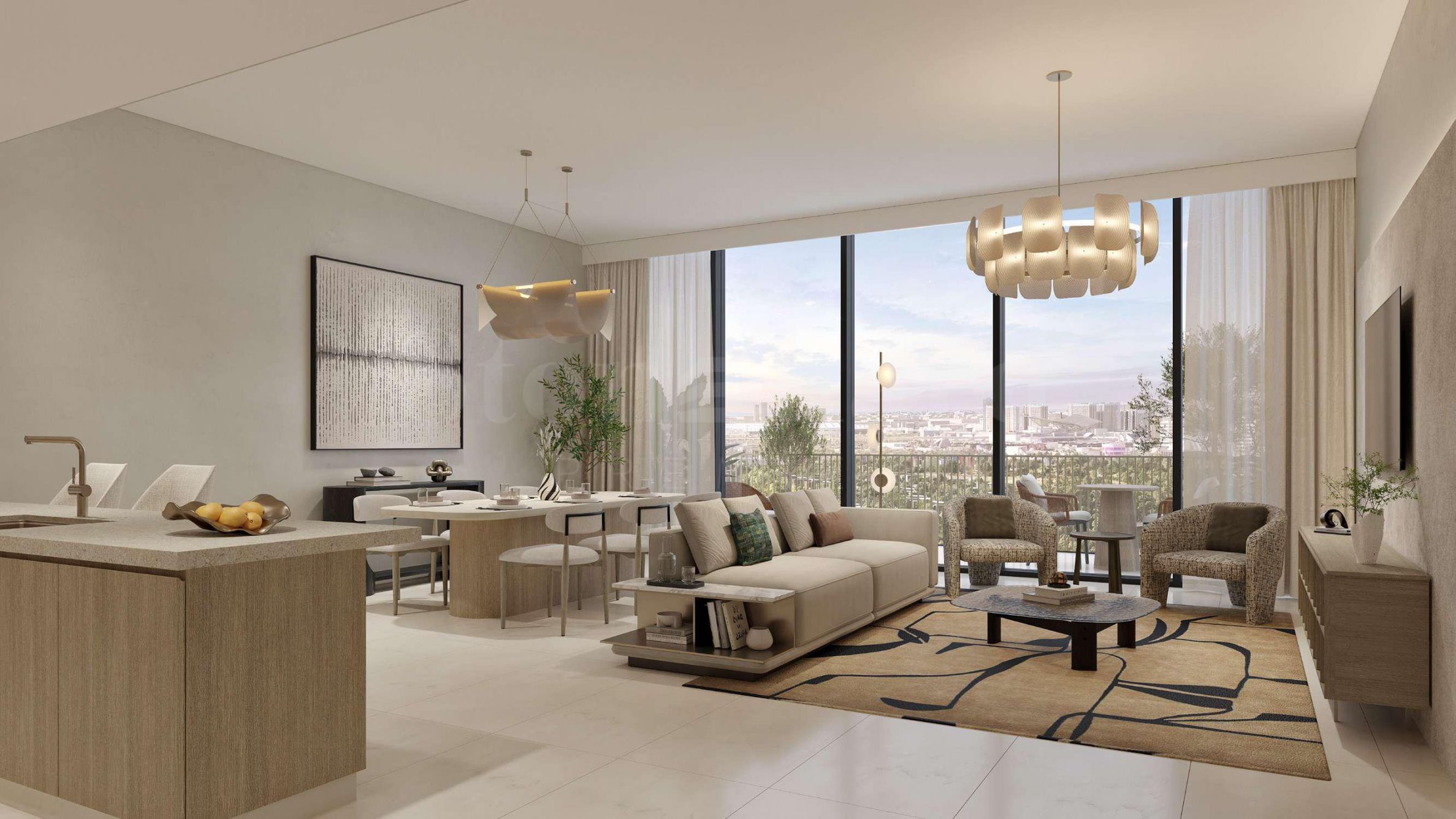 Expo Valley Views łączy w sobie osiedle dziewięciu eleganckich budynków mieszkalnych oraz ekskluzywną część willową, która jest już całkowicie wyprzedana – co świadczy o dużym zainteresowaniu inwestycją. Ponad 60% powierzchni kompleksu zajmują tereny zielone, co czyni go prawdziwą naturalną oazą.