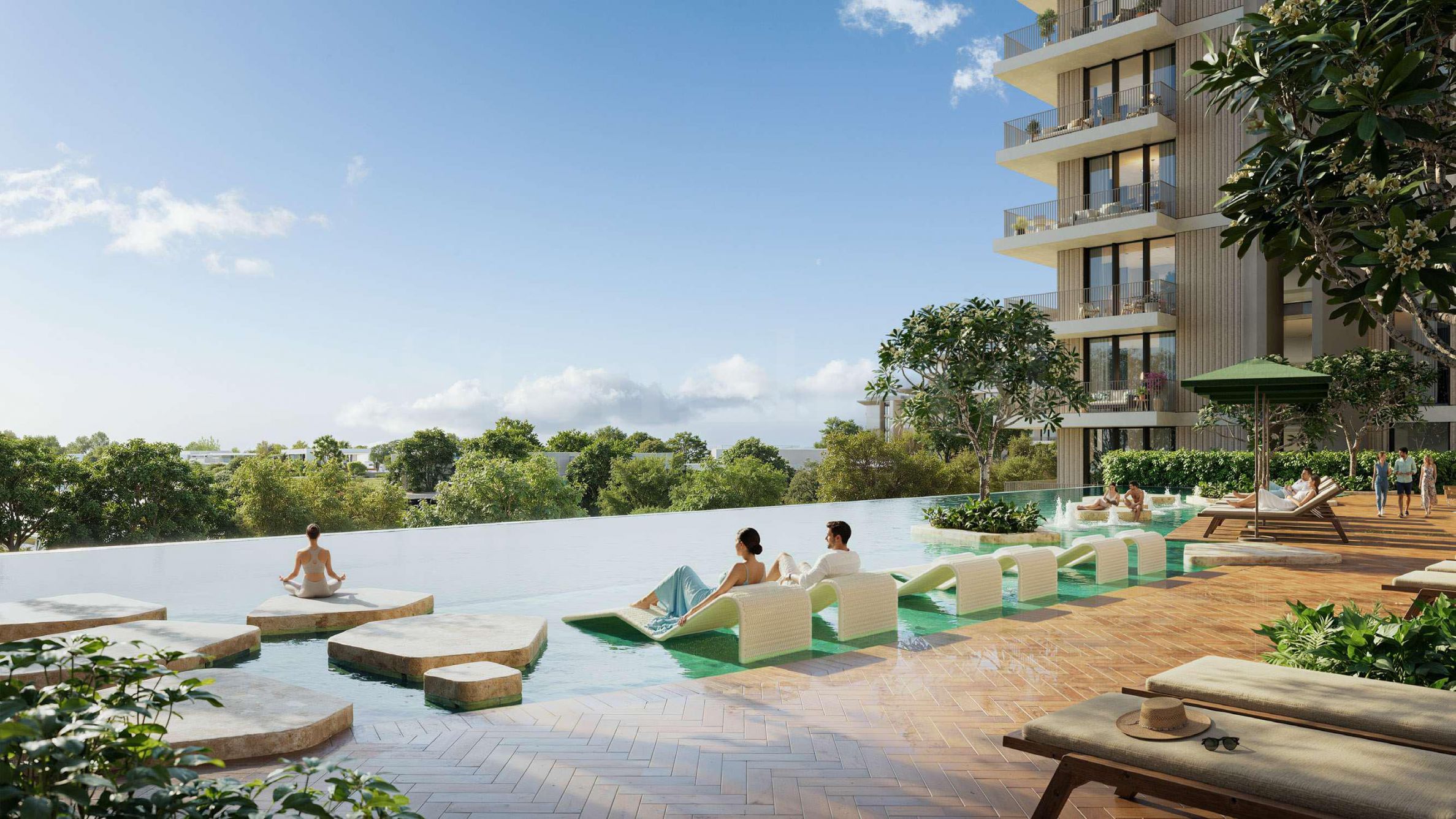 Udogodnienia w obiekcie dopełniają poczucie pełnego stylu życia: restauracja z wyselekcjonowaną koncepcją kulinarną, nowoczesna siłownia, eleganckie przestrzenie wypoczynkowe i kilka basenów, w tym imponujący basen bez krawędzi z widokiem na ogrody. Dla aktywnych mieszkańców przygotowano boiska sportowe i siłownię na świeżym powietrzu, a dla dzieci – salę gier, nowoczesny plac zabaw i oddzielny brodzik.