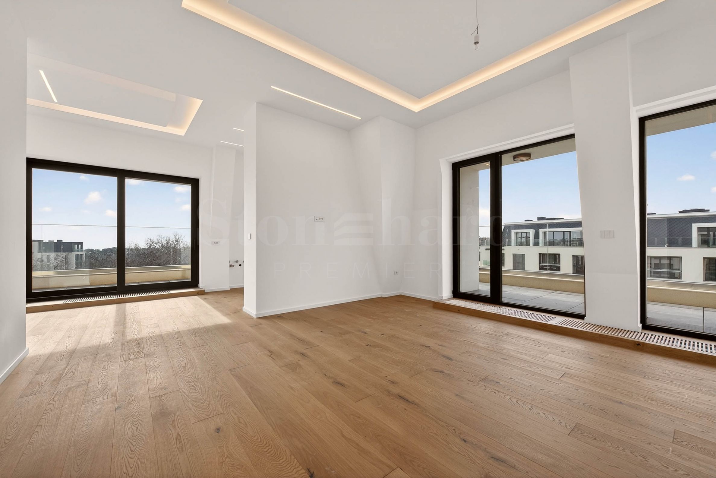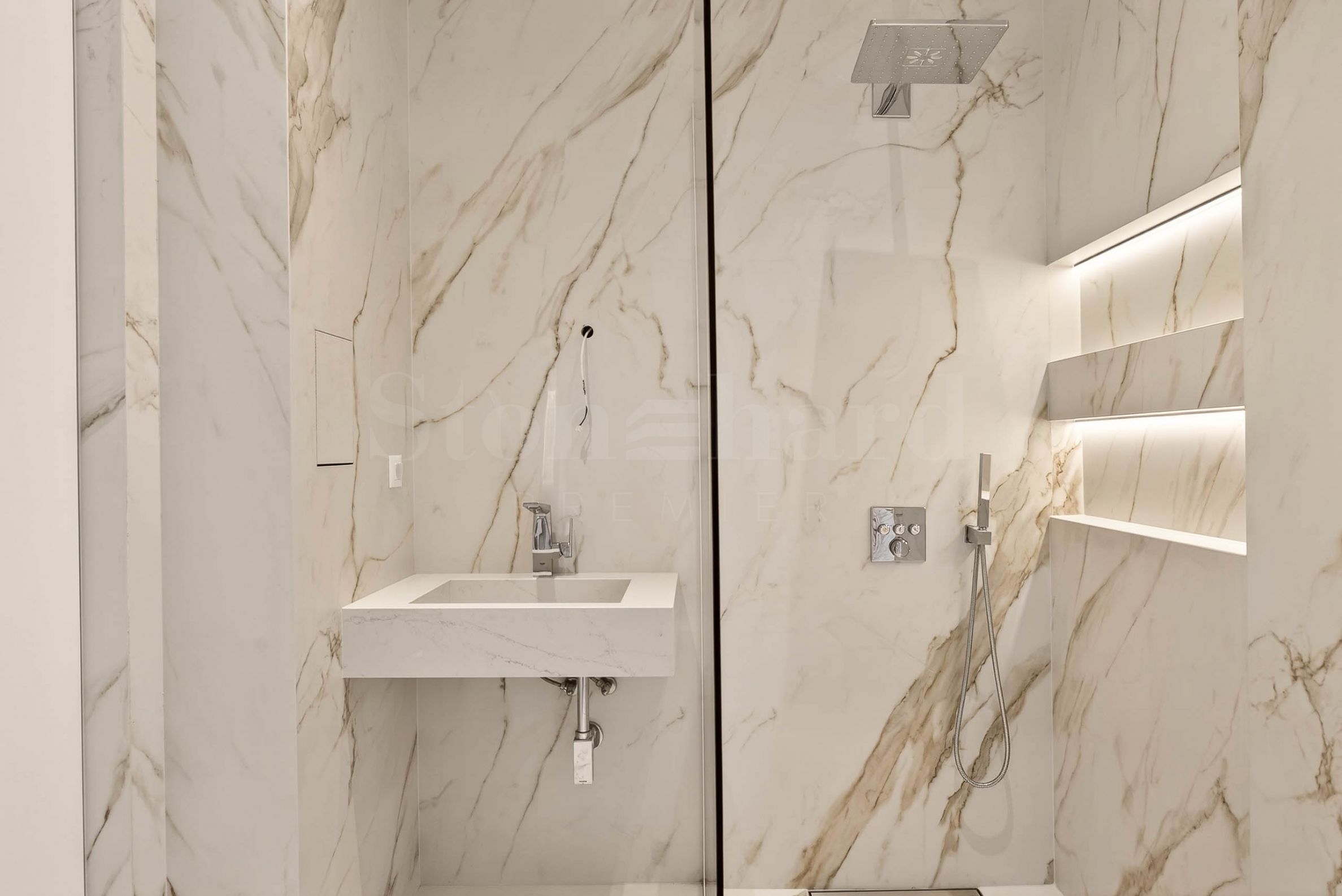 Nieruchomość posiada panoramiczne okna typu „french”, zapewniające maksymalne doświetlenie wszystkich pomieszczeń mieszkalnych. Okna wykonane są z wysokiej jakości aluminium firmy Reynaers, z potrójnymi szybami zapewniającymi doskonałą izolację akustyczną i cieplną. Łazienki są w pełni wykończone i wyposażone w wysokiej jakości armaturę Grohe, a granitowe płytki mają wysokość 3 metrów. Do ogrzewania i chłodzenia apartamentu zainstalowano pompę ciepła, która ogrzewa i chłodzi za pomocą wodnego systemu podłogowego, a chłodzi za pomocą nagrzewnic podokiennych. W mieszkaniu zainstalowano system odzysku i oczyszczania powietrza.
