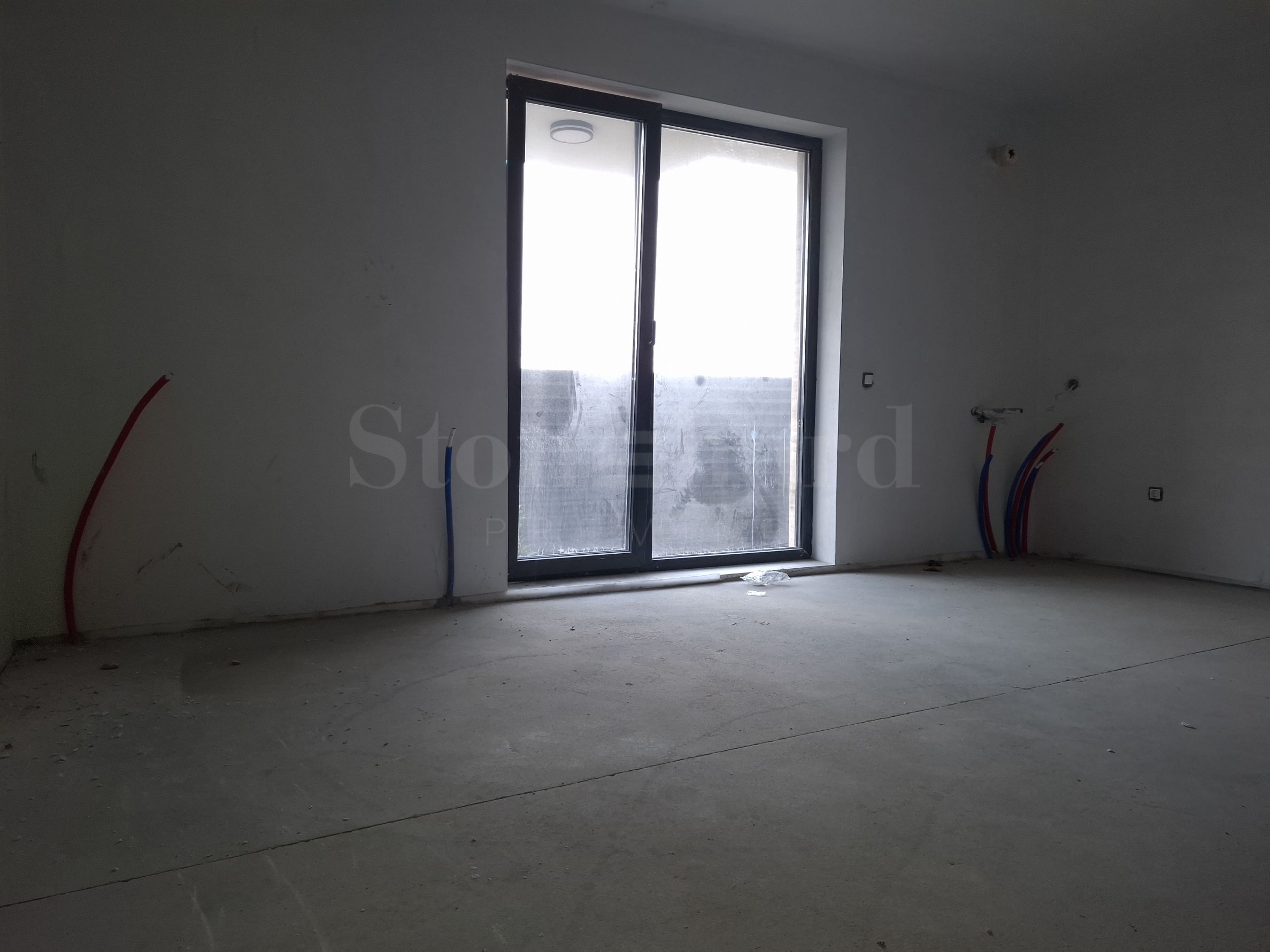 Nieruchomość znajduje się na 1. piętrze i ma powierzchnię całkowitą 73,20 m². Jest oferowana w stanie deweloperskim zgodnie z bułgarskimi standardami, z wysokiej jakości stolarką Schuco, oknami z potrójnymi szybami. Ogrzewanie elektryczne.