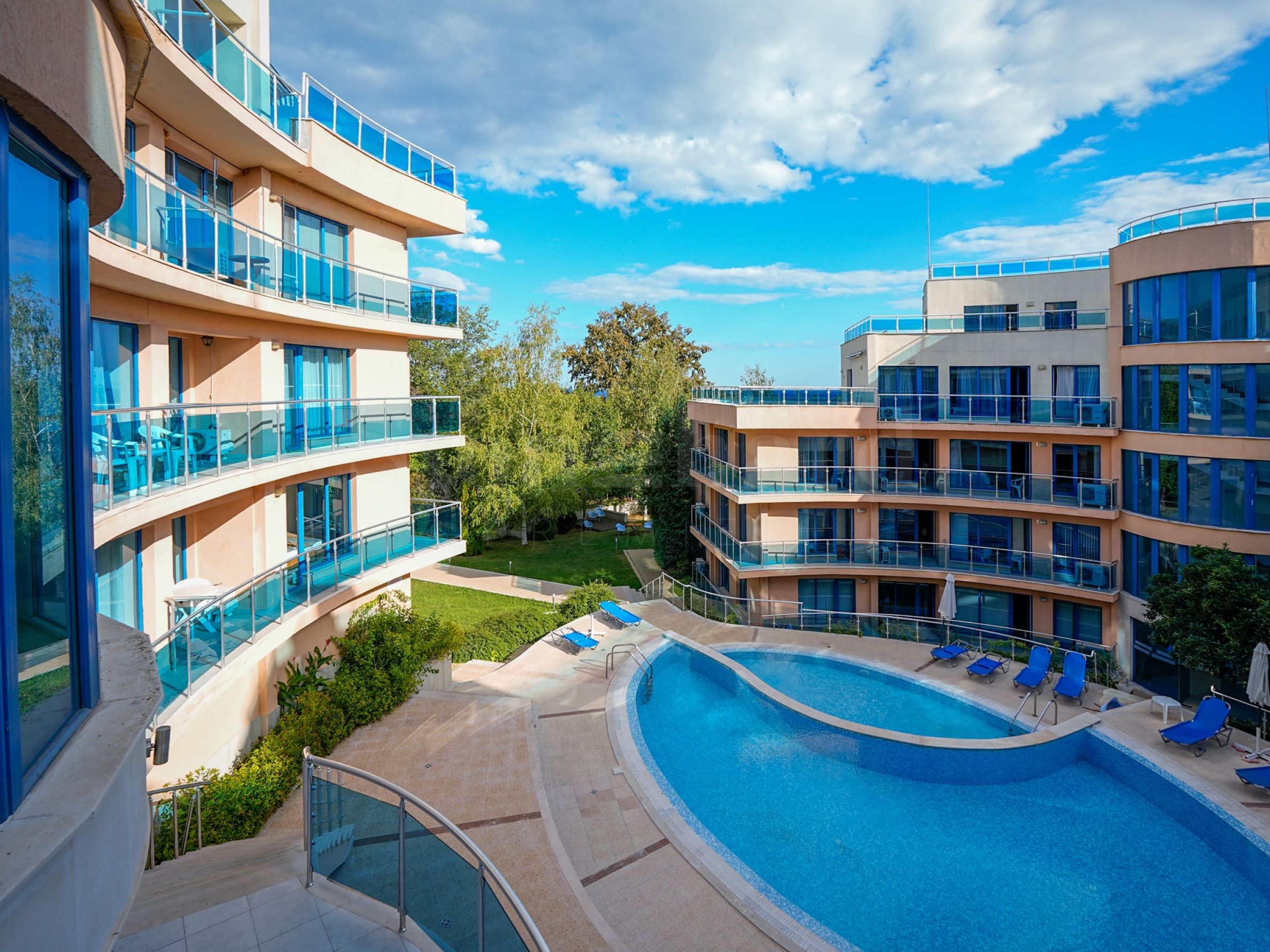 Składa się z 3 oddzielnych budynków, każdy z osobnym wejściem i windą. Obiekt jest czynny przez cały rok i oferuje spokojne otoczenie zarówno na wakacje, jak i pobyty całoroczne.