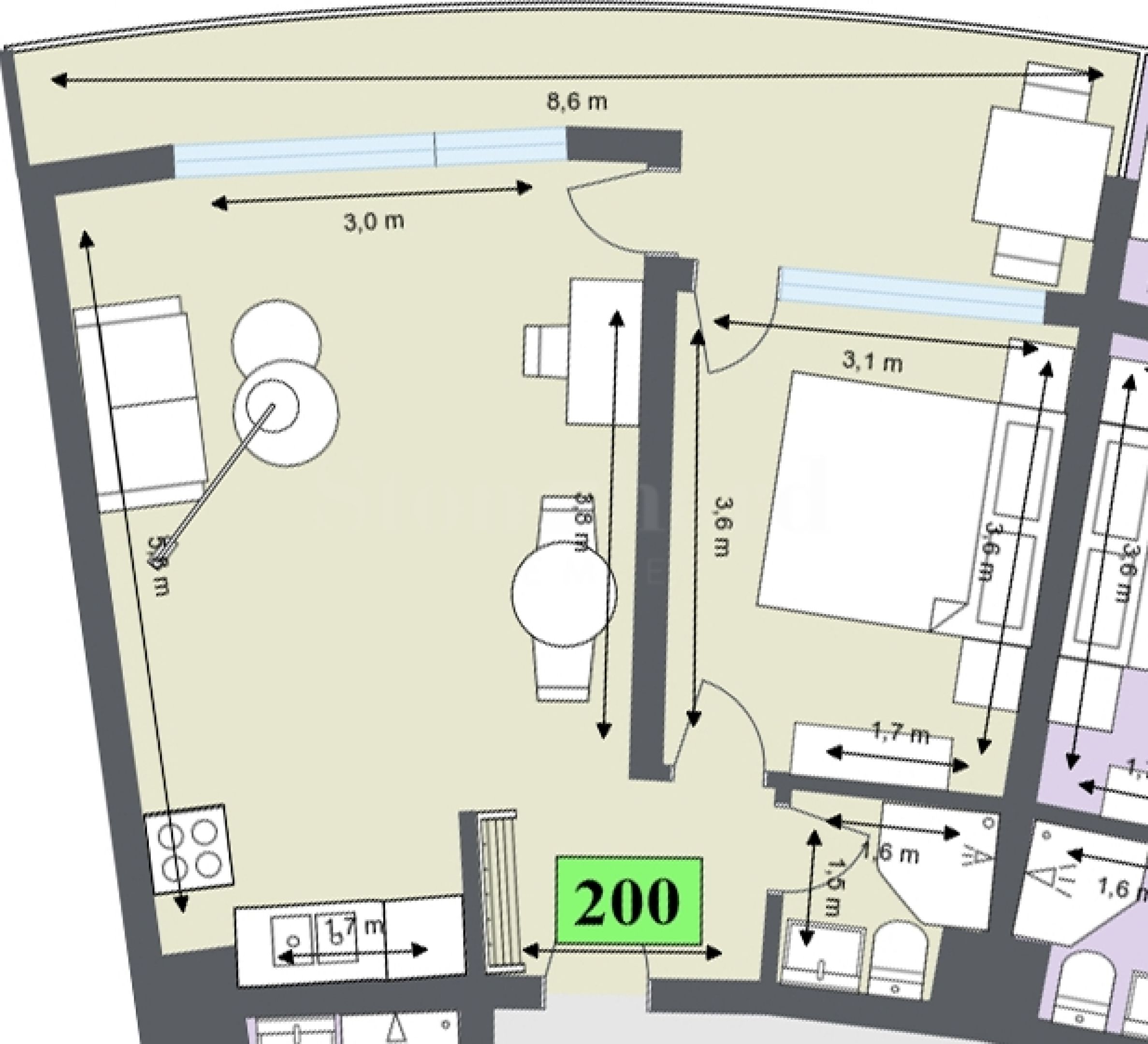 • mieszkania jednopokojowe;