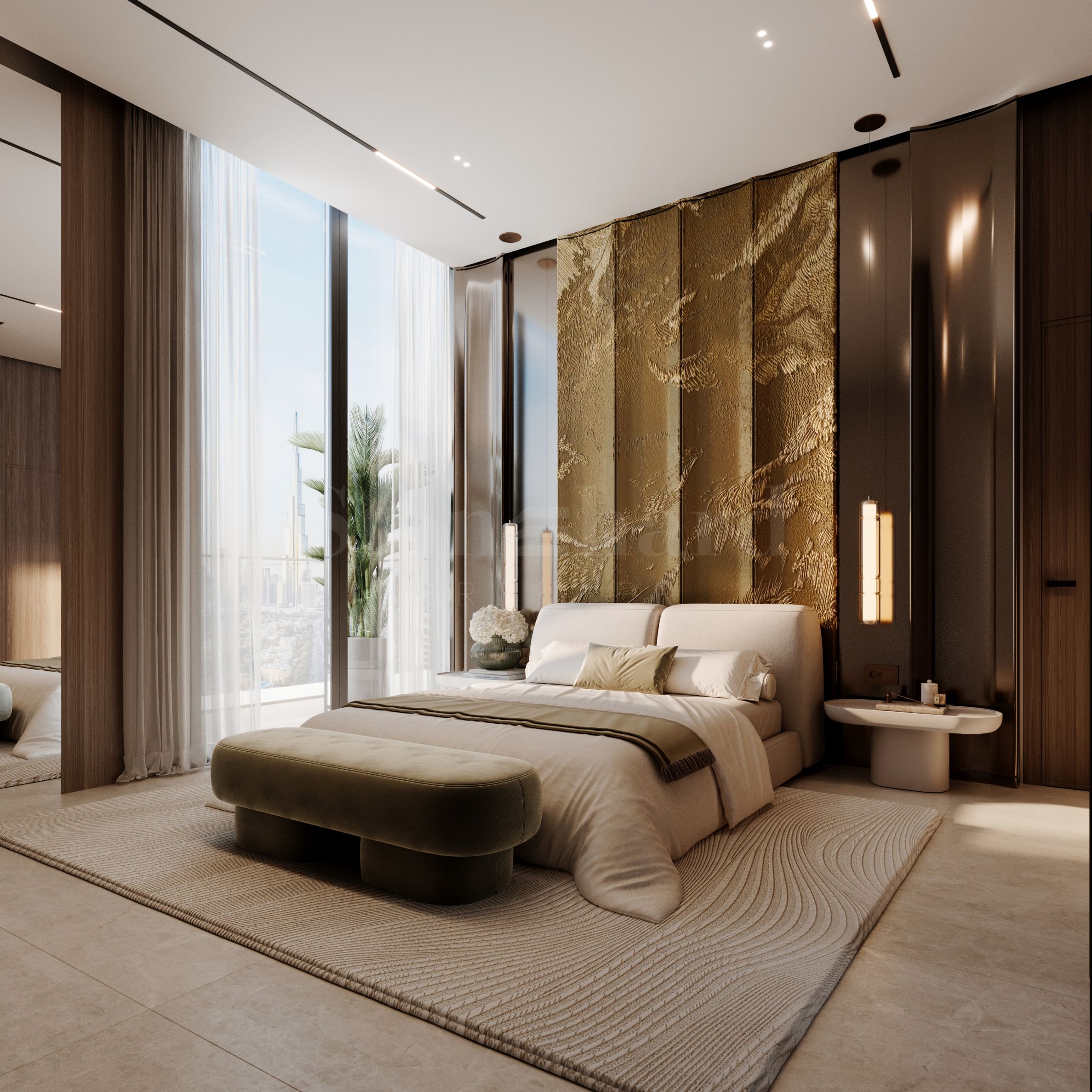 Binghatti Luxuria ma 30 pięter i trzy kondygnacje podziemne, zapewniając wygodne miejsca parkingowe dla właścicieli i ich gości. Architektoniczny charakter budynku podkreślają czyste linie i nowoczesna estetyka, a oświetlenie elewacji podkreśla jego imponującą prezencję nocą. Panoramiczne okna od podłogi do sufitu i wysokie sufity tworzą wrażenie przestronności i światła w każdym apartamencie. Apartamenty zostały zaprojektowane z dbałością o szczegóły, aby zapewnić komfort i prywatność, a przestronne tarasy słoneczne oferują możliwość relaksu z widokiem na otoczenie i bogato zagospodarowane tereny zielone.