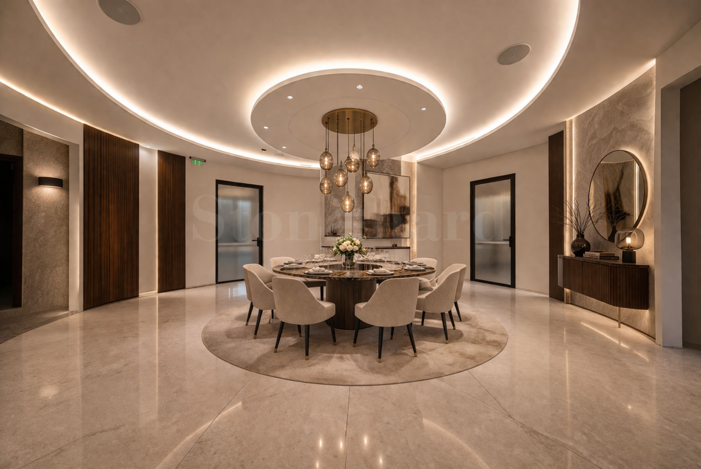 • Sufity dekoracyjne z panelami dźwiękochłonnymi i oświetleniem architektonicznym;