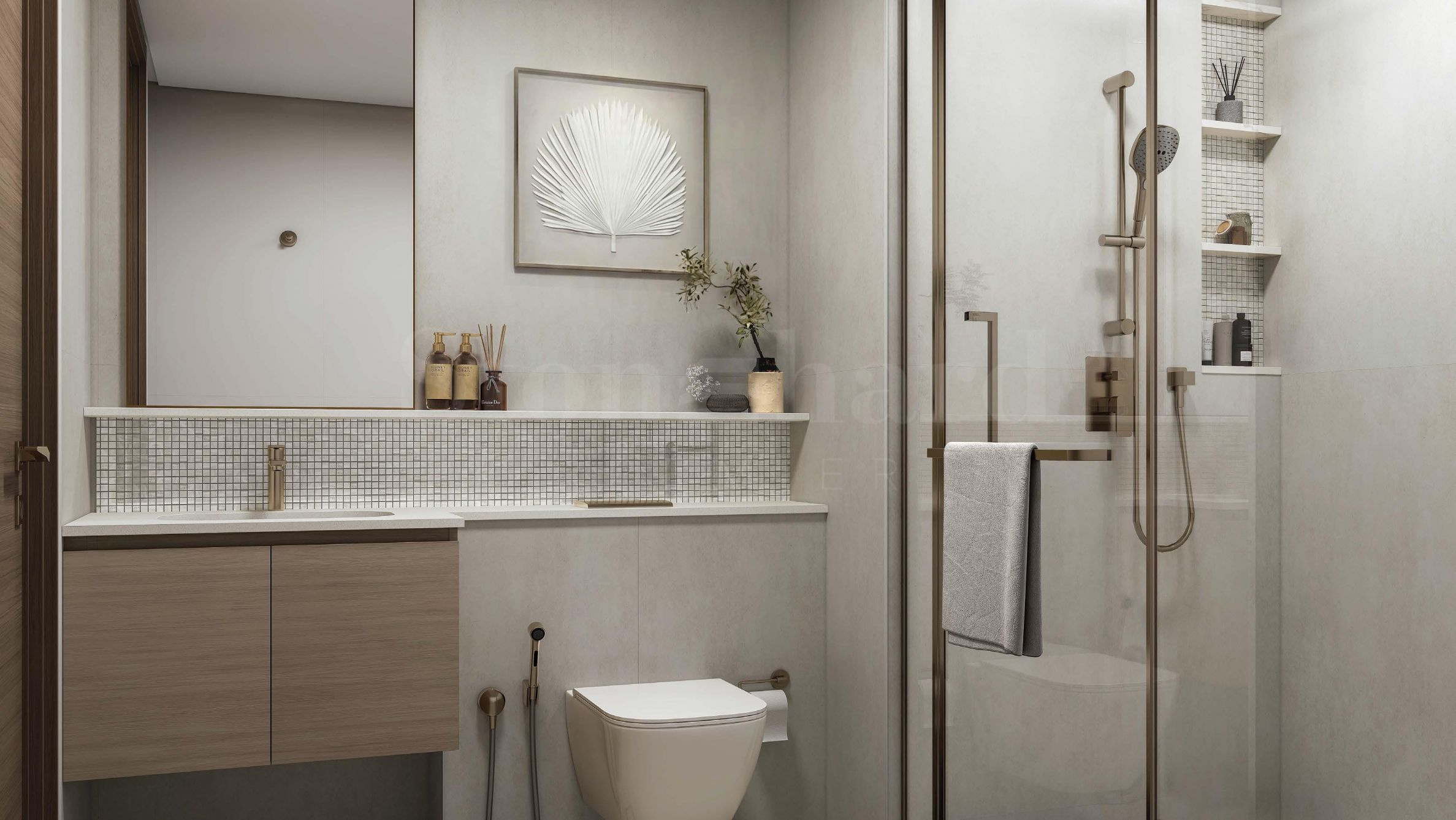River Cove Residences oferuje apartamenty dwu- i trzypokojowe, w których widok na promenadę jest nieodłącznym elementem codziennego życia. Pokoje mają regularne kształty i okna sięgające od podłogi do sufitu, które zapewniają dopływ dużej ilości światła dziennego przez cały dzień. Wnętrza zostały starannie zaprojektowane z myślą o komforcie i prywatności wszystkich mieszkańców. Salony połączone są z kuchnią i jadalnią, zapewniając przestrzeń do spędzania wolnego czasu, a każda sypialnia ma własną łazienkę i garderobę.