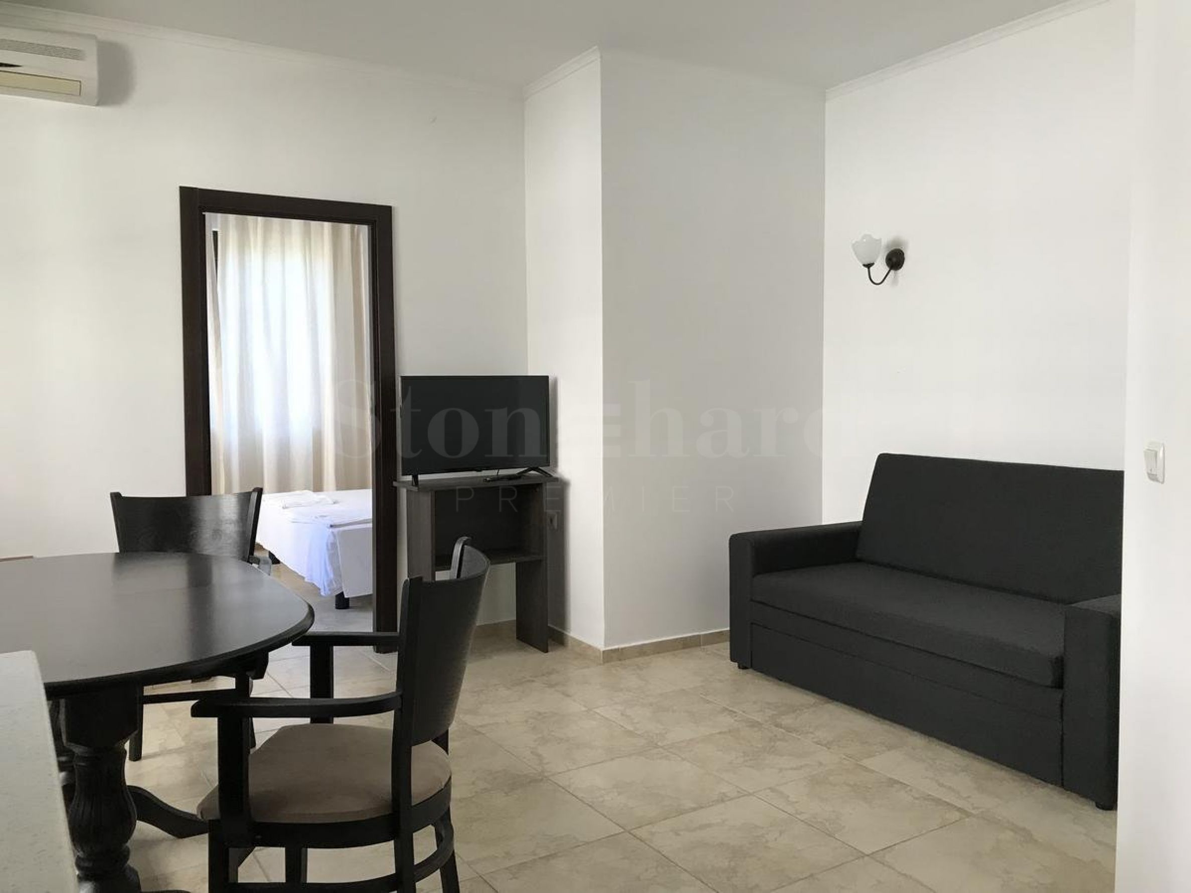 W apartamencie znajduje się wyposażona kuchnia, salon z sofą i telewizorem z płaskim ekranem oraz łazienka. Do dyspozycji Gości jest lodówka, płyta kuchenna i kuchenka mikrofalowa. Cena obejmuje bezpłatne korzystanie z basenu, TV i Internetu oraz sprzątanie i zmianę pościeli i ręczników raz w tygodniu.