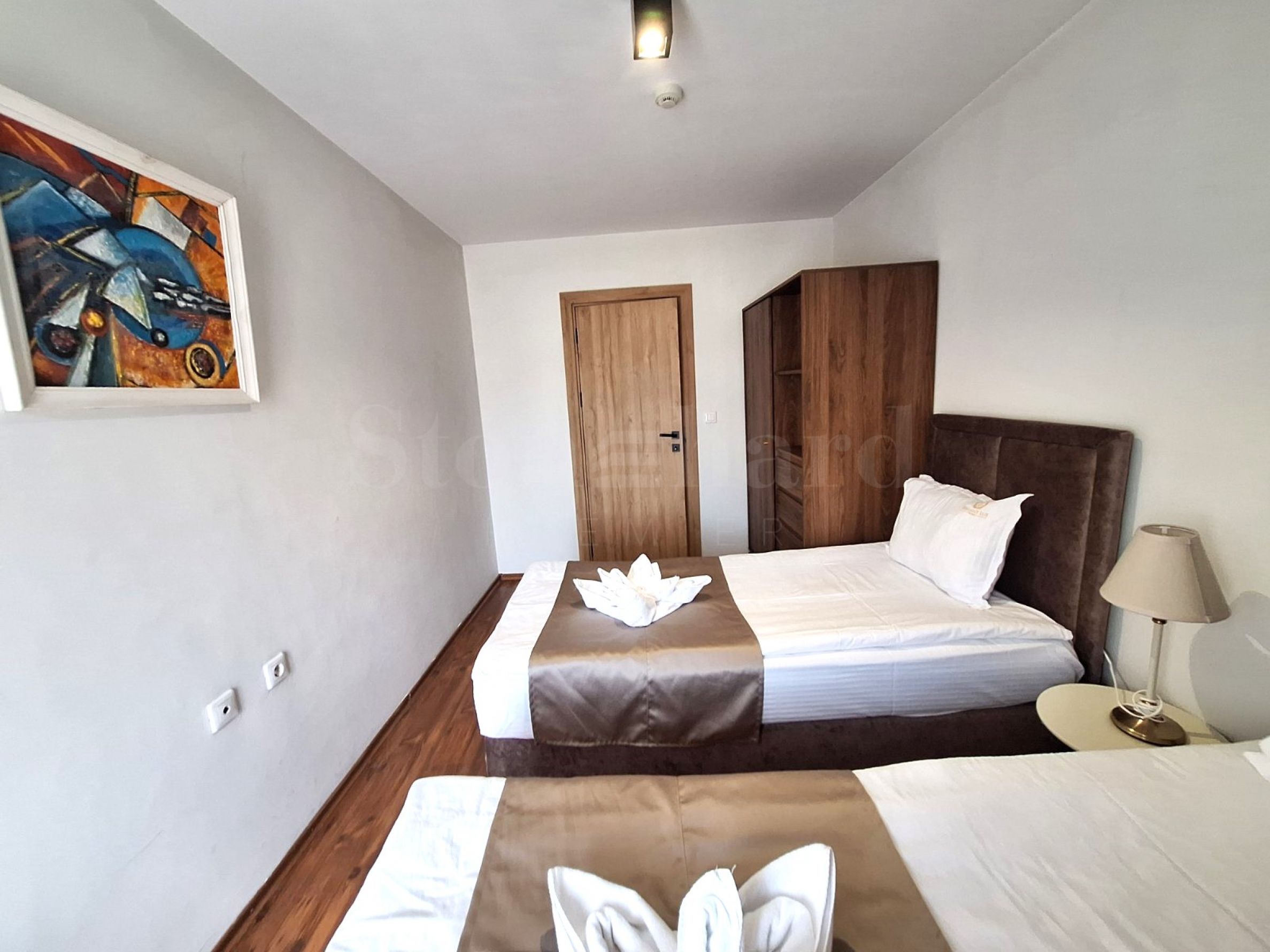 • Osobna sypialnia z dwoma pojedynczymi łóżkami i szafą;