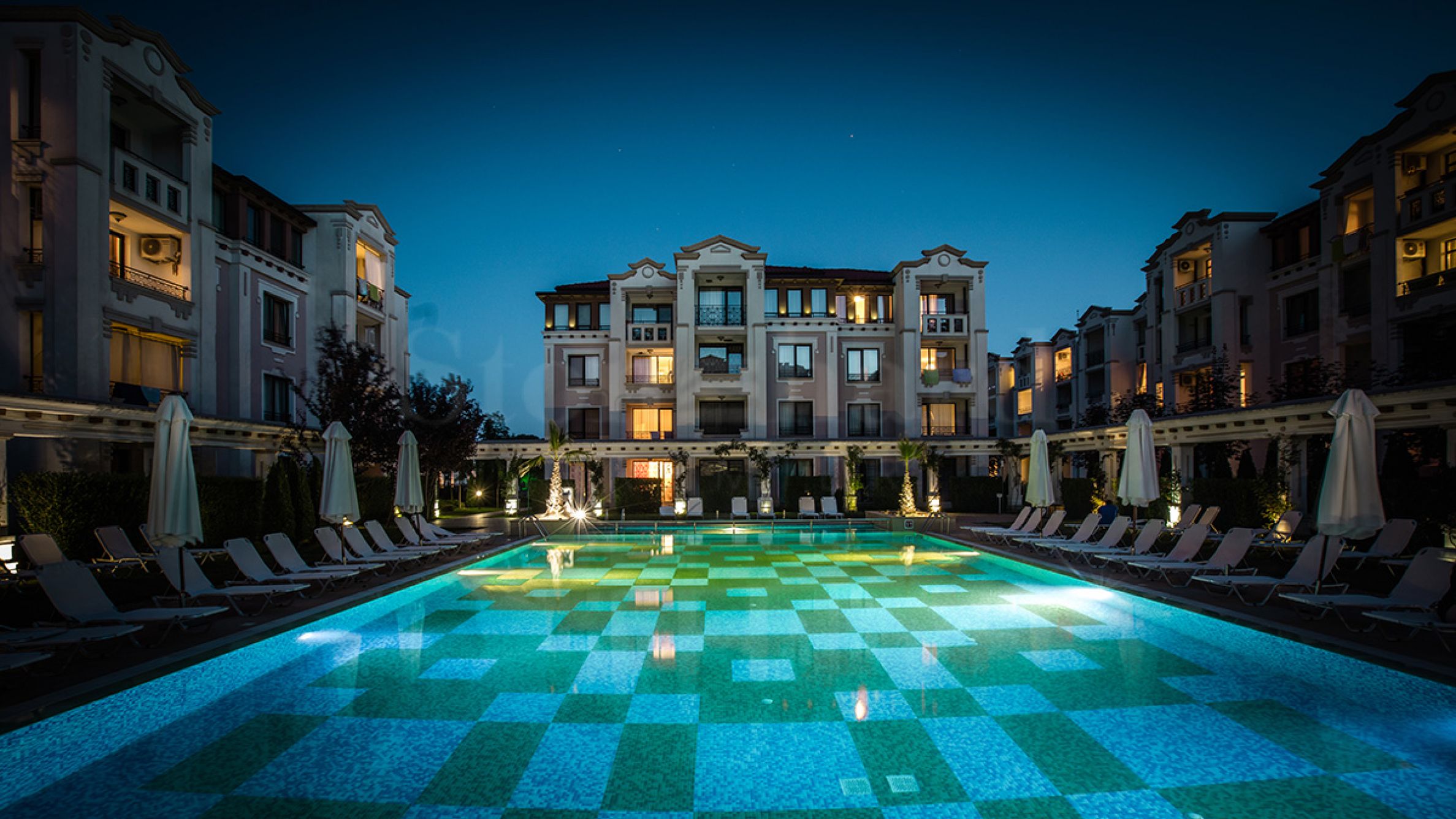 The popular complex has been awarded the prestigious award for luxury construction, architecture and design "LUXURY PROPERTY AWARDS 2016" for "Best Holiday Complex". The premium class complex offers its own, first-class infrastructure for living, family recreation and sports. Built in a Mediterranean style, the complex has numerous water spaces, harmoniously combined with the architecture and the rich landscape, captivating with beauty and giving a feeling of the unity of man and nature.