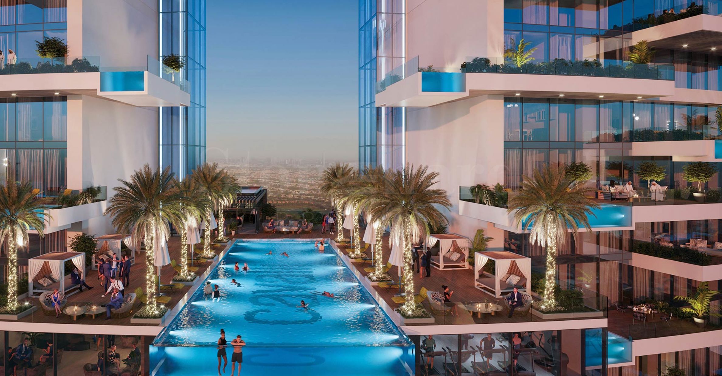 To support an active lifestyle, there will be a world-class gym, as well as tennis and paddle courts, and for relaxation, there will be a spa and Malibu Bay beach - a private beach and a pool with real waves, positioned precisely in front of the Cavalli Tower.