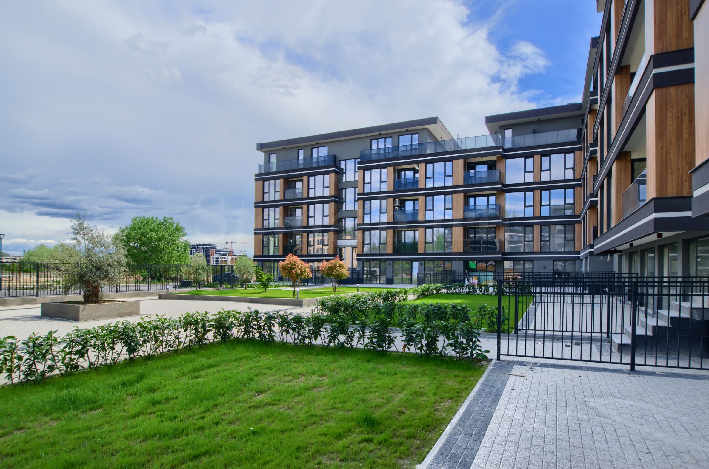 The three sections of the complex surround a beautiful garden with an area of 3,000 sq.m, which forms the interior space. In addition to greenery, there will be fountains, pedestrian walkways, relaxation areas and playgrounds.
