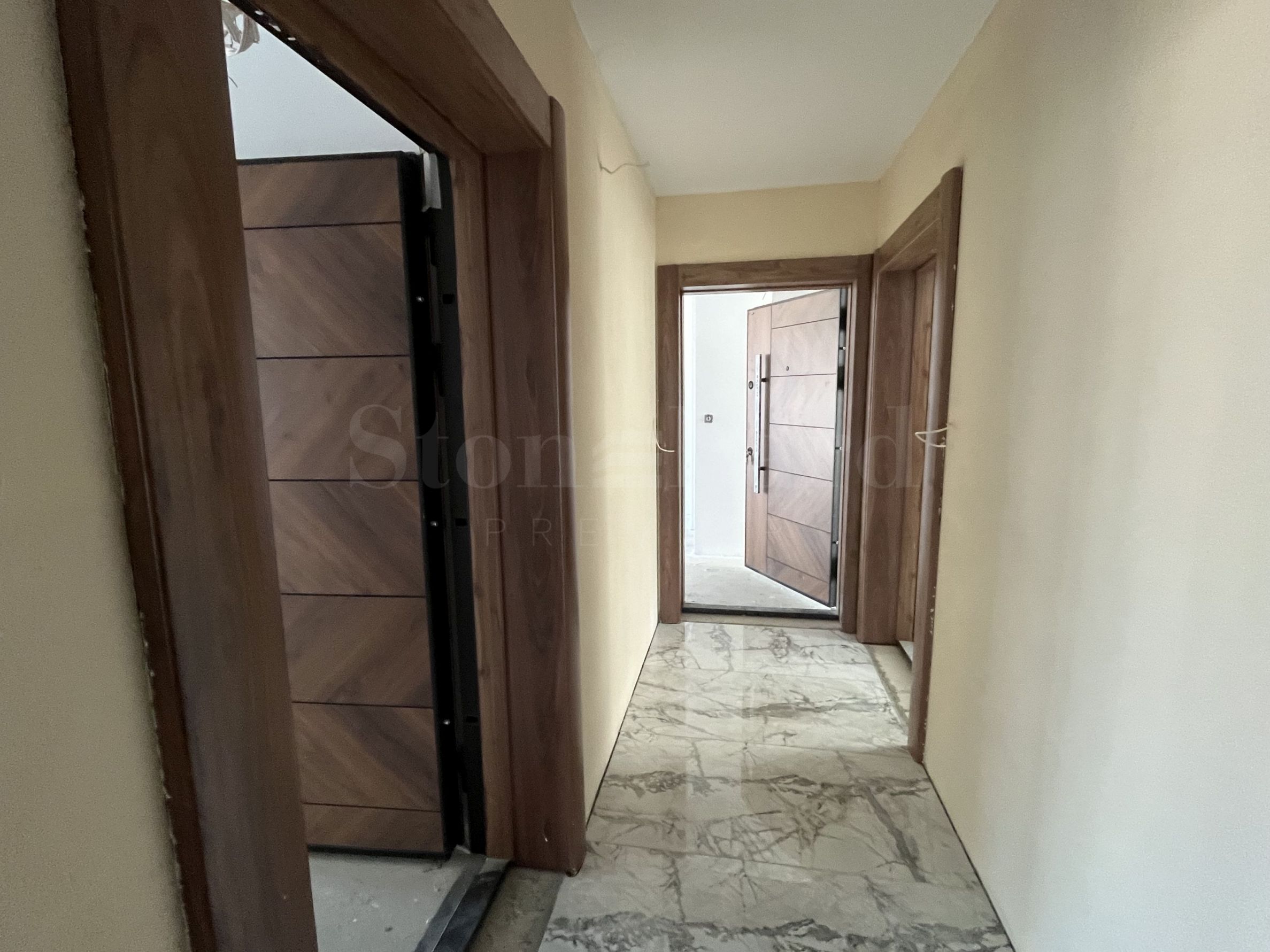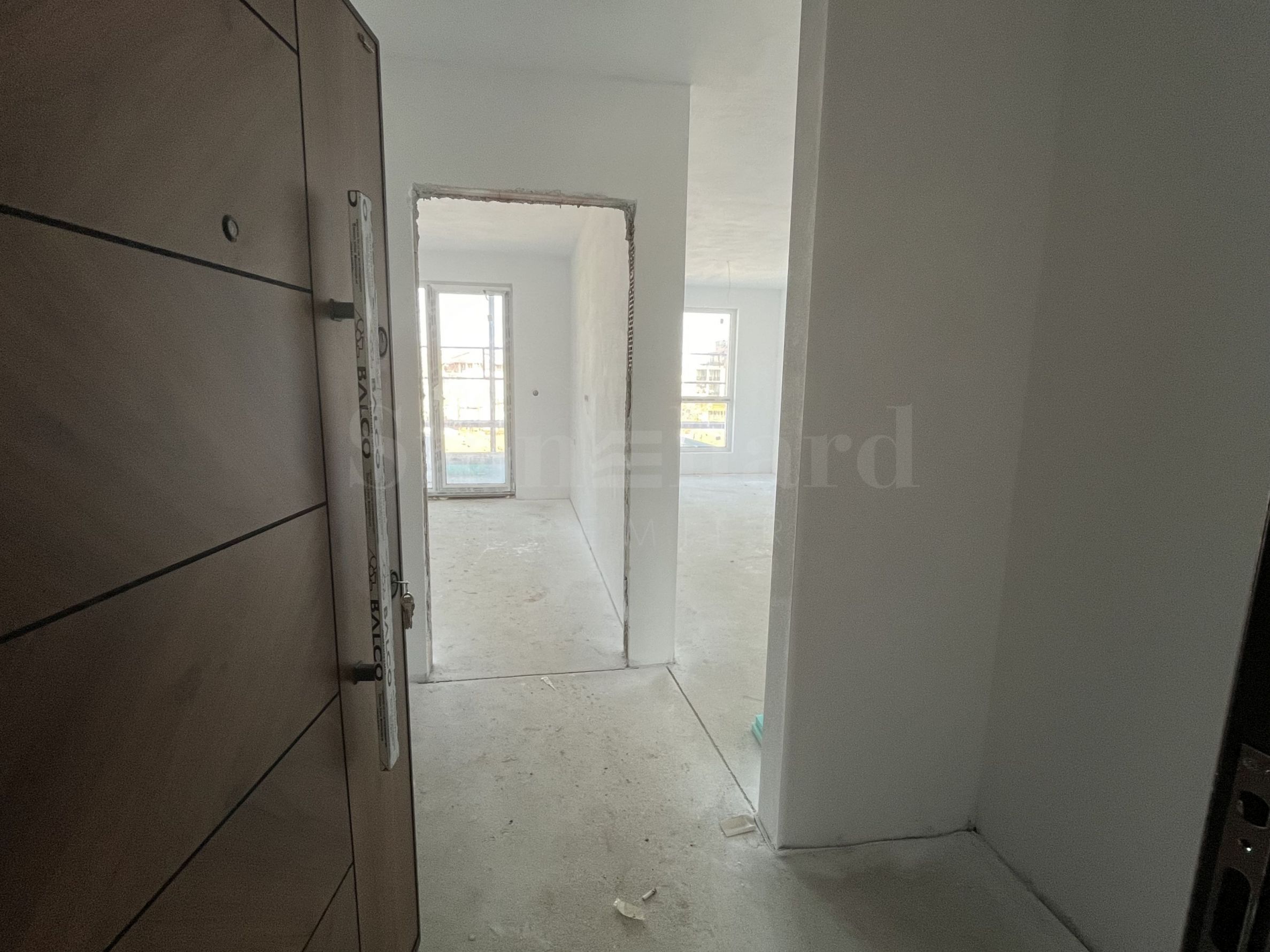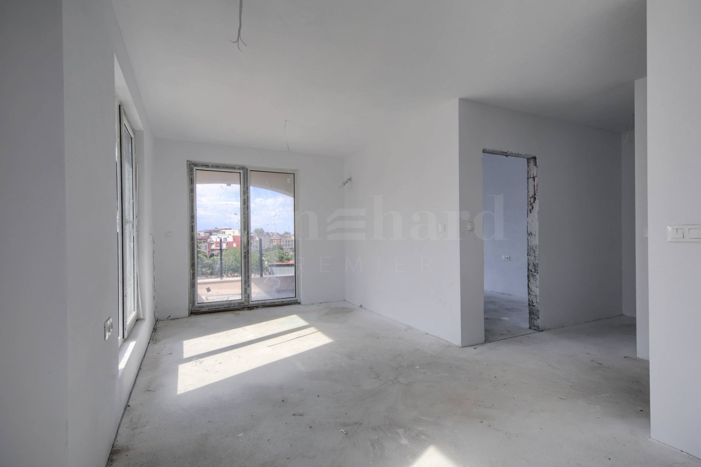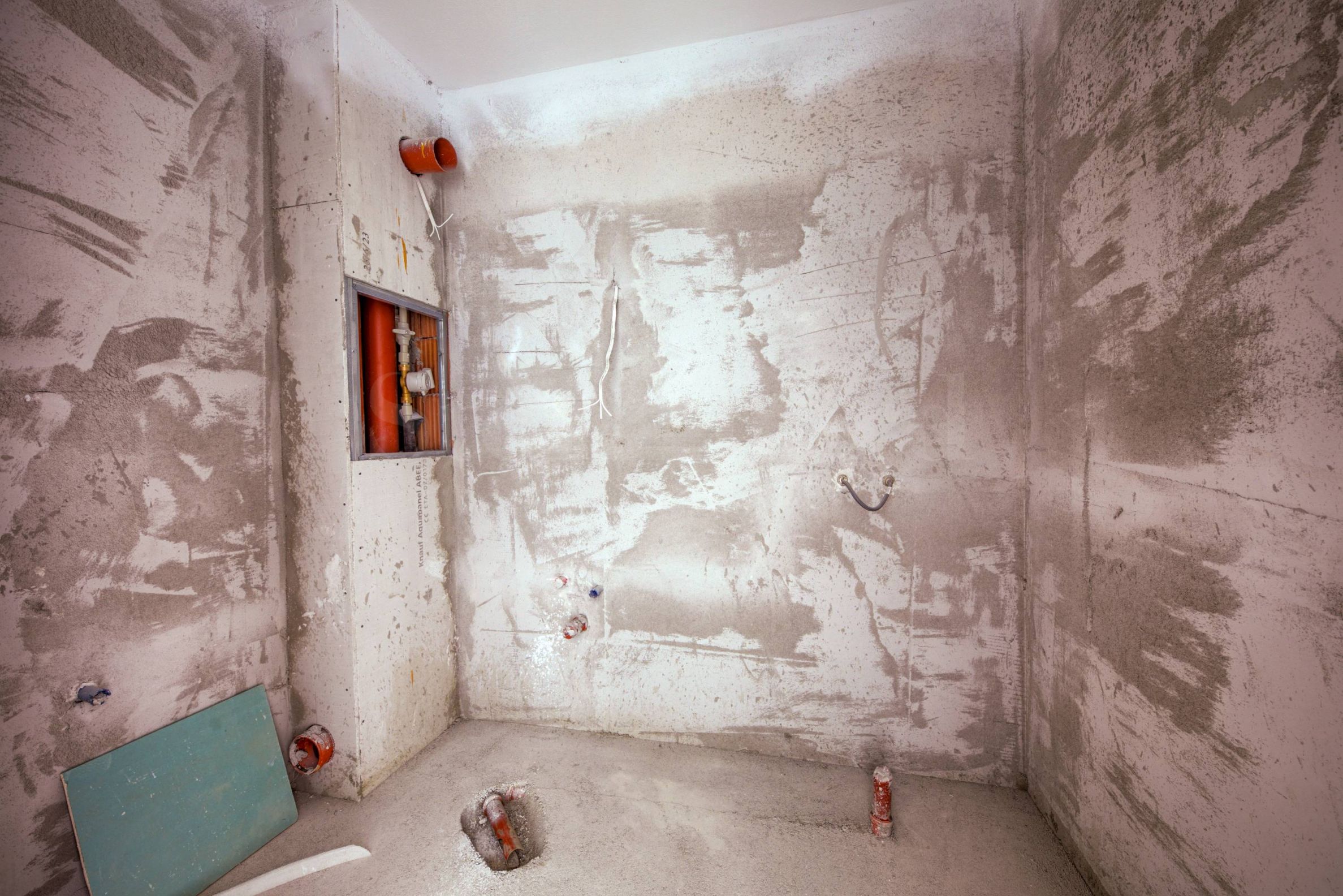 finished plastering and putty on the floor, with white painting, but without laying the flooring;