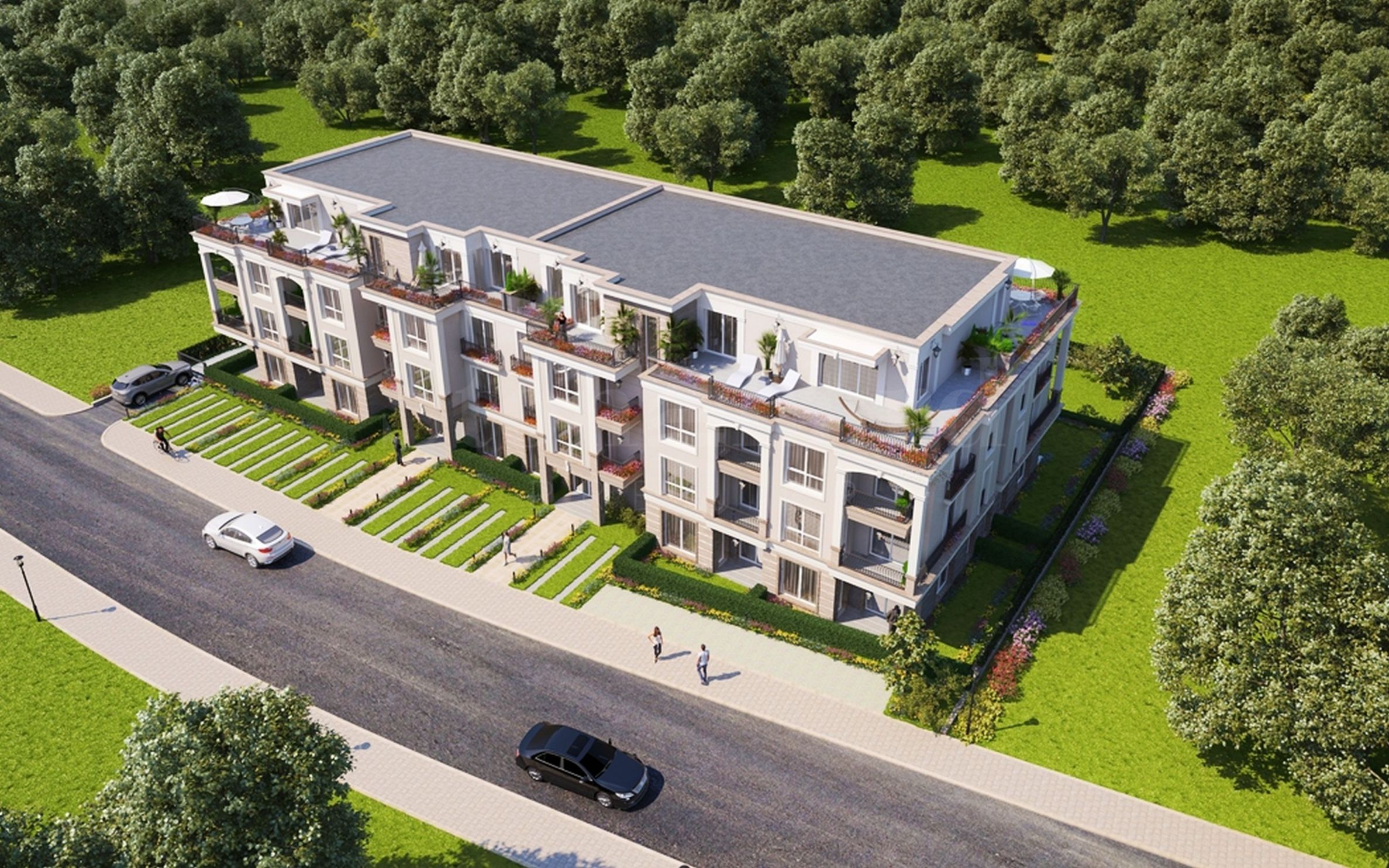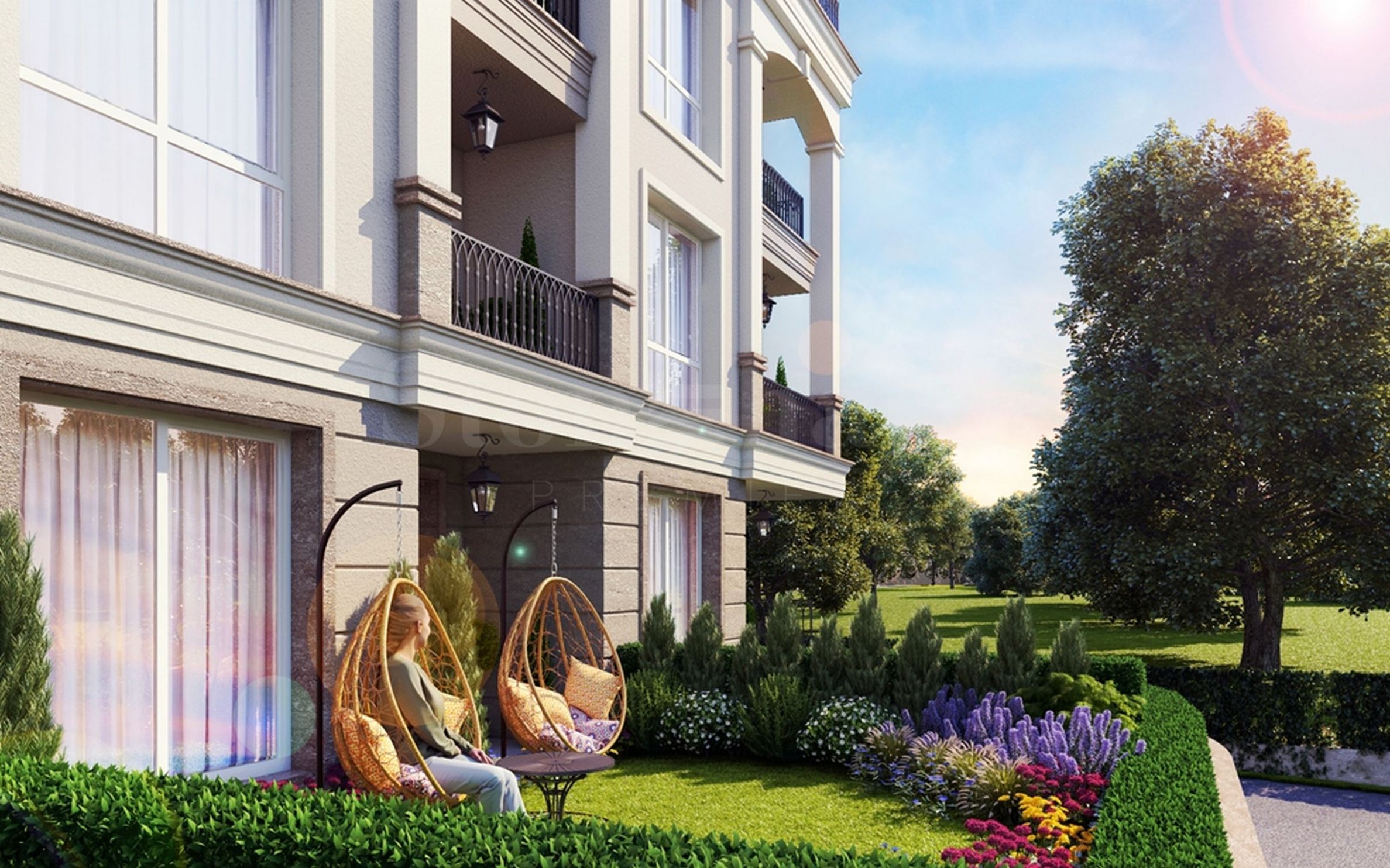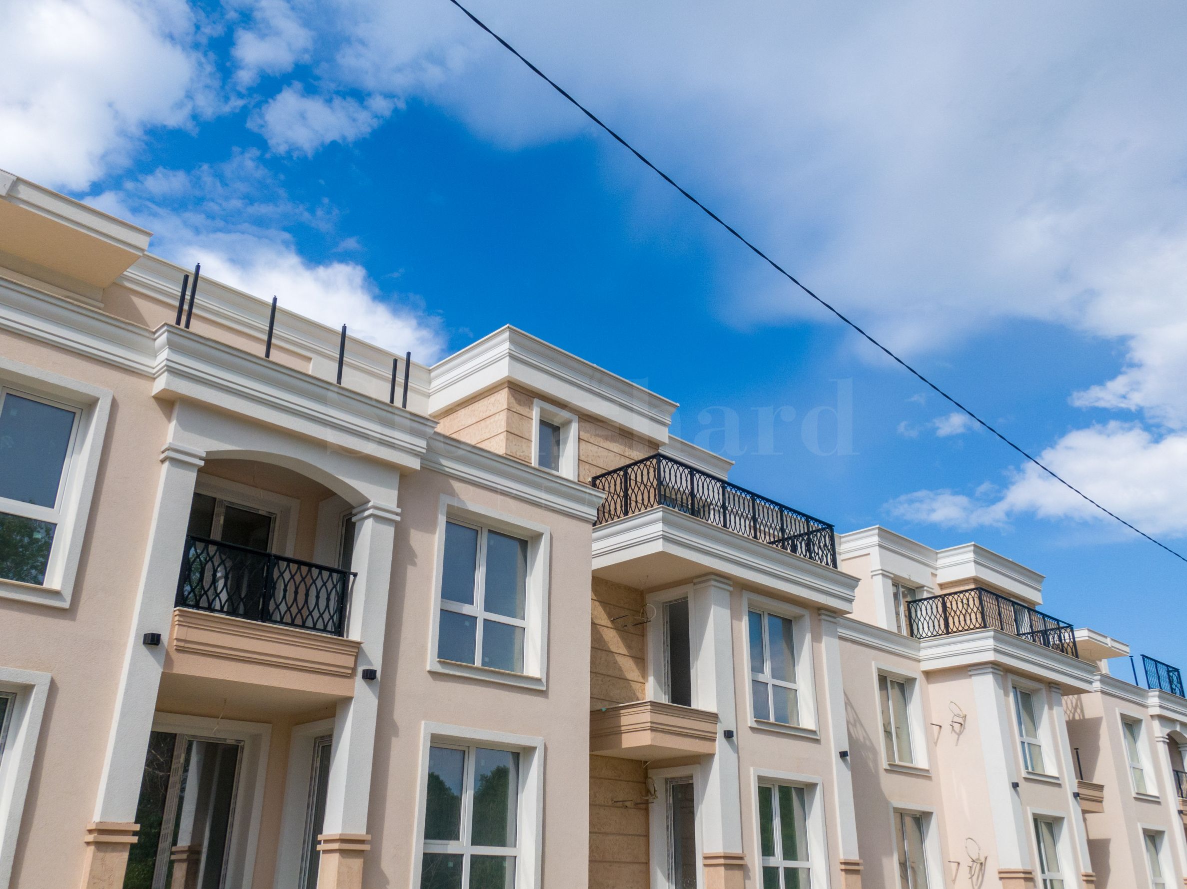 The building is divided into 4 levels, with a basement floor with garages and open parking spaces in the yard. It facilities a stylish architectural design in the neoclassical style, with beautiful arches and elements characteristic of the Mediterranean regions of the period of classical antiquity. The complex is divided into two entrances, with a modern elevator.