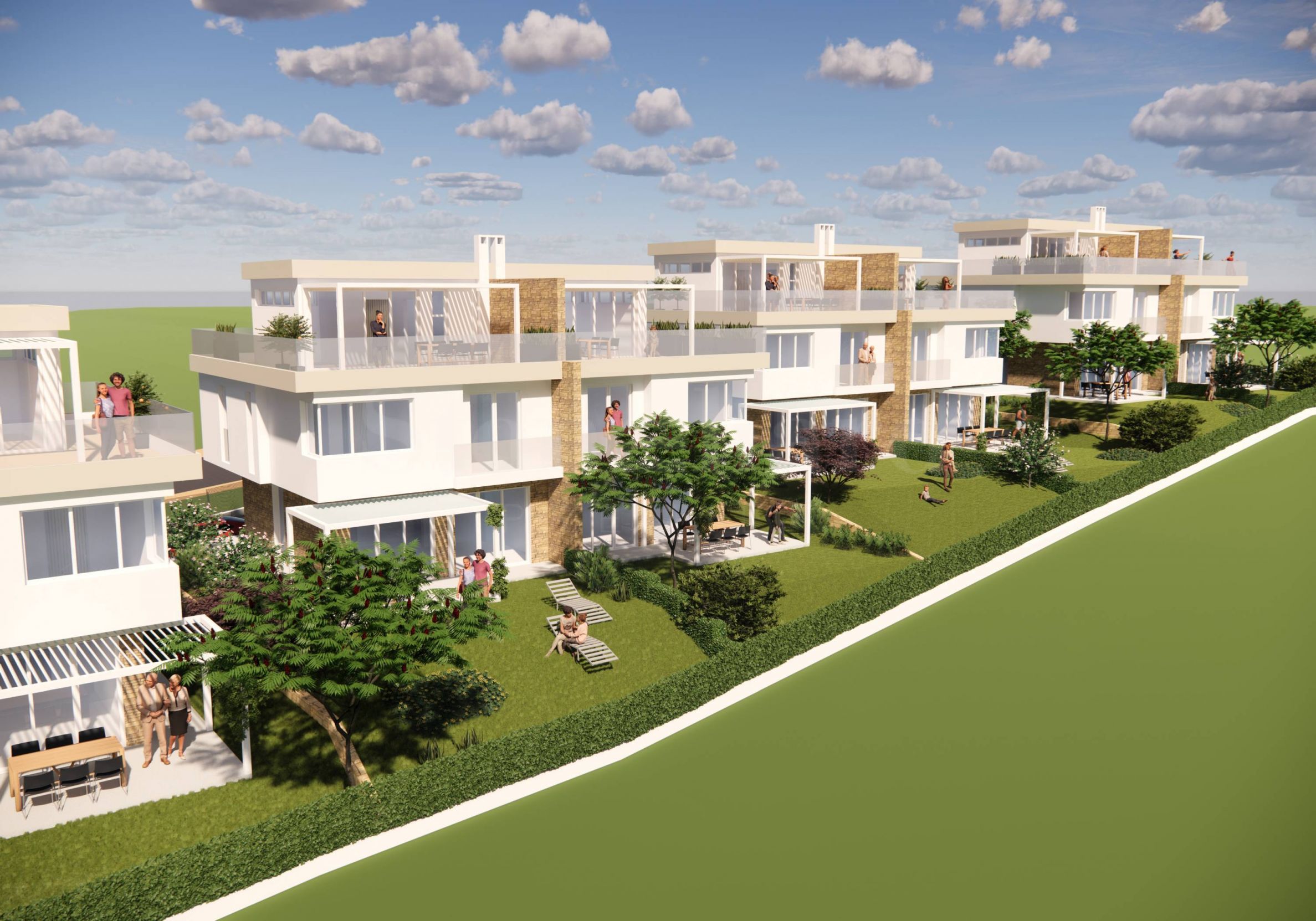 Houses with yard, parking spaces and sea views, 100 m from Kavatsi beach