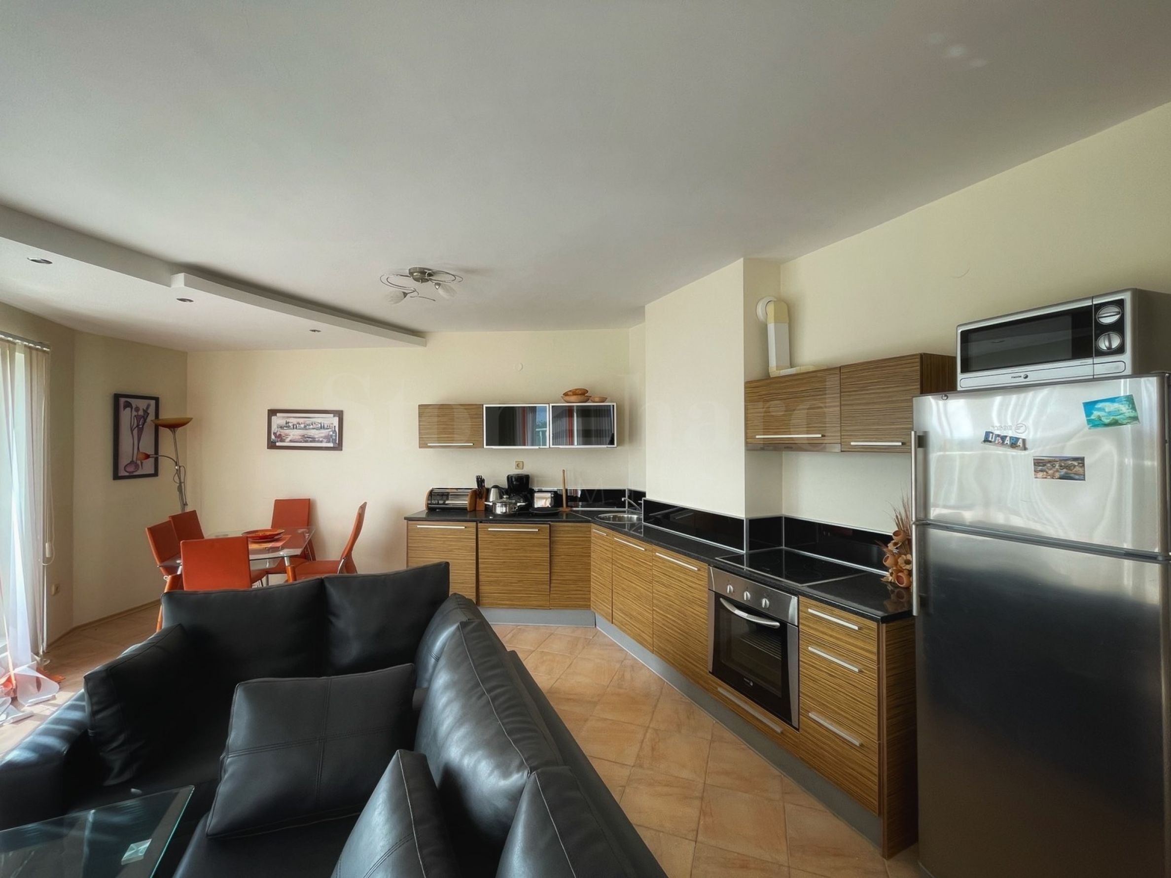 The apartment is fully furnished and equipped with everything you need, such as furniture and electrical appliances.
