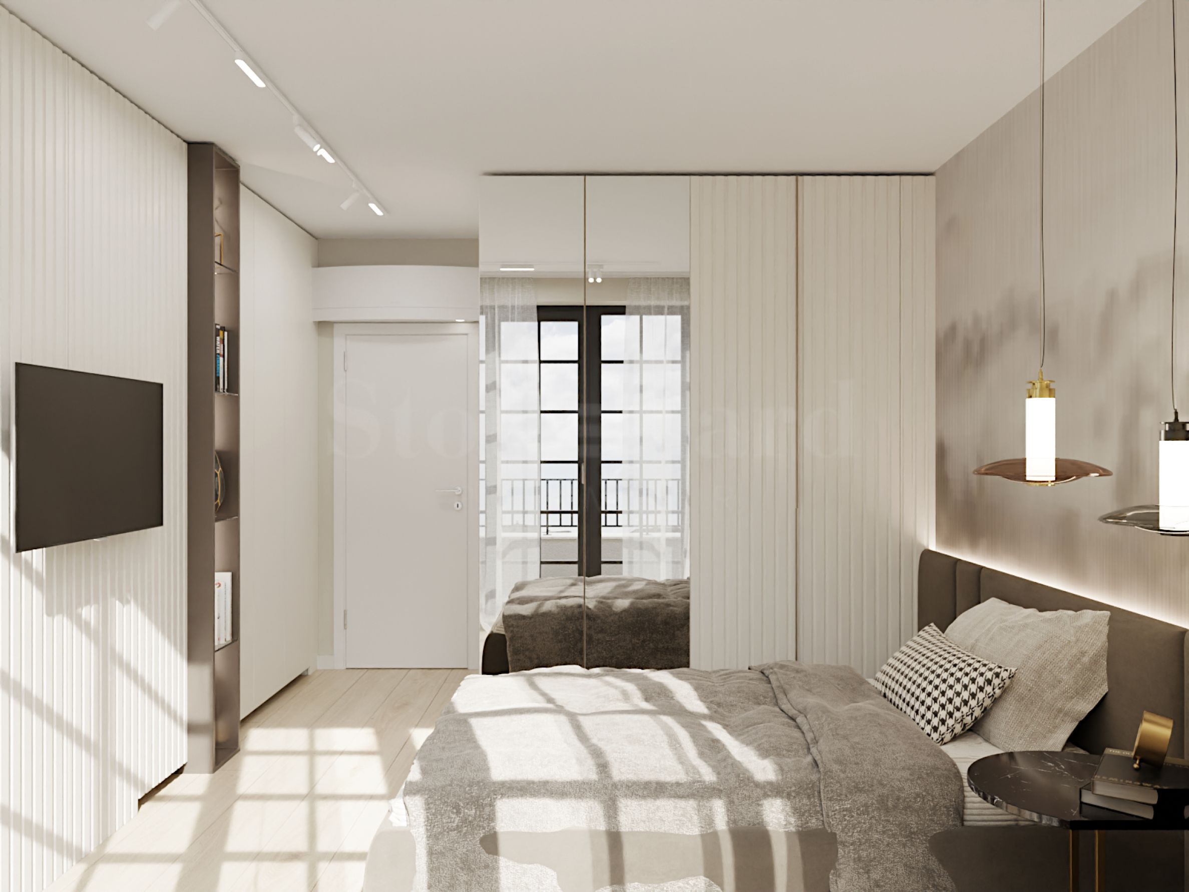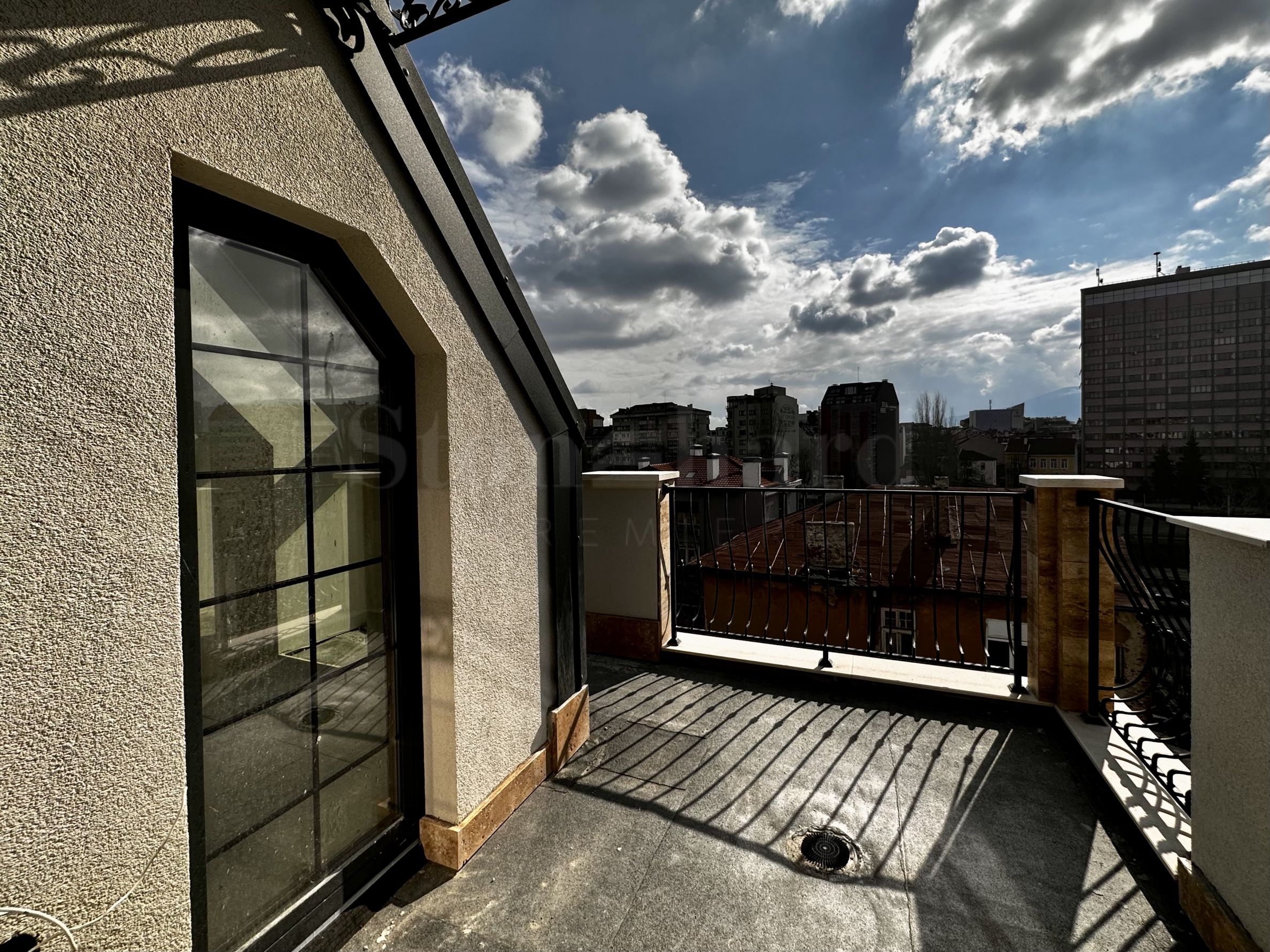 The property is located on the 7th last floor and has a total area of 126.14 square meters with functionally distributed rooms. It is the only one on the floor and has a direct entrance from the elevator. It consists of a living room with a kitchen, a dining room and an exit to a terrace, two bedrooms, a storage room, a bathroom with a toilet, a second terrace with an exit from one bedroom. Available at RRP with a high-end armored front door.
