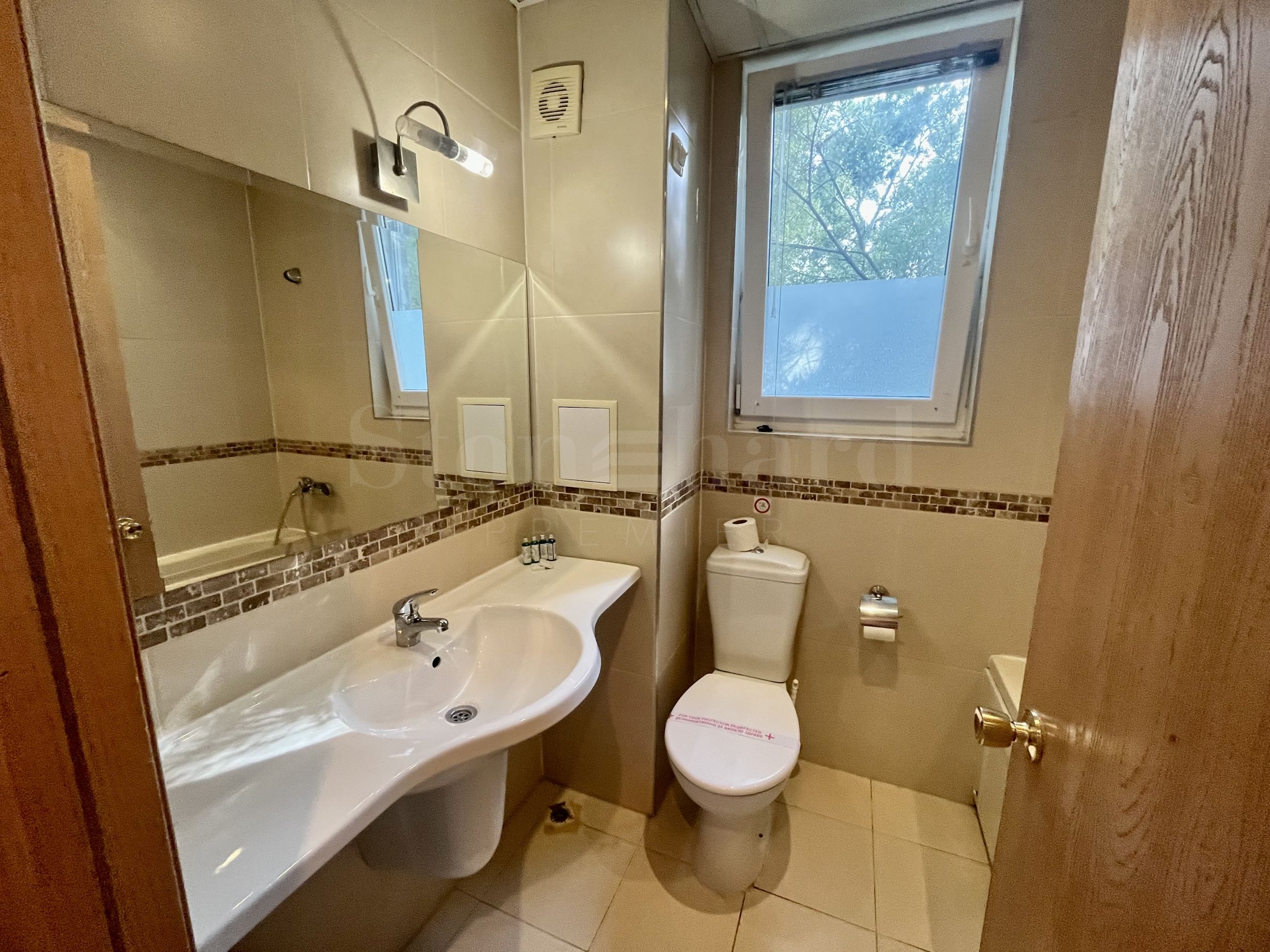 The property is part of a complex with amenities, a three-star modern resort with a lobby bar and restaurant, swimming pool, children's pool and playground, garden, etc. The maintenance fee for the apartment is 10.80 euros per square meter per year.