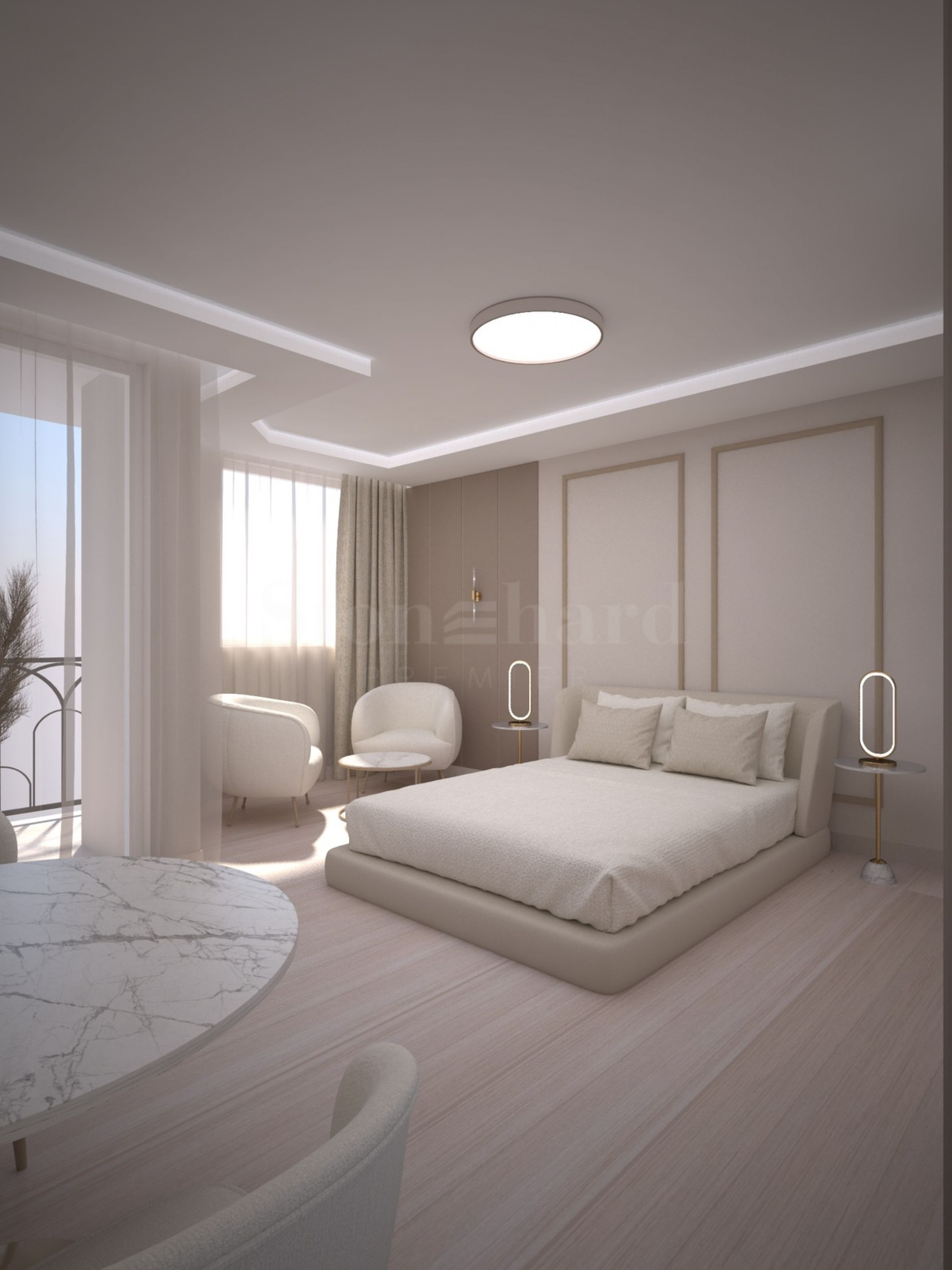 Located just 250 meters from the beach of Sunny Beach, in close proximity to the most attractive entertainment venues Zazu and Bedroom Beach, the complex is inspired by the French Riviera and will be filled with high-quality materials, in soft pastel colors, with designer pools, rich landscaping, beautiful gardens and recreation areas.