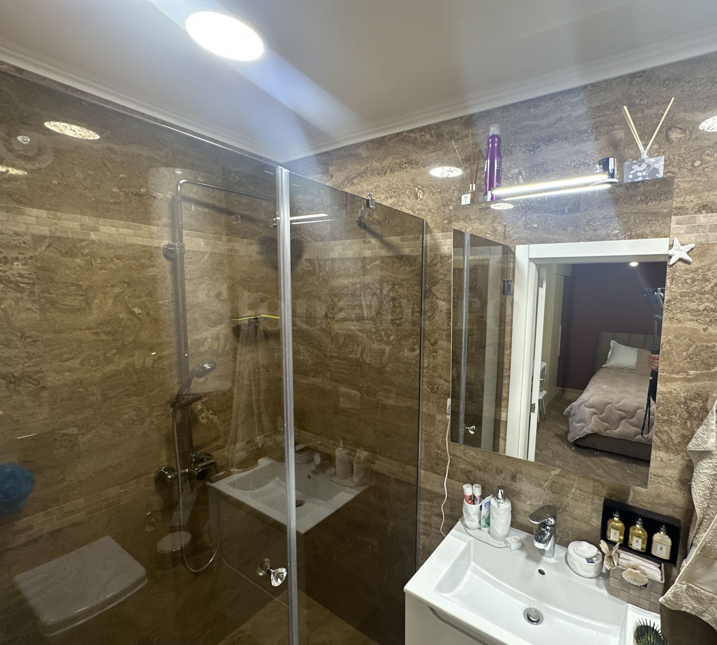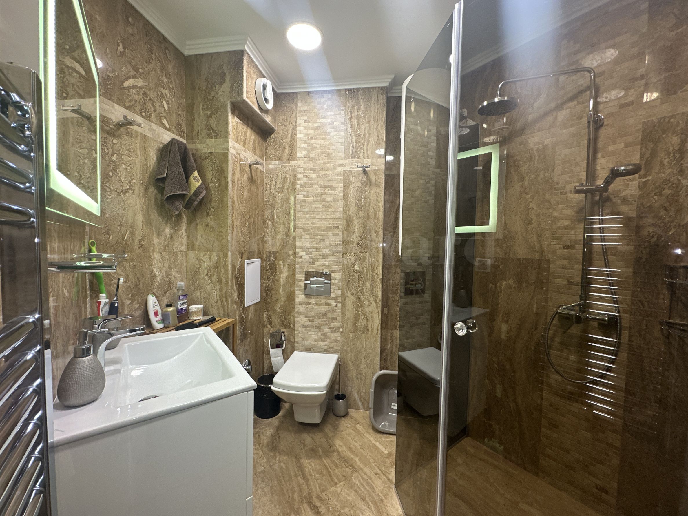 The property is located on the 3rd floor of a unique building in the area, awarded two years in a row as a Building of the Black Sea. Unlike other sites in the area, this building has central air conditioning. The common areas are well maintained and luxurious.