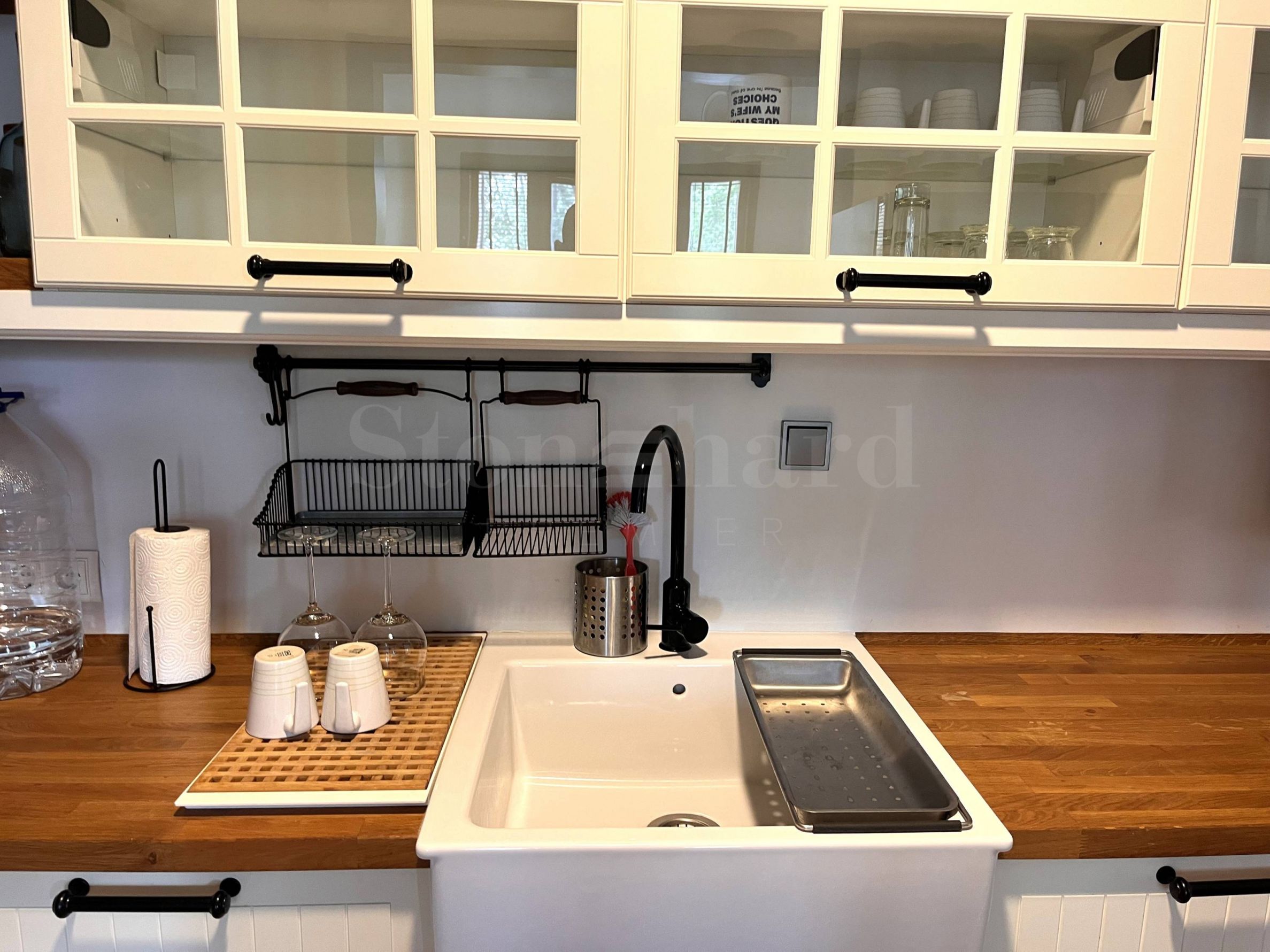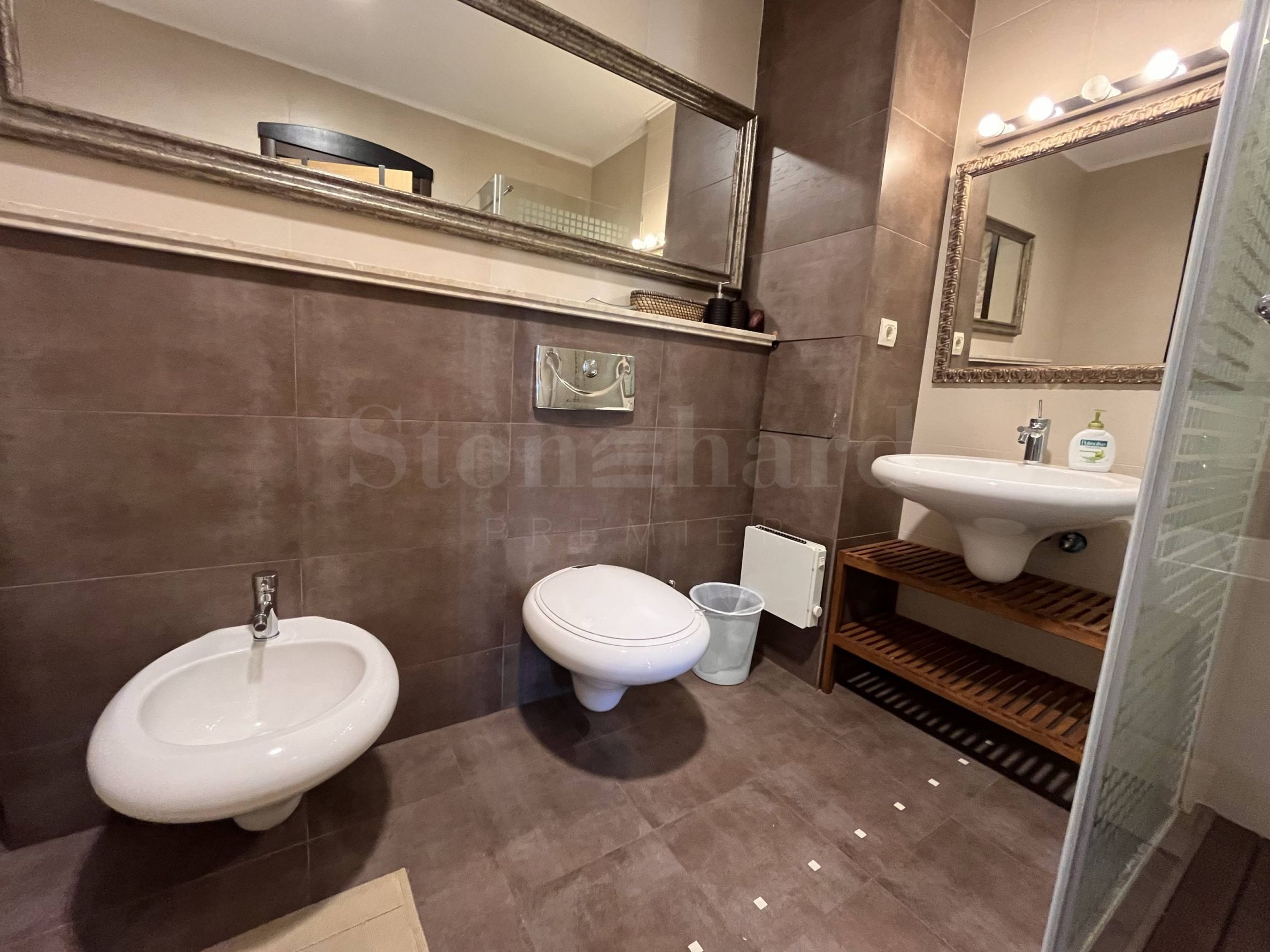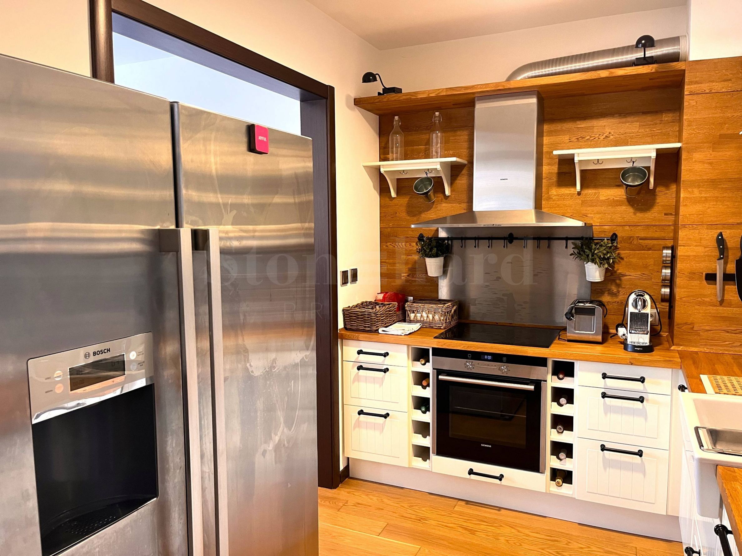 two terraces. The apartment is fully furnished and equipped with modern and comfortable furniture, high-end appliances and attention to every detail. The joinery is made of eucalyptus wood and offers excellent sound insulation, and the floor has three-layer natural parquet.