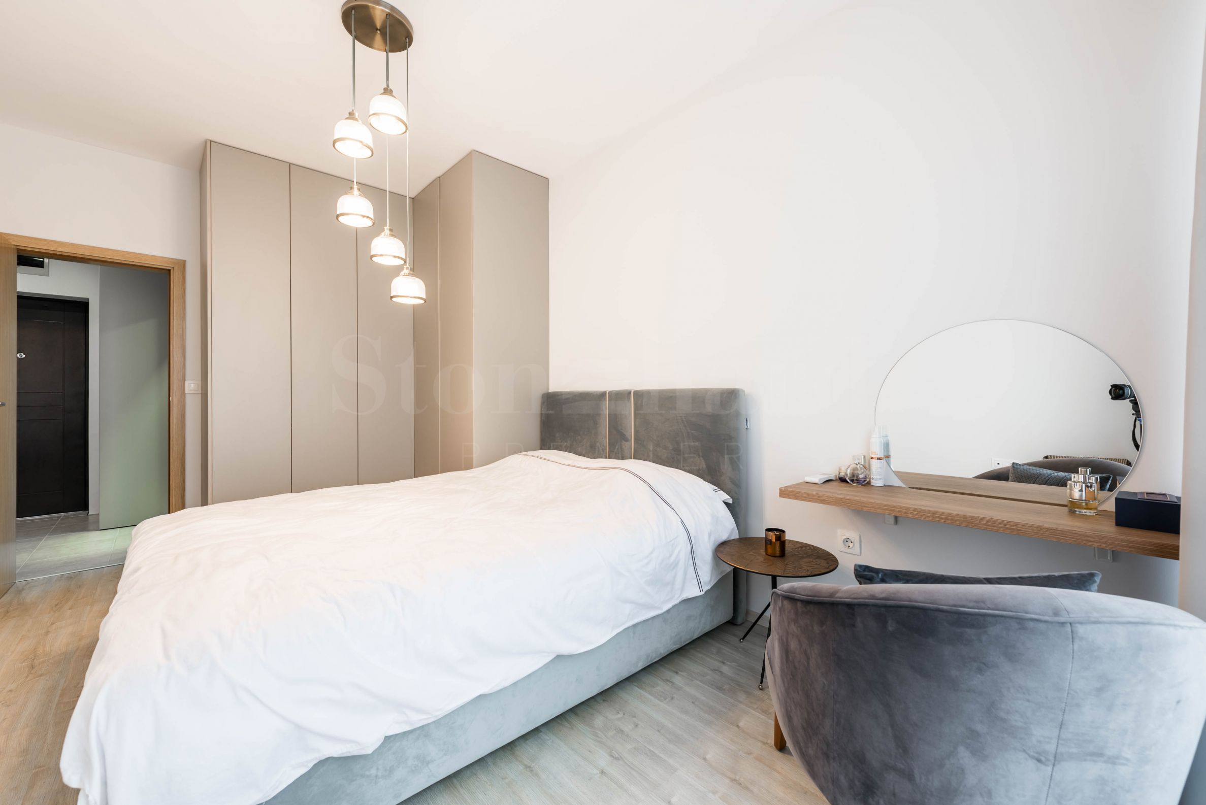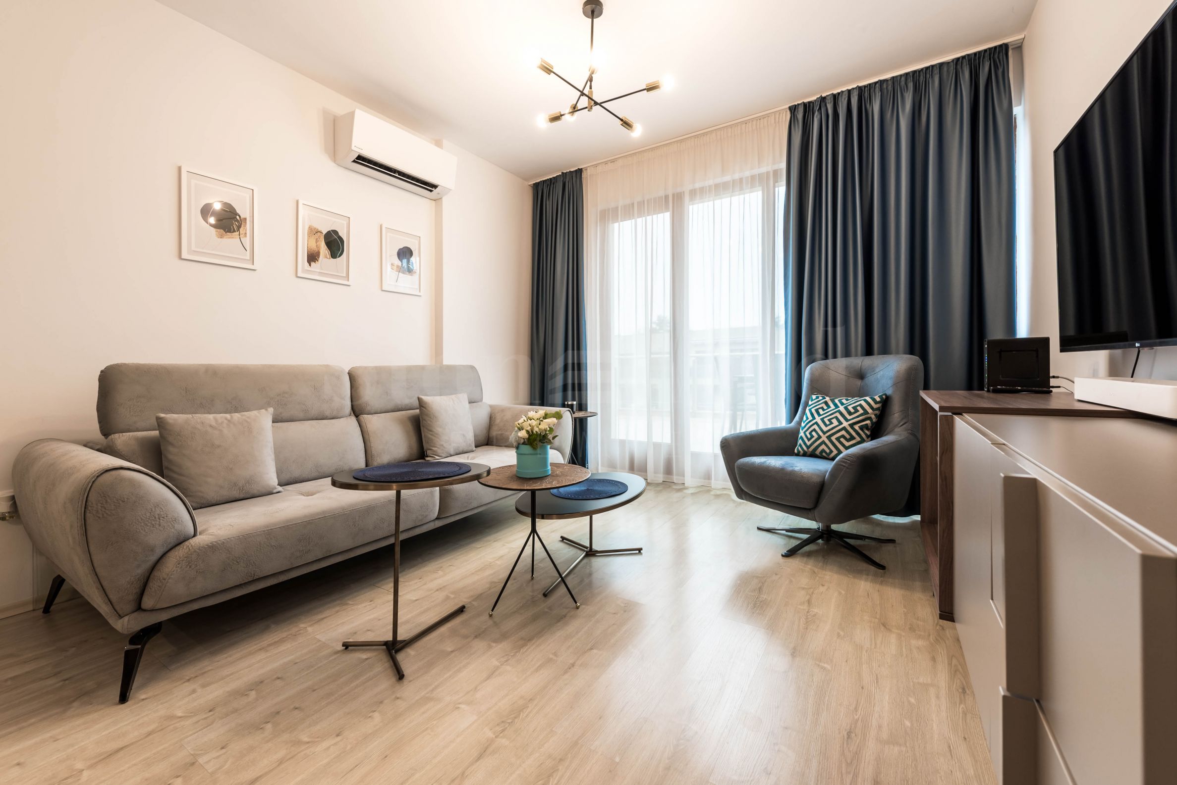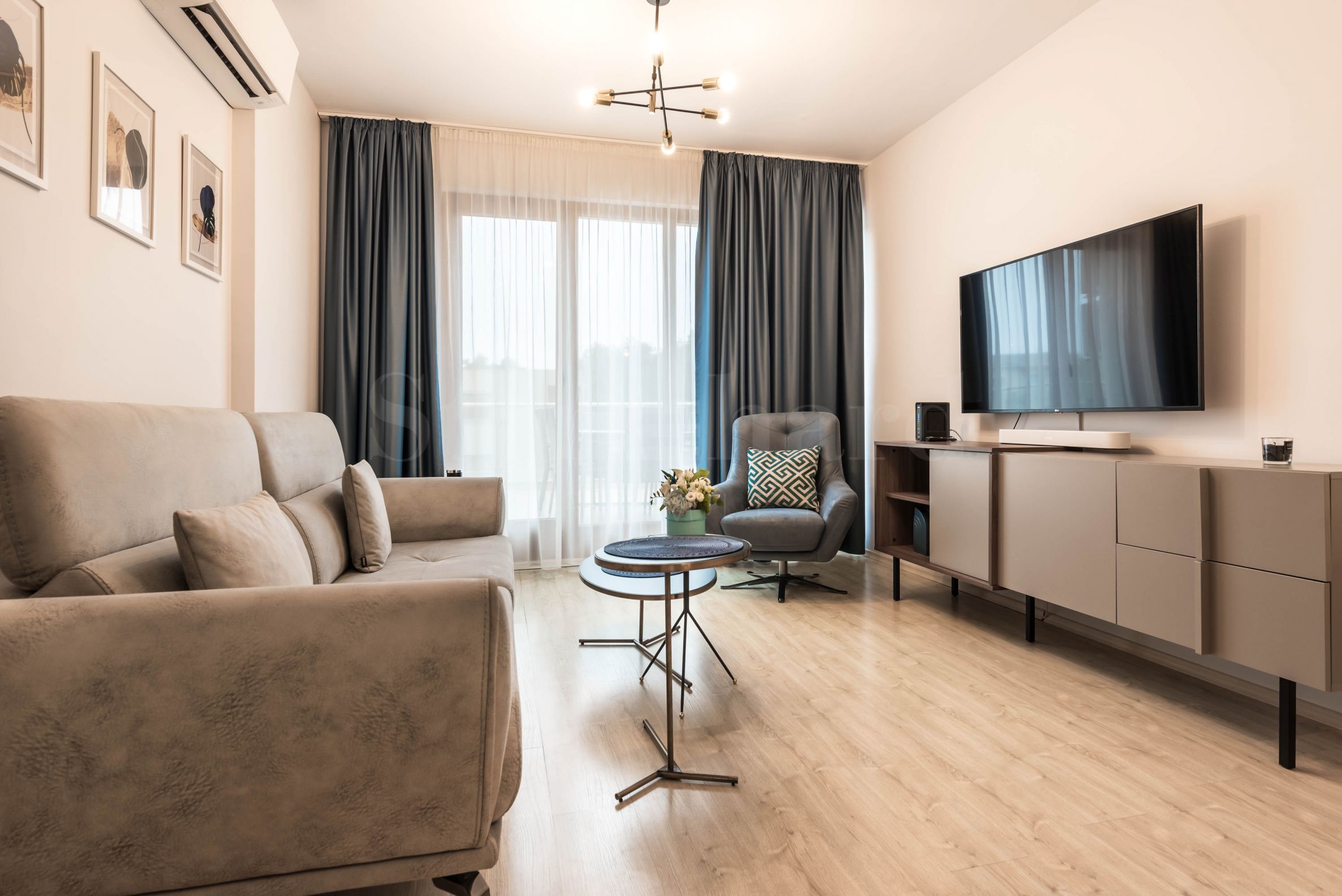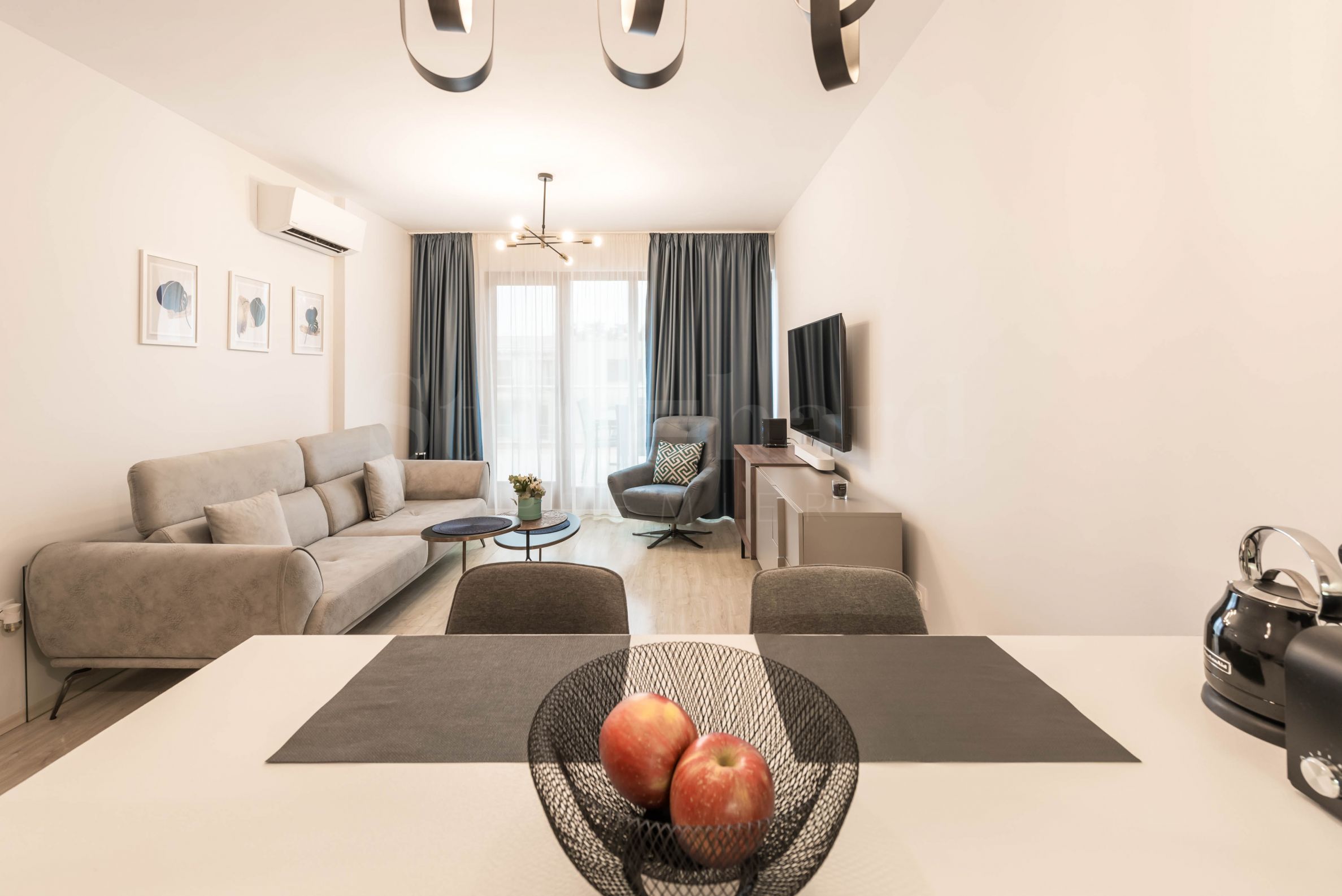 The apartment is fully furnished with functional furniture and electrical appliances from renowned manufacturers. The window frames are PVC, with double glazing, the floors are filled with granite and laminate, and the walls are painted with latex.