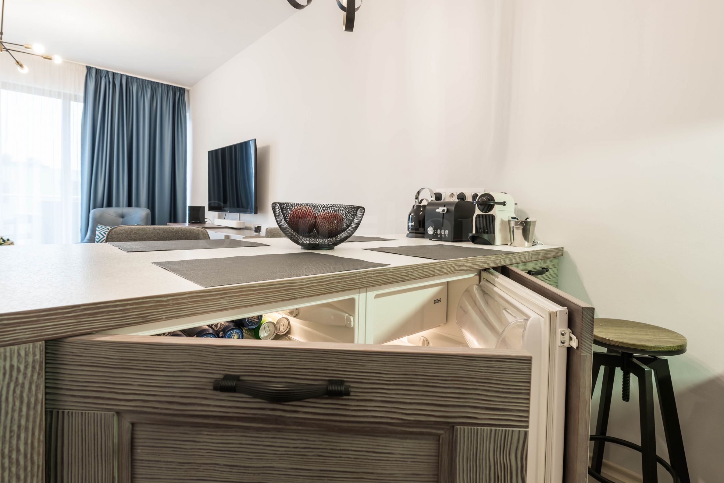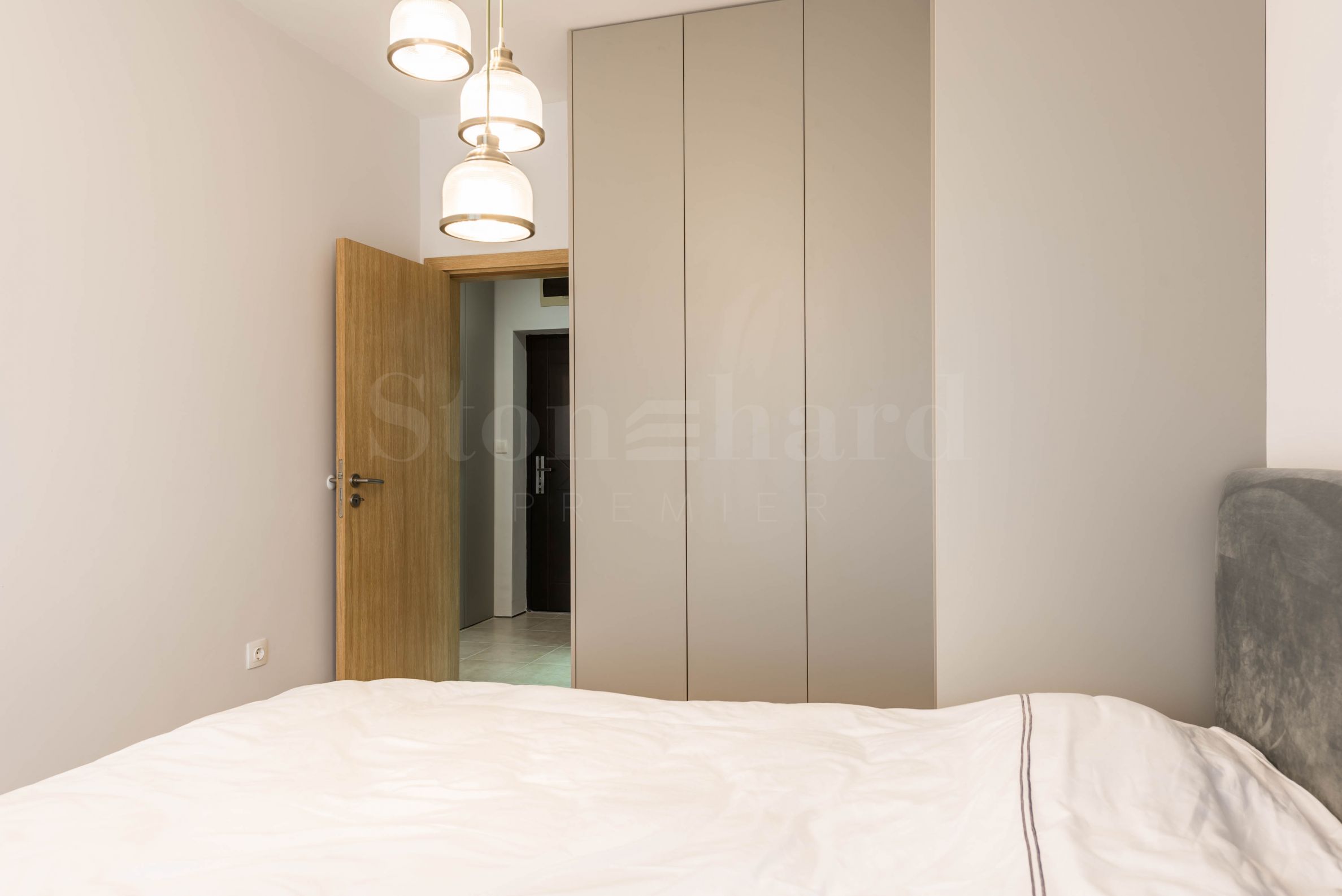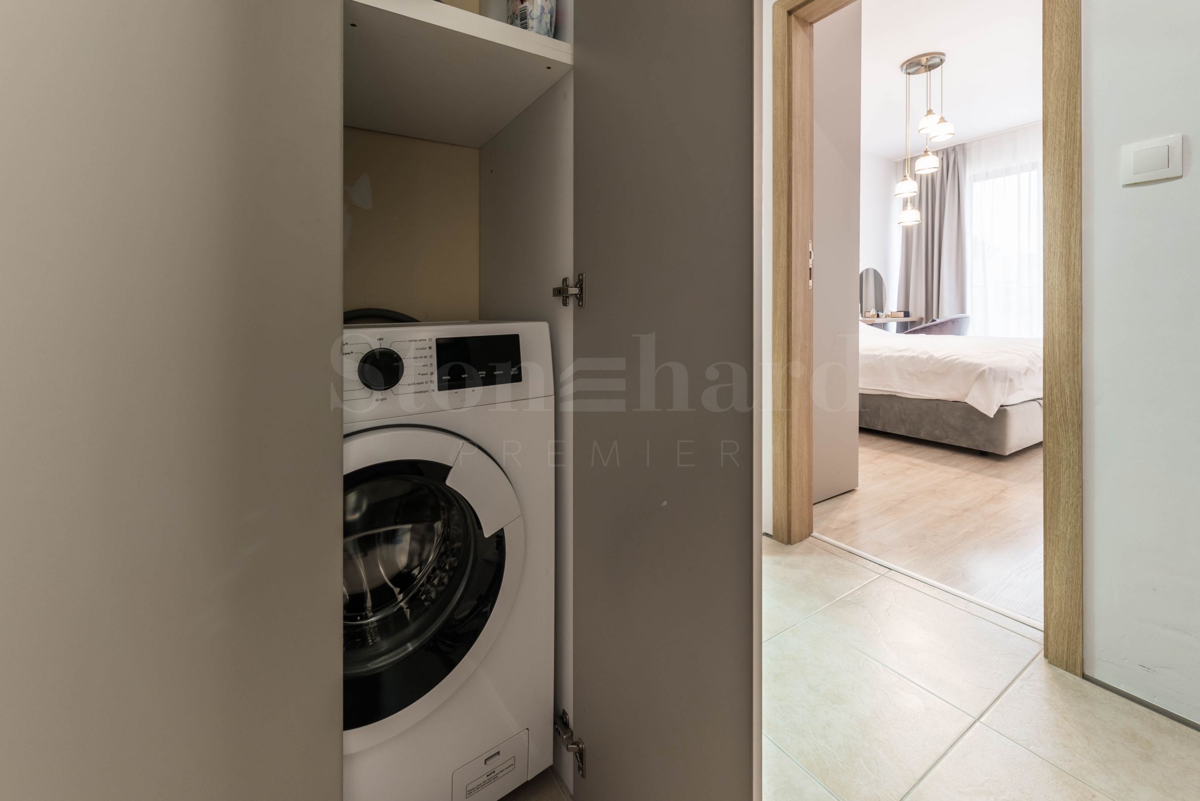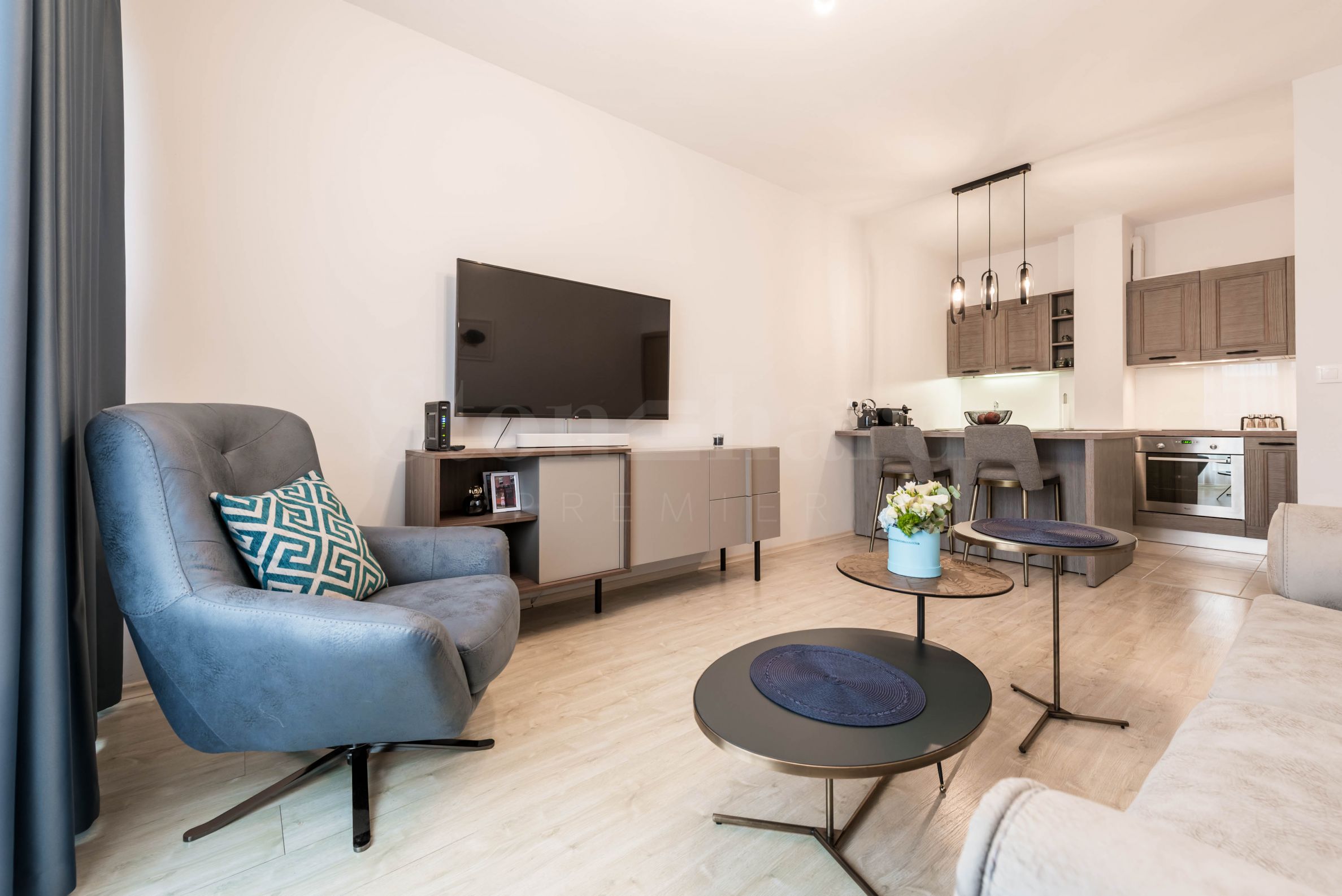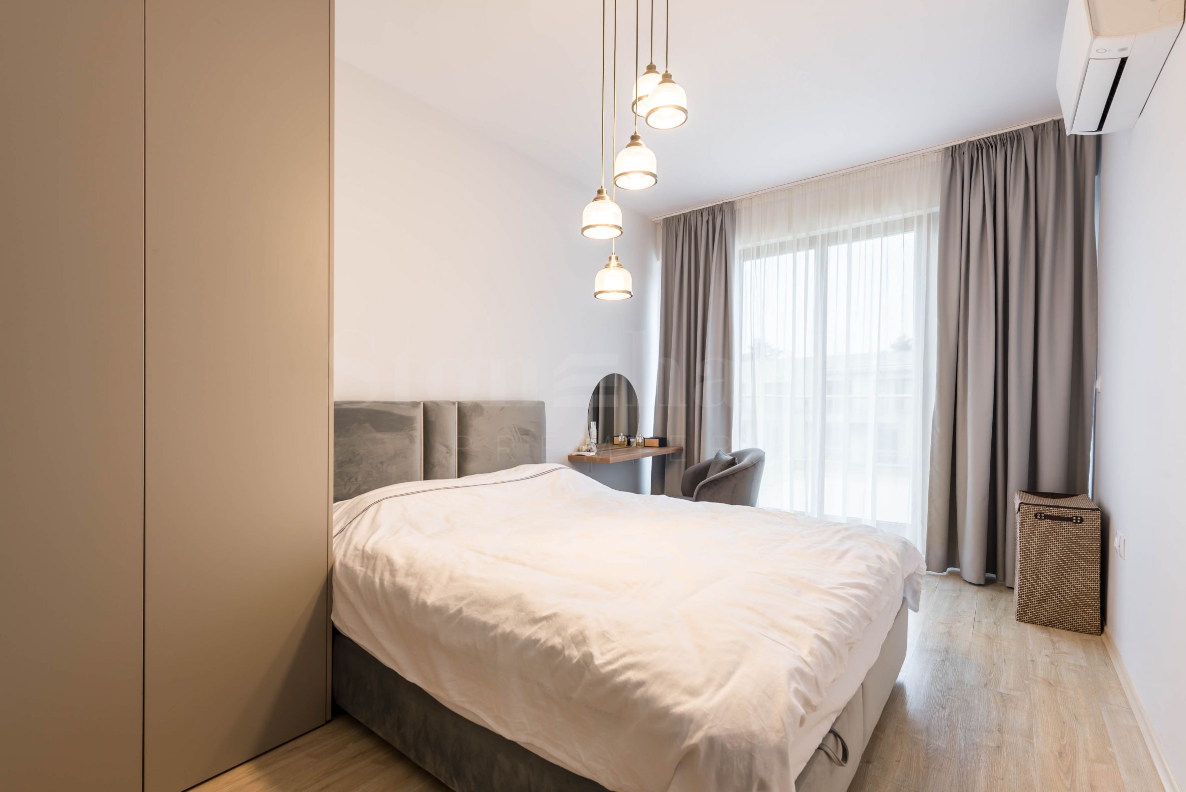 The apartment is fully furnished with functional furniture and electrical appliances from renowned manufacturers. The window frames are PVC, with double glazing, the floors are filled with granite and laminate, and the walls are painted with latex.