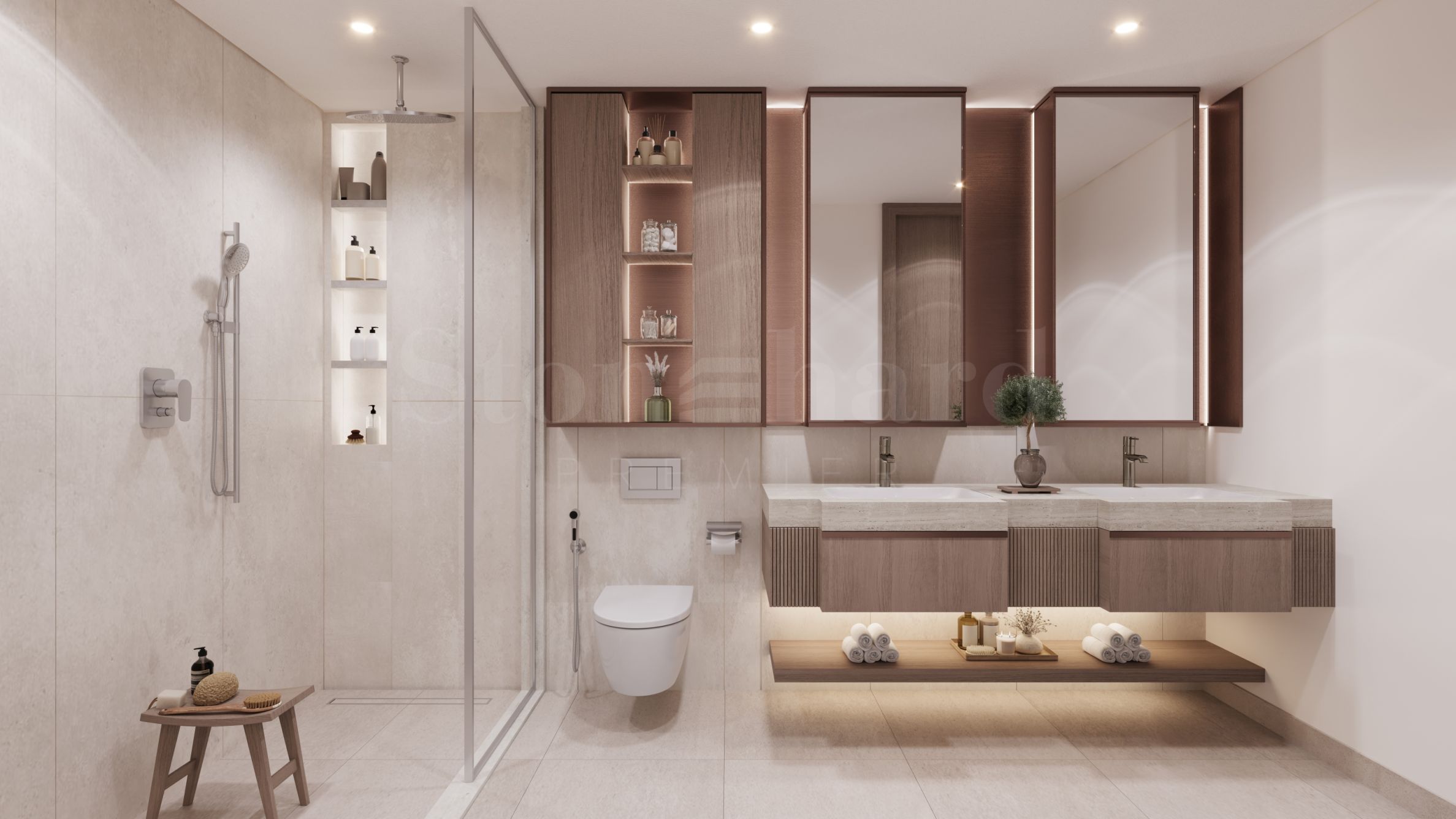 The development offers 1, 2 and 3 bedroom apartments. The interiors of the units feature rich textures and fine finishes, and are flooded with natural light from the French windows. Each apartment offers more than just a home - it's a place where thoughtful design meets elevated comfort. Every element, from the spacious layouts to the high quality finishes, has been carefully selected to reveal the unique character of each home.