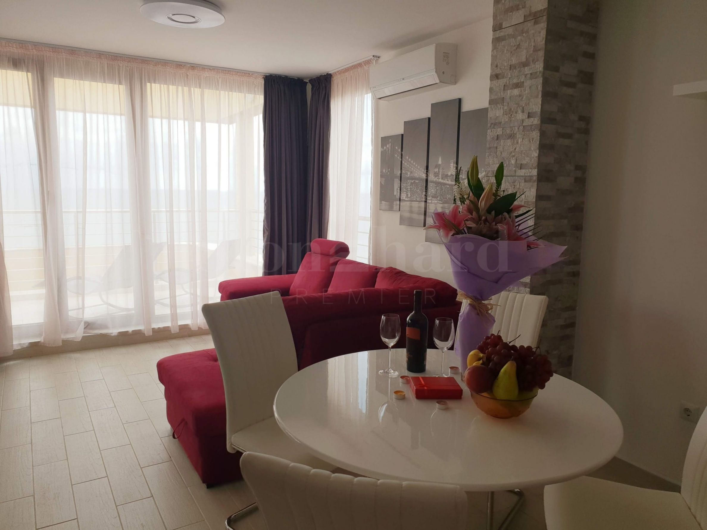 The property is part of a new building, with a strategic location next to the sea cliffs, above the beautiful bay. The location offers quick access to the center of the resort, excellent infrastructure, mostly new construction in the area, absolute first line to the sea.