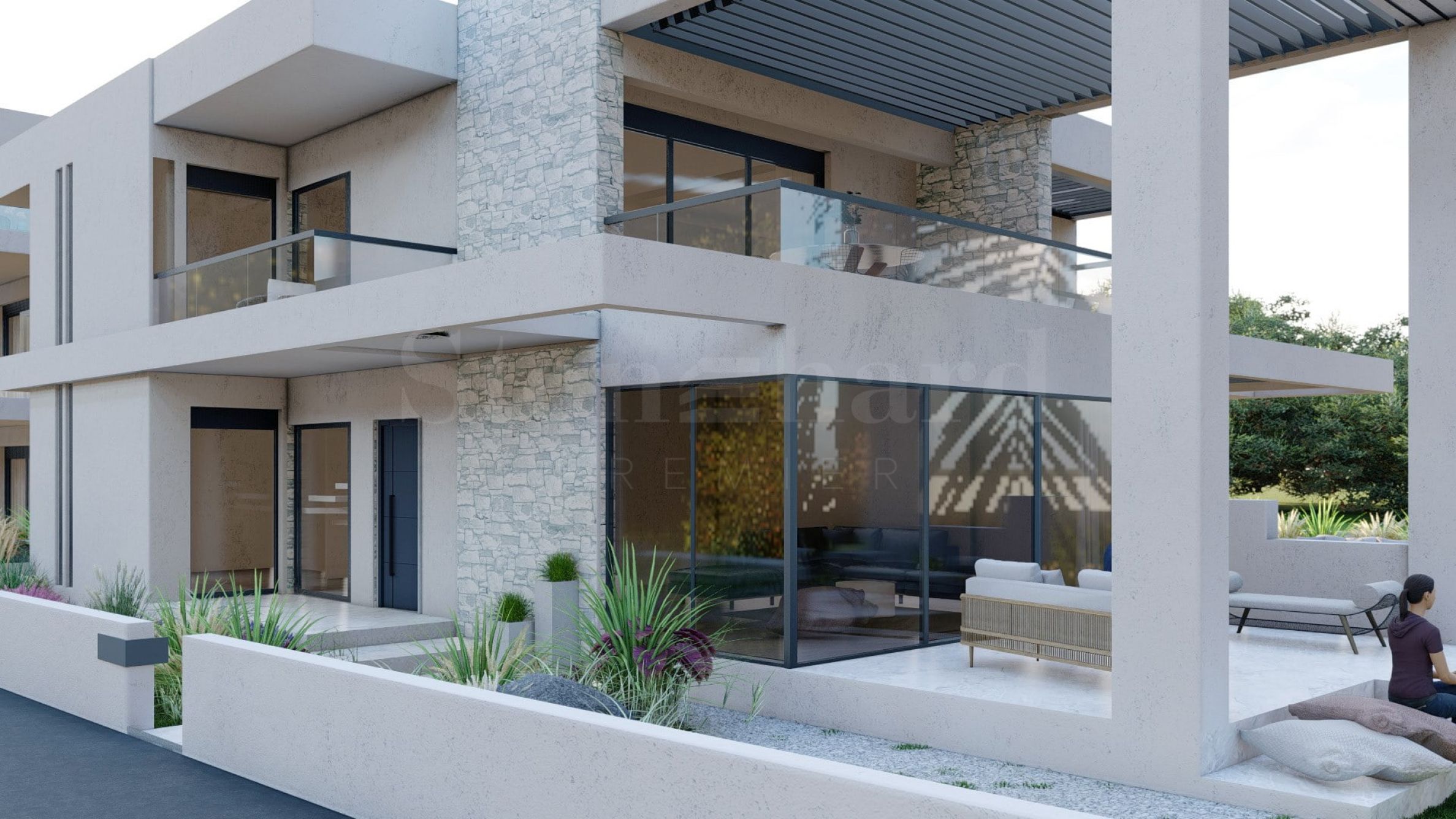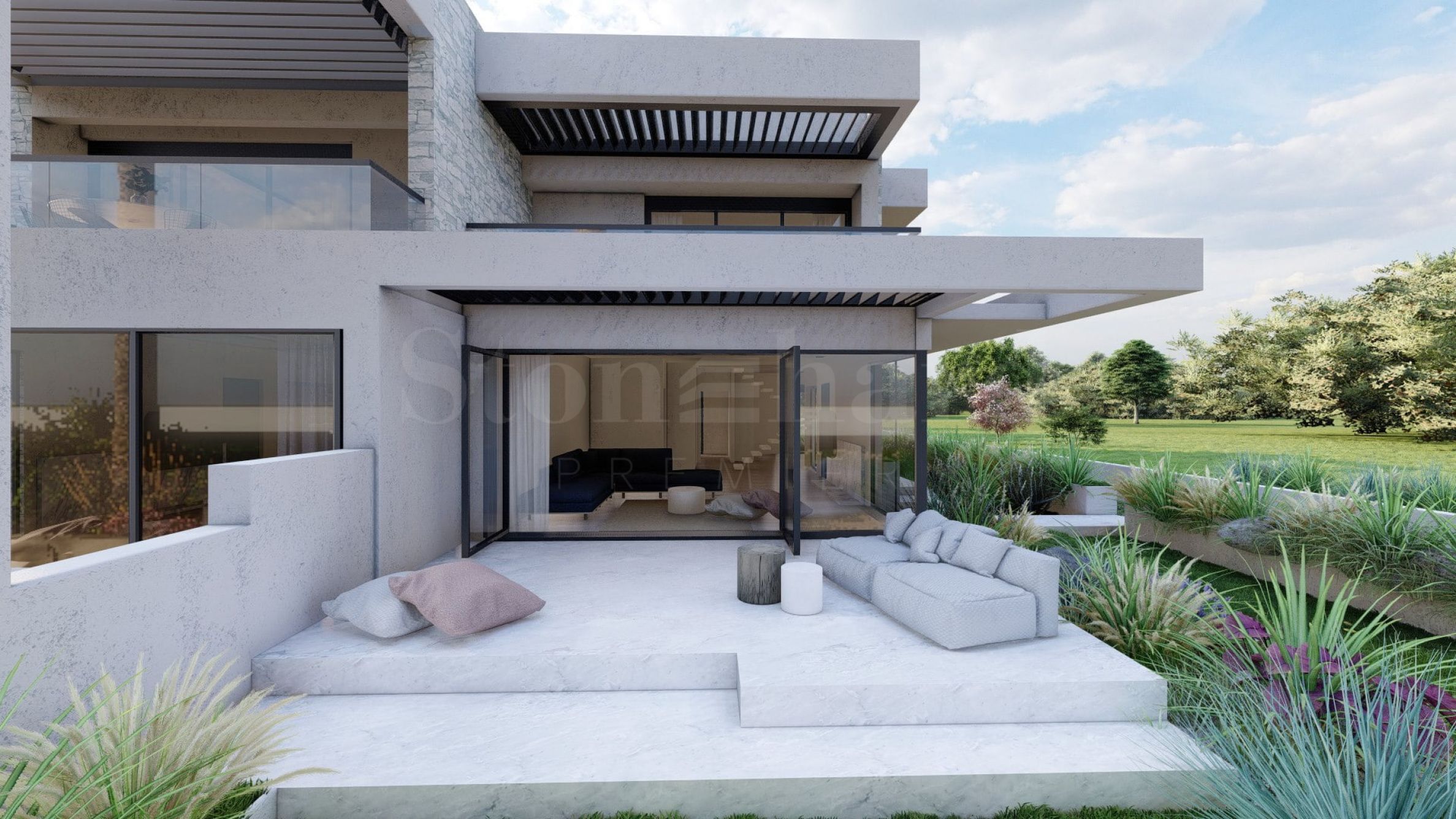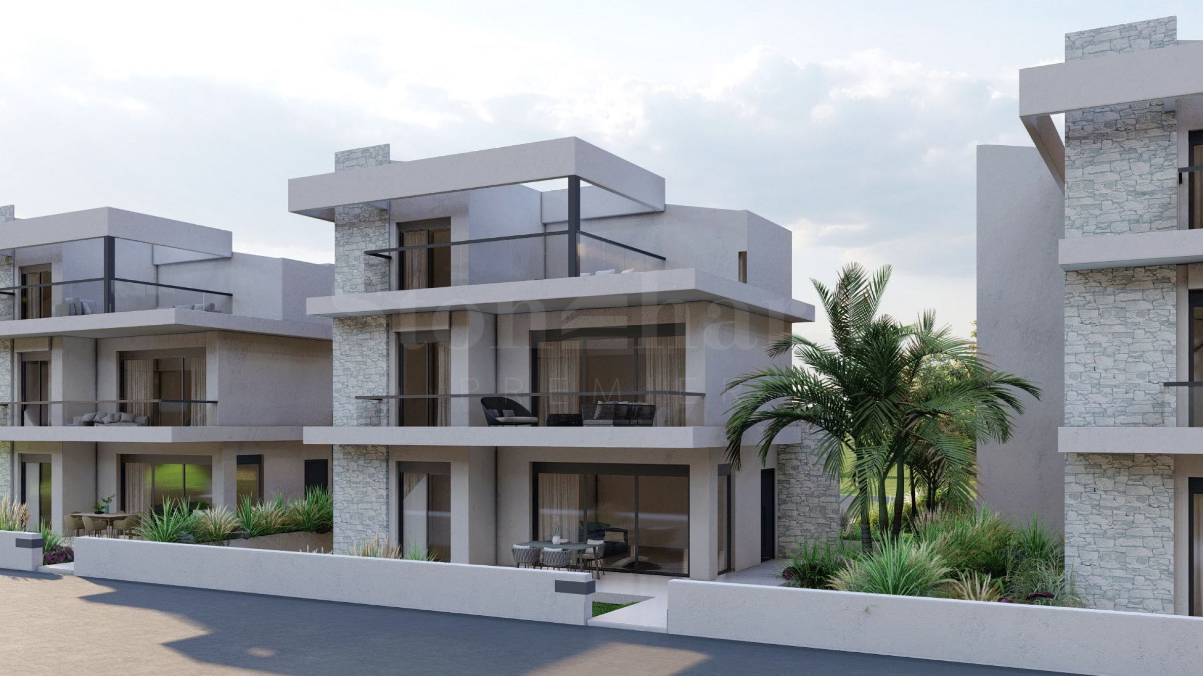 Marina Sea View combines elegance and modern design, creating an excellent summer atmosphere. Every detail has been designed with great attention, creating a fabulous environment that delights the senses. The exterior is clean, with straight lines and dominant stone elements that harmonize perfectly with the environment. The rooms in the houses are spacious and with plenty of daylight, thanks to the large windows. Last but not least, each house has its own veranda, and the spaces between the properties are provided with rich landscaping, designed to provide a wonderful environment for relaxation and children's games.