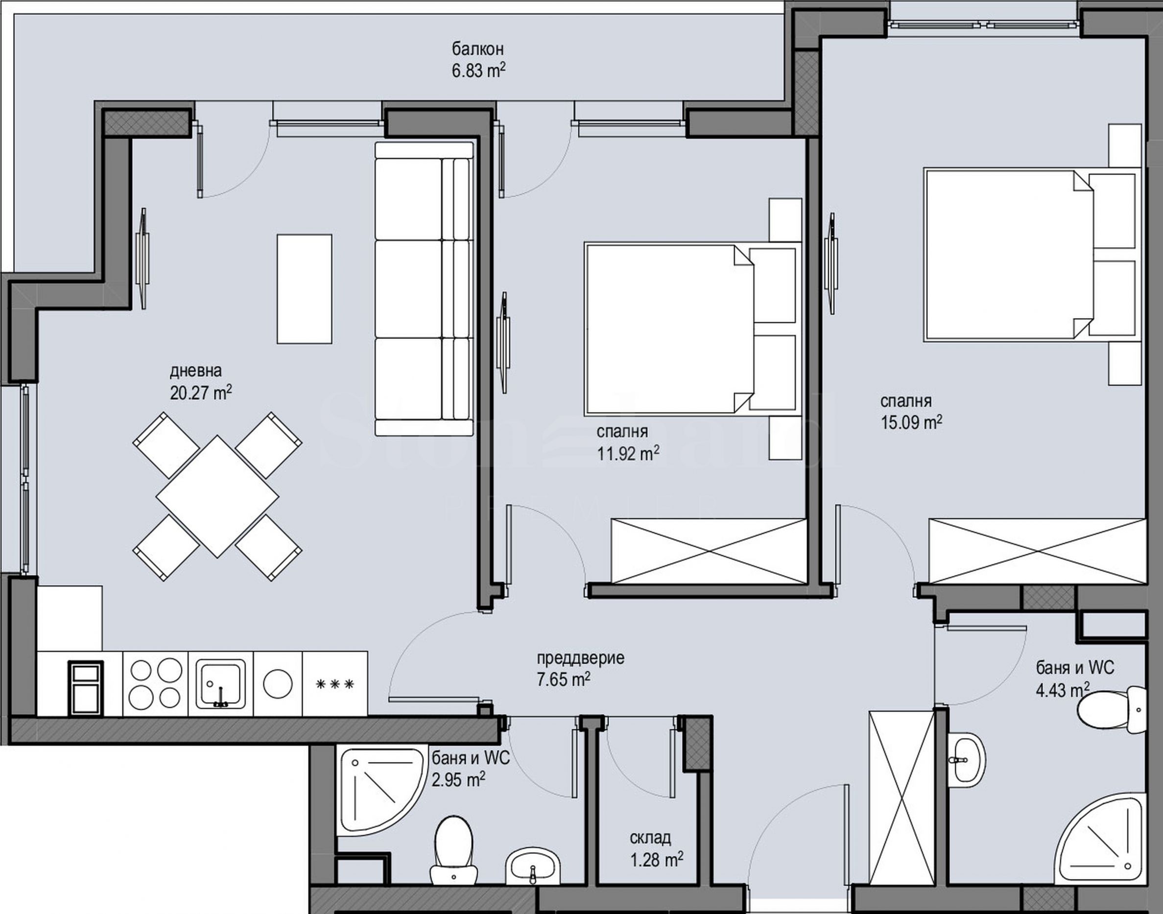 The apartments are issued in the following degree of completion according to Bulgarian Construction Standards: