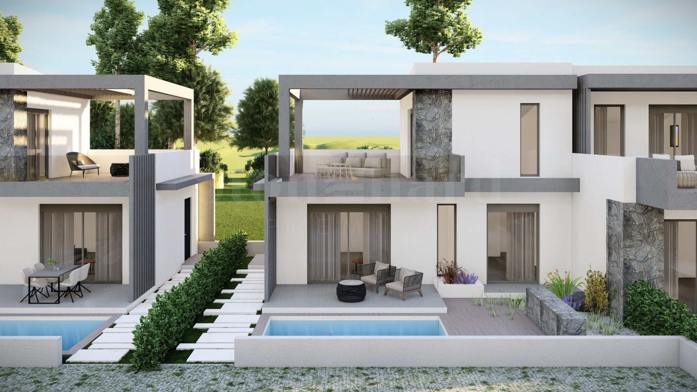 The complex consists of 20 summer residences, located in a quiet and peaceful location in the resort town. The homes have elegant, beautifully crafted facades, combining light tones and natural materials, creating a feeling of luxury and comfort. The layouts of the houses are designed to offer maximum comfort, and the large windows provide plenty of natural light in the rooms. The houses also have spacious balconies, which are the ideal place for meeting friends and pleasant conversations under the starry sky. Selected homes have an outdoor swimming pool right next to the veranda, which, in addition to the opportunity for cooling baths, is also an excellent place for family entertainment and games with children.