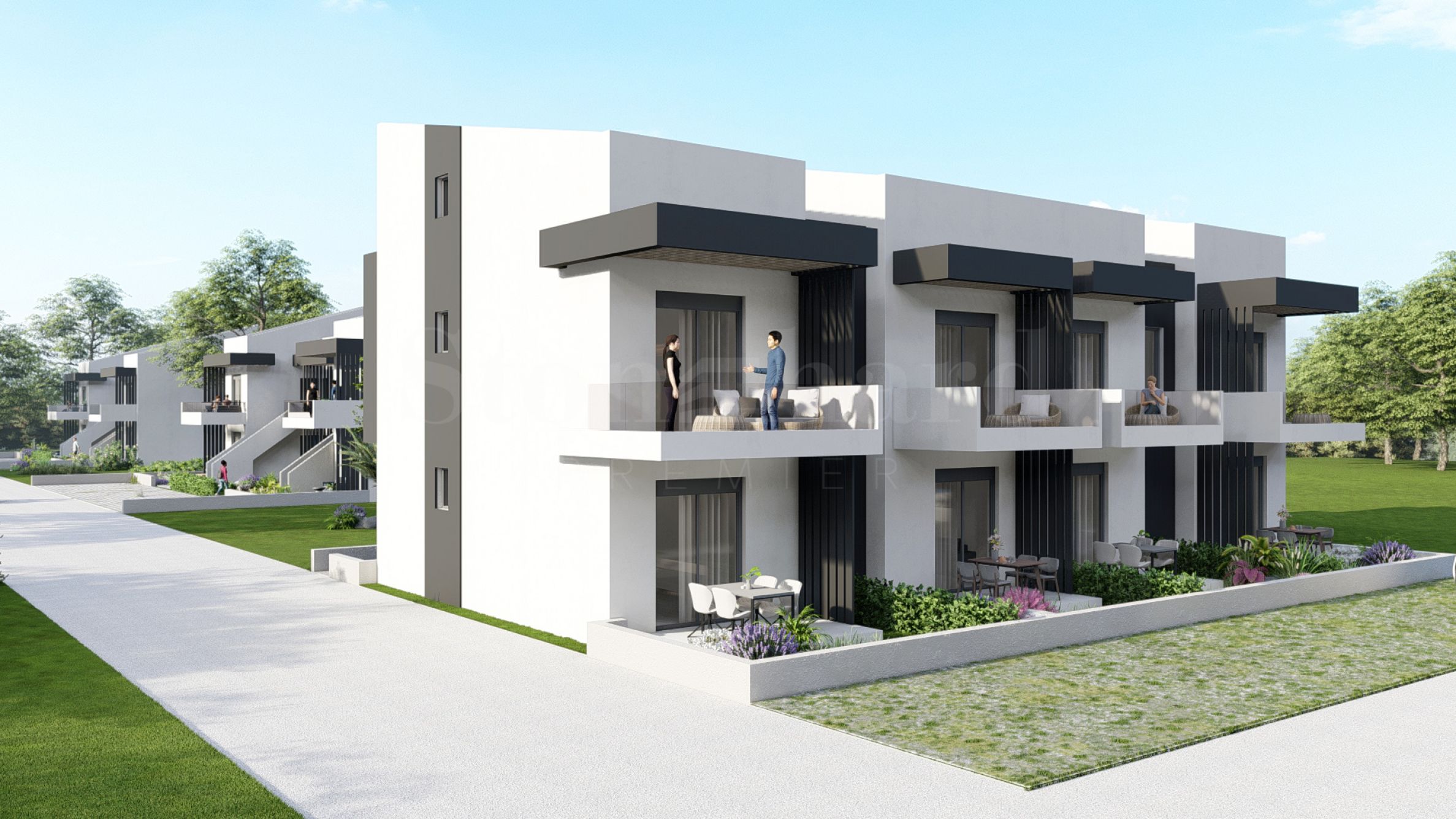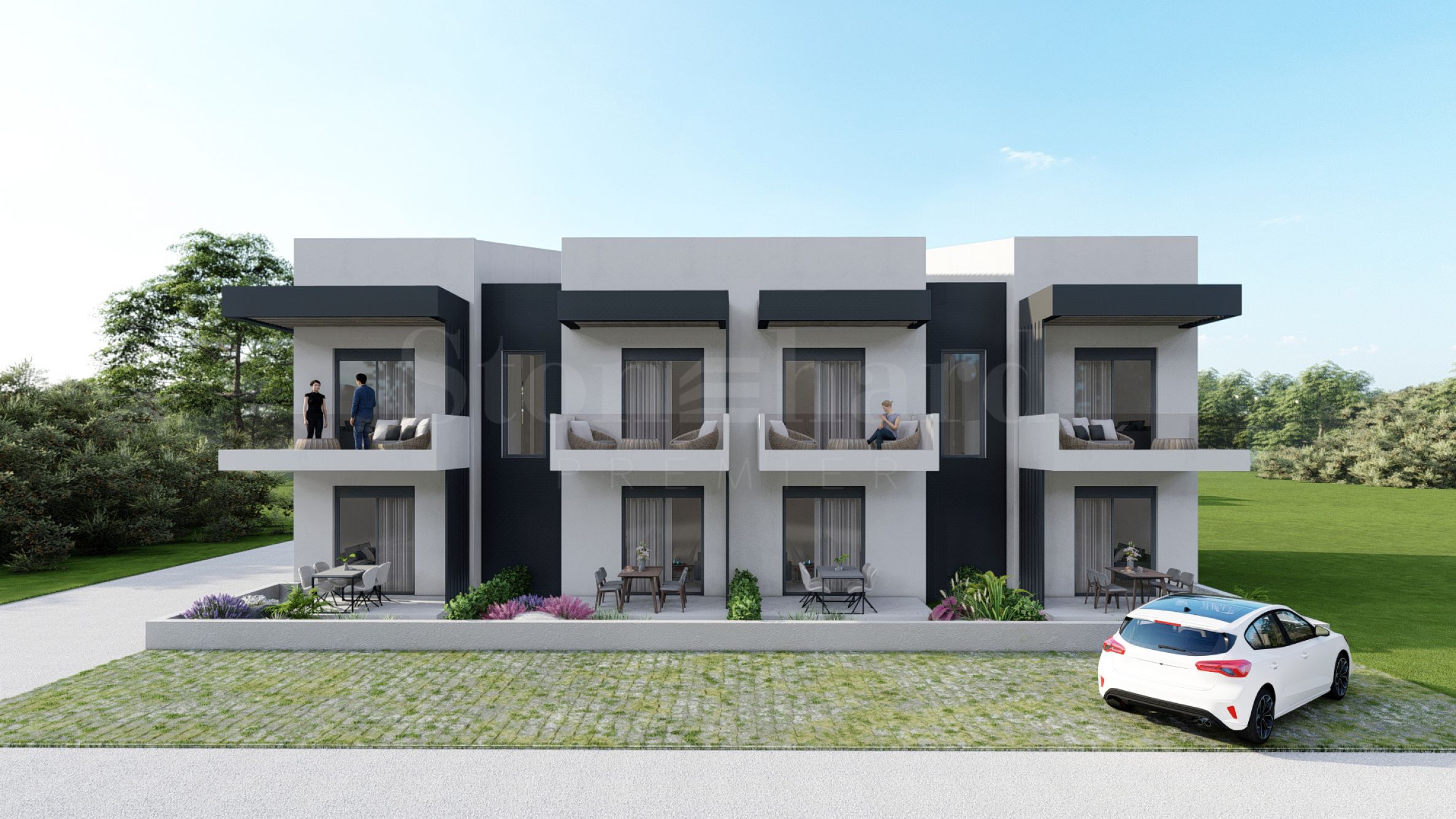 Leto Complex is located on a quiet and peaceful street, away from large hotels and large-scale complexes, which guarantees privacy and comfort for its residents. It consists of three elegant buildings with a total of 24 functional and cozy apartments. The architecture of the complex combines modern construction standards with clean lines and sophisticated details around the terraces. In order to minimize the common areas, the staircases to the apartments on the second floor are taken outside, which not only optimizes the space, but also contributes to more peace and solitude. The green areas and carefully maintained gardens create an ideal atmosphere for relaxation and pleasant moments with loved ones.