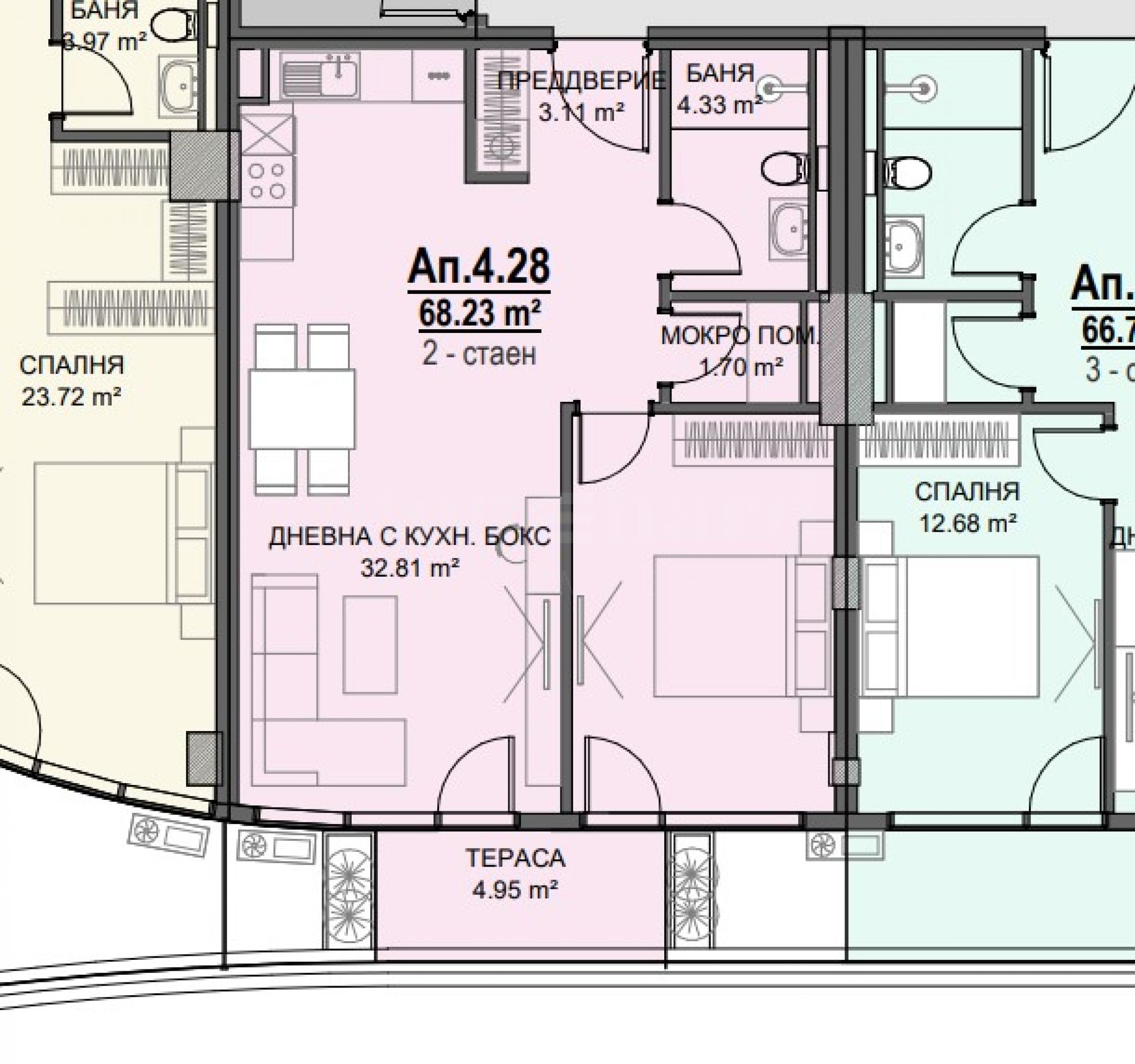 One-bedroom apartment No. 4.28 in S-Tower on G.M. Dimitrov Blvd. in Sofia