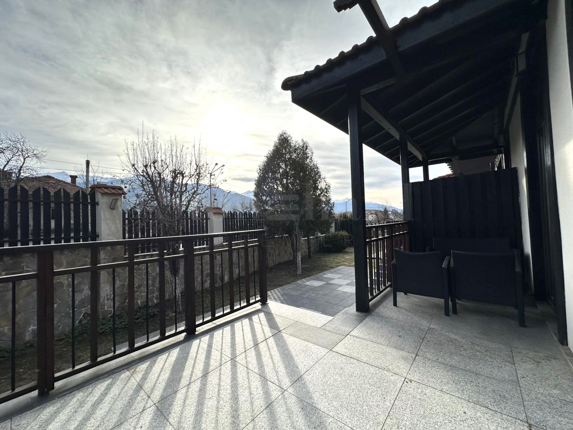 South-facing terrace with mountain views.