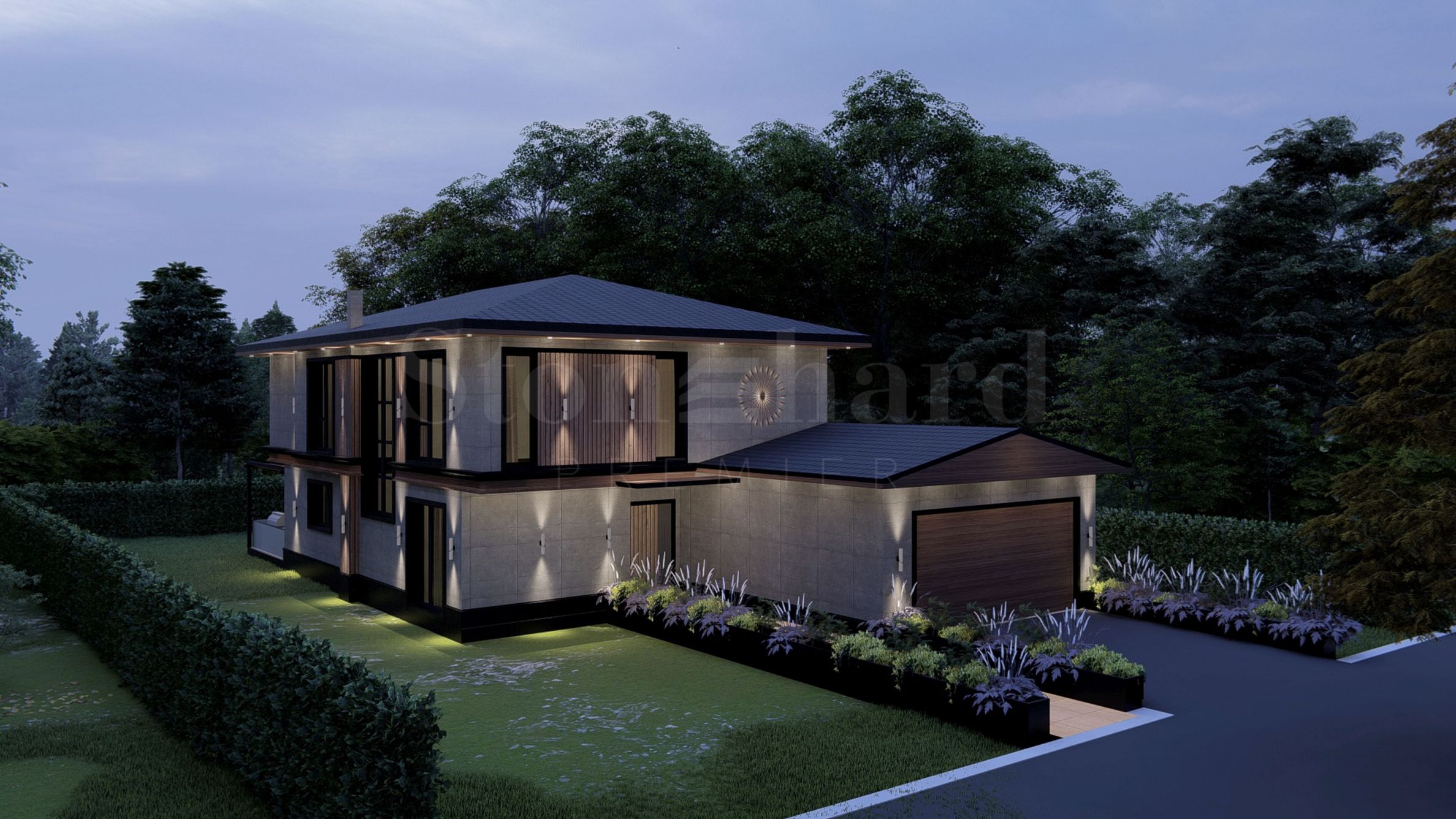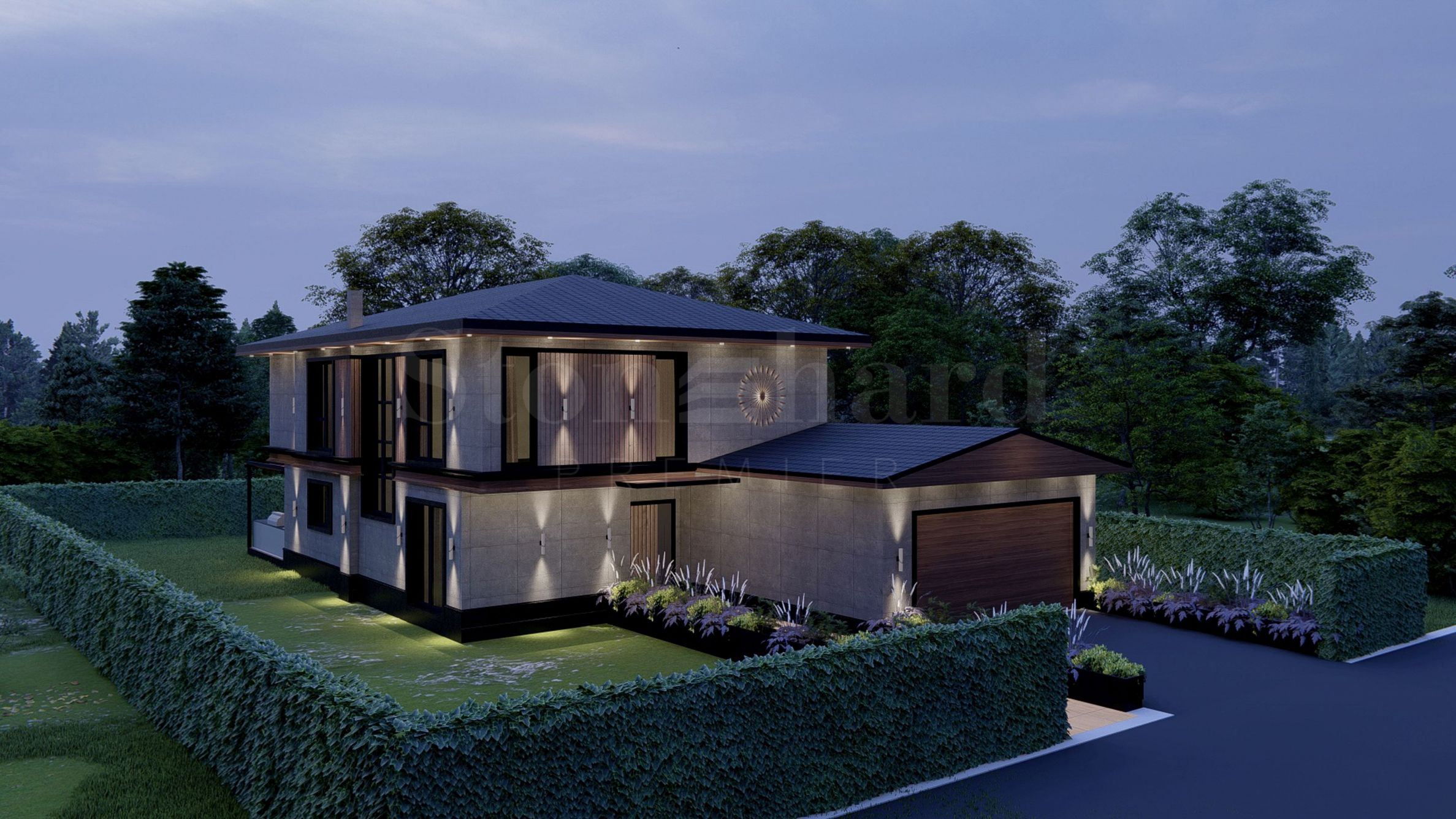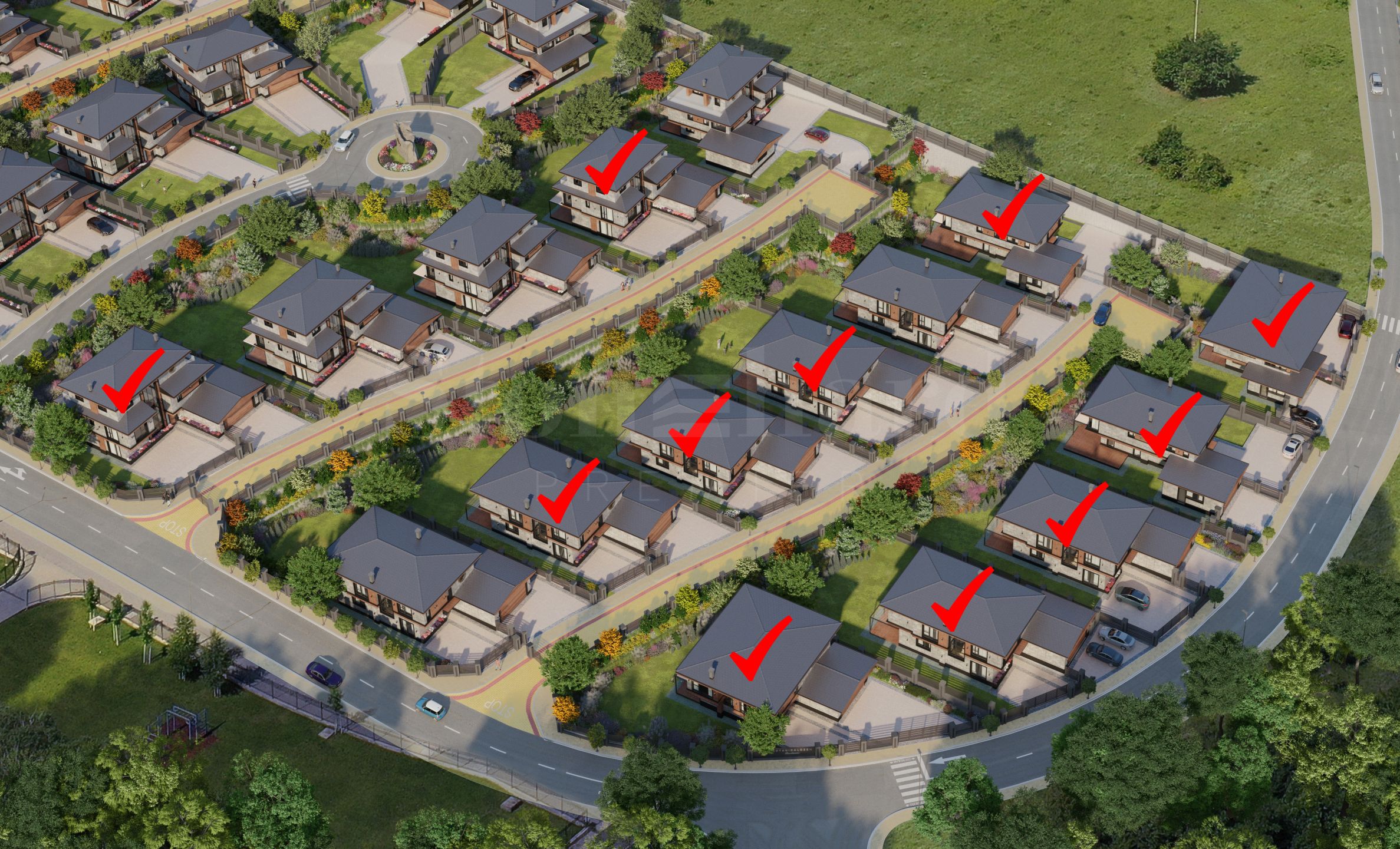 The complex will include 56 detached houses, distributed in three stages. In the first and third stages, 16 houses will be built, and in the second stage - 24 houses. The houses will have an area of 270 to 380 sq. m and will have private yards, ranging between 600 and 800 sq. m.