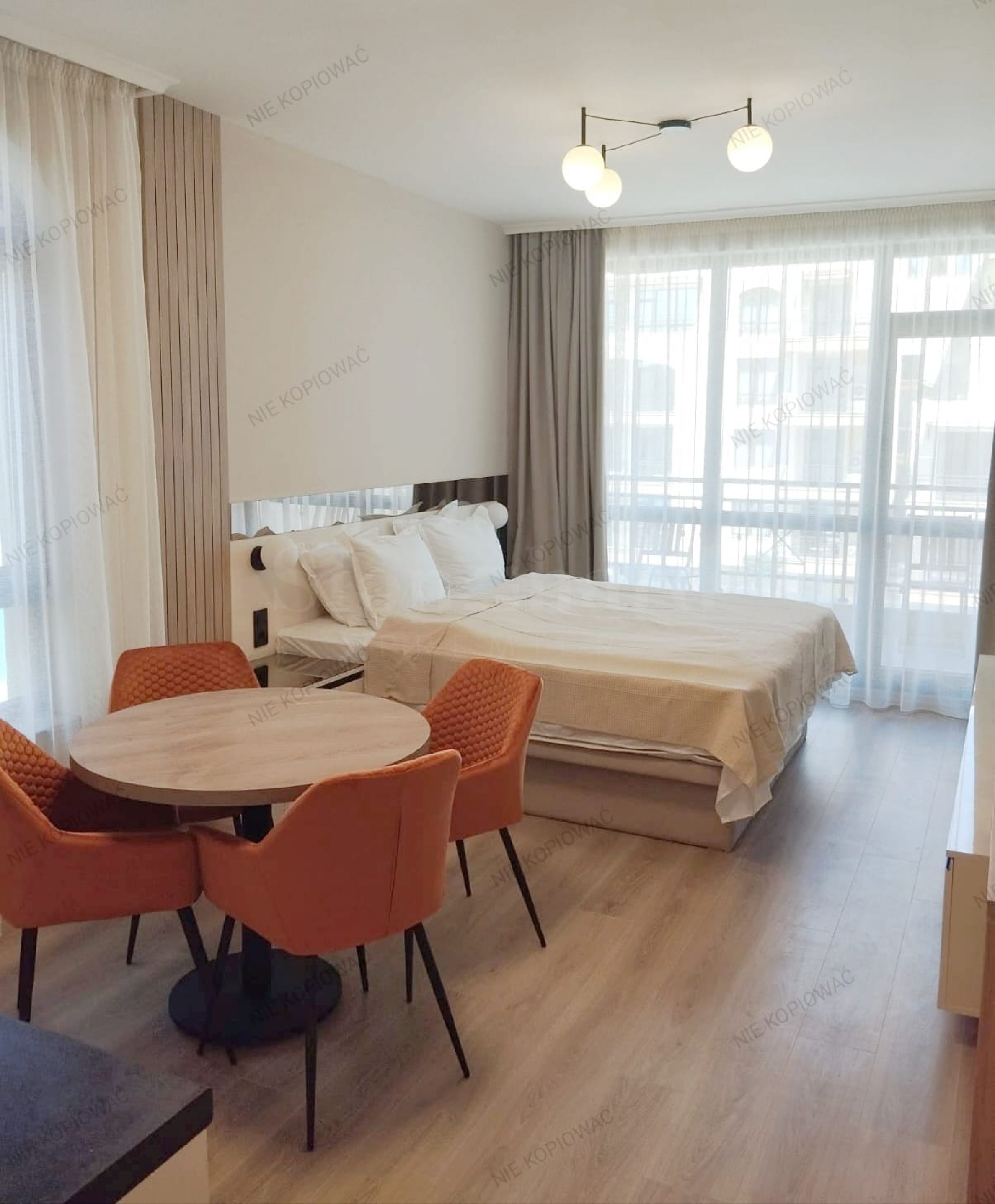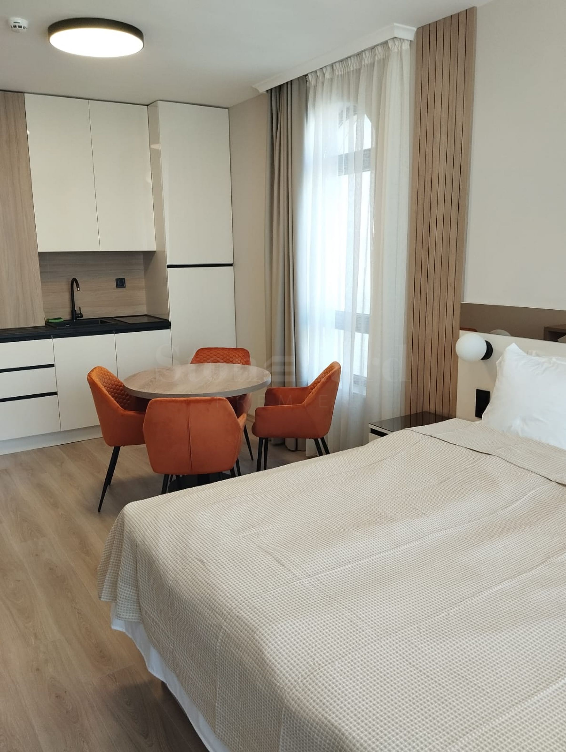 The cozy complex consists of two 6-story buildings, located opposite each other and two single-story buildings, positioned on both sides of the main entrance. Two new 6-story buildings are under construction, which will be parallel to the others and together will form a complete circle around the pool and garden of the complex. The complex has a swimming pool with a children's section and a second, separate children's pool, a playground and a reception. There is a wonderful restaurant, and there are parking spaces next to the building. In the area there is a large supermarket, a SPA and fitness center, restaurants and other amenities.