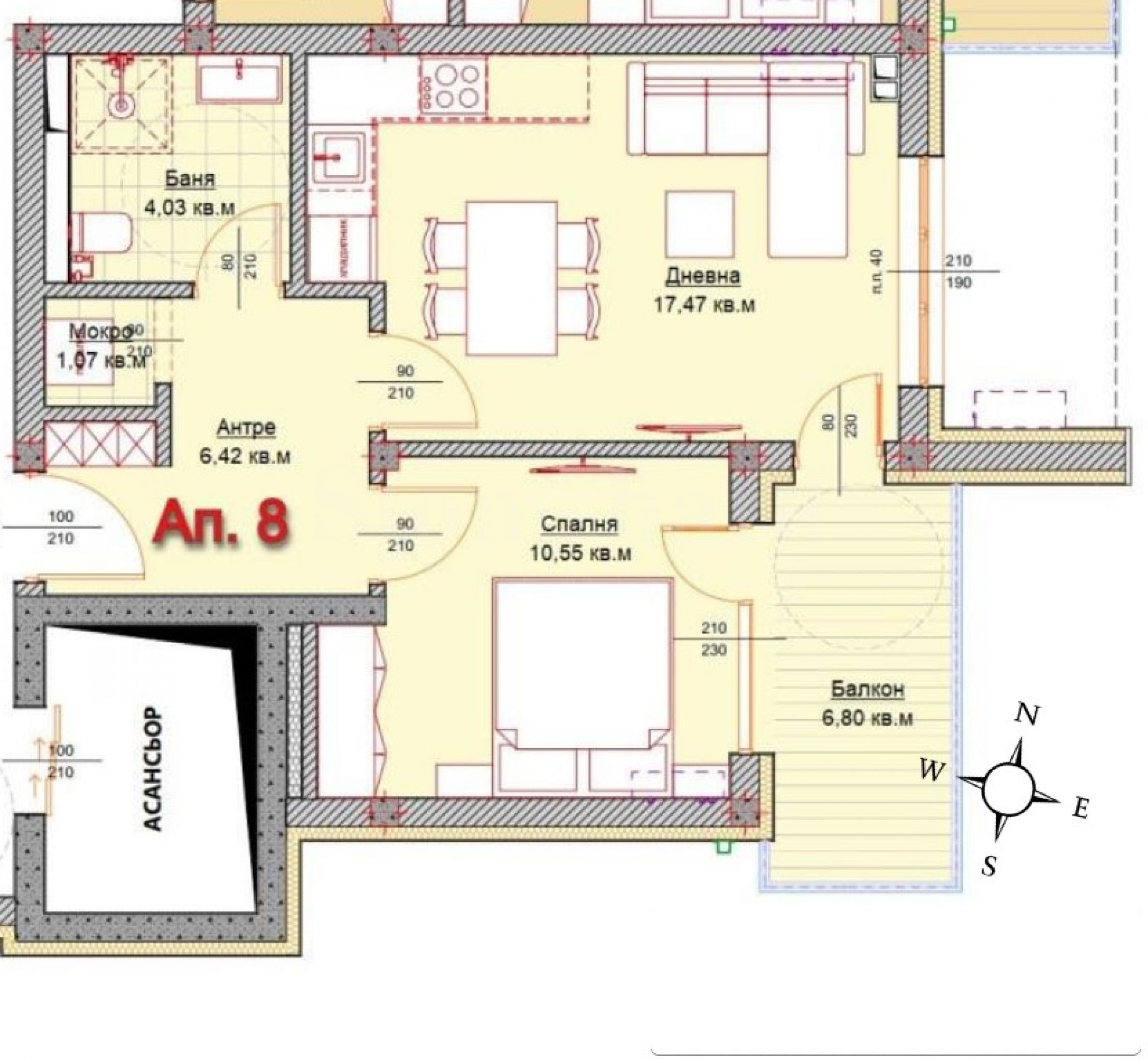 The property has an area of 66.51 m2., located on the 3rd floor in building 2, facing south/east. It is being let in the following degree of completion according to Bulgarian Construction Standards: