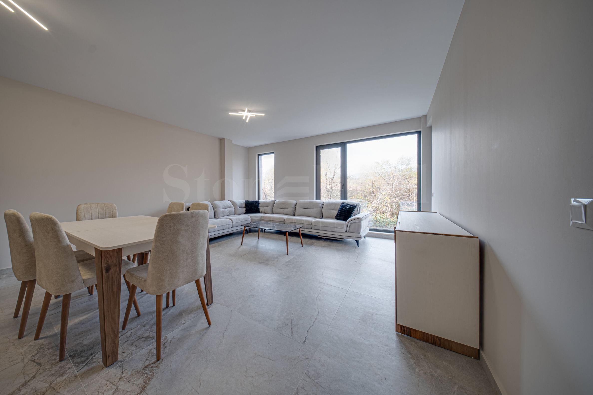 The floors are made of high-quality granite tiles and natural parquet, the walls are painted with latex in neutral colors, and the high-class furniture and equipment are individually designed.