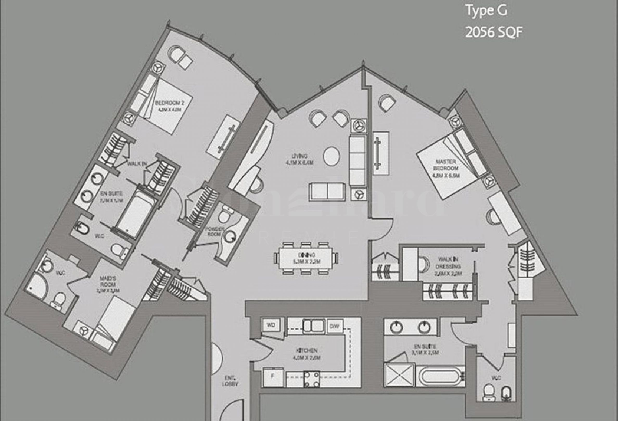 Briefly comprising of modern entry hallway with Kitchen off to the right. The modern Kitchen equipped with top of the range Miele Appliances throughout. Following on from the hallway, is the Lounge/Dining area. Both Bedrooms come at a good size with a walk in wardrobe and an en suite, the maids room you will find opposite bedroom 2.