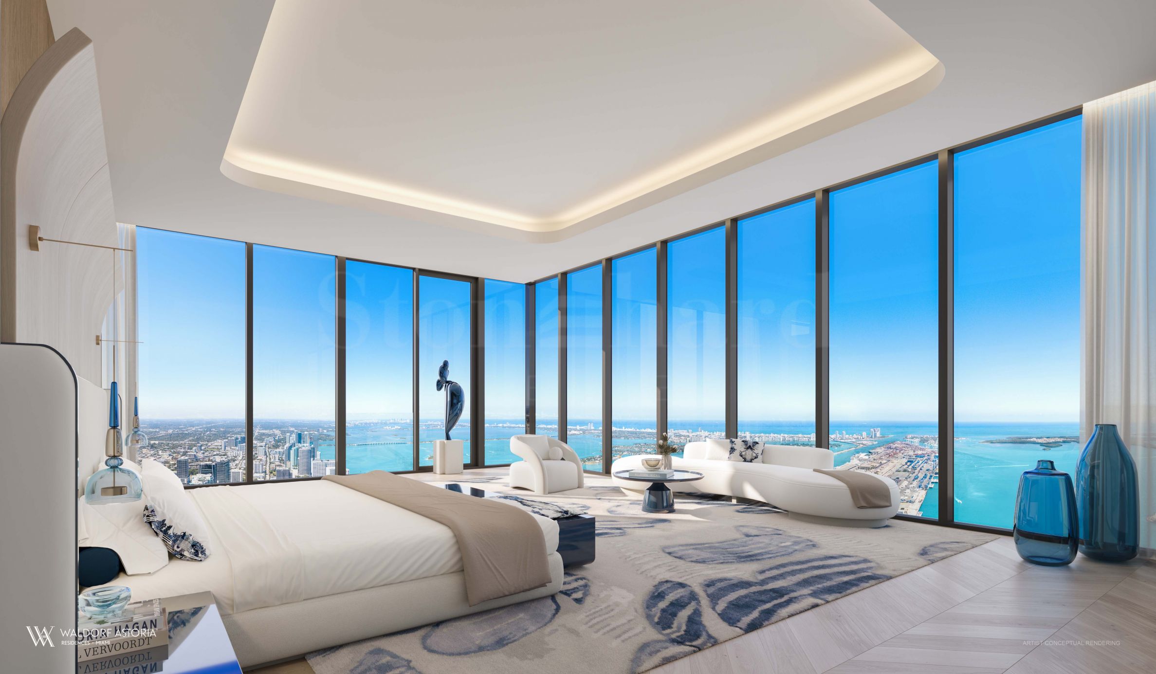 The fact that the residential complex is the tallest building in Miami is far from its only advantage. We could conditionally divide the building into three parts - a hotel area, a residence area and a penthouse area located in the last, highest cube of the building. The hotel area has its own lobby and reception, as well as a separate floor intended for amenities. In combination with private and semi-private elevators, the peace of mind of the residents is guaranteed, eliminating unnecessary fuss around the hotel area.