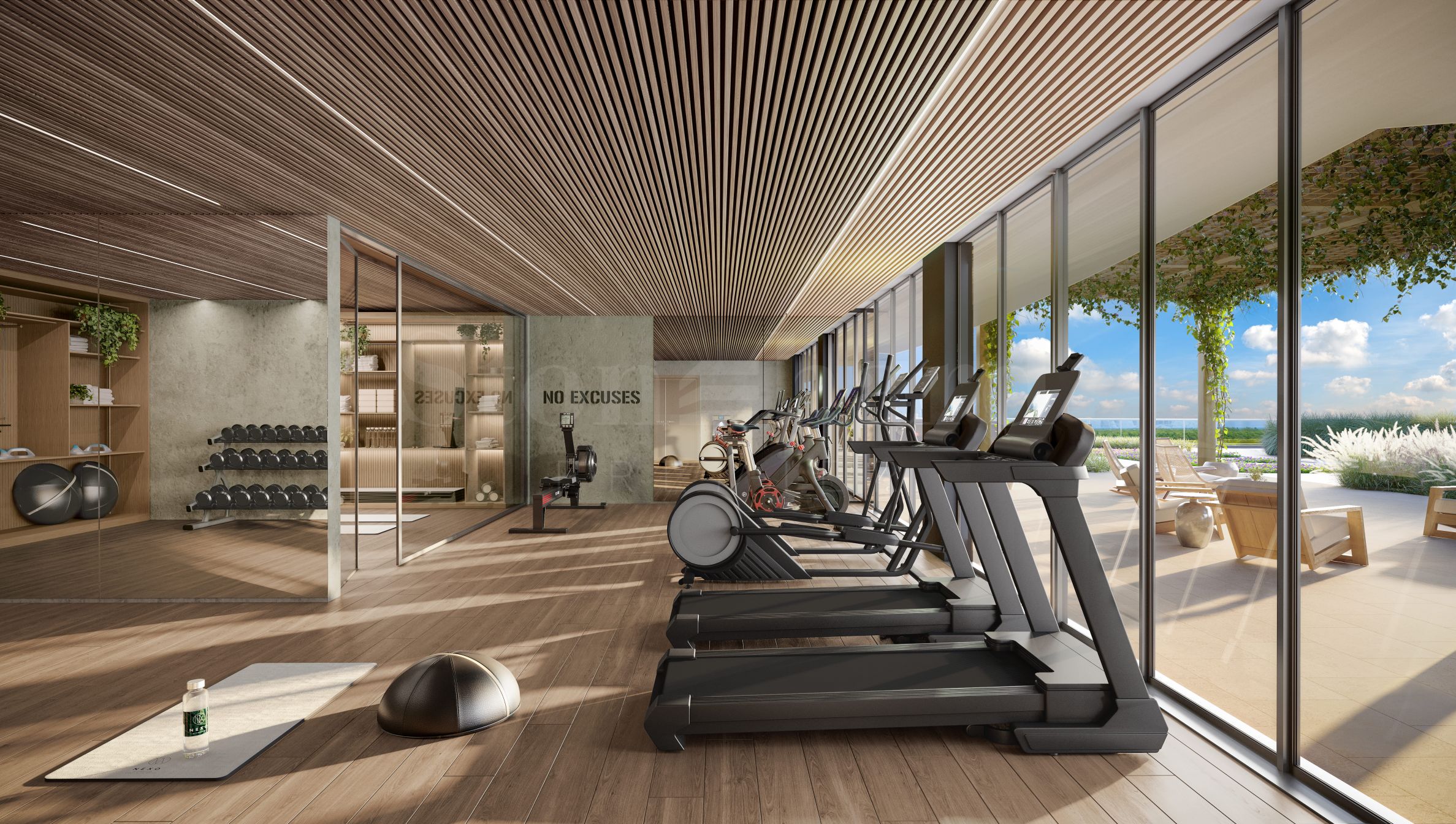 Active lifestyle enthusiasts can take advantage of the indoor and outdoor fitness facilities, fully equipped for comfortable workouts. For relaxation and recovery, there is a yoga room and an outdoor pool with a relaxation area - ideal for recharging after a dynamic day.