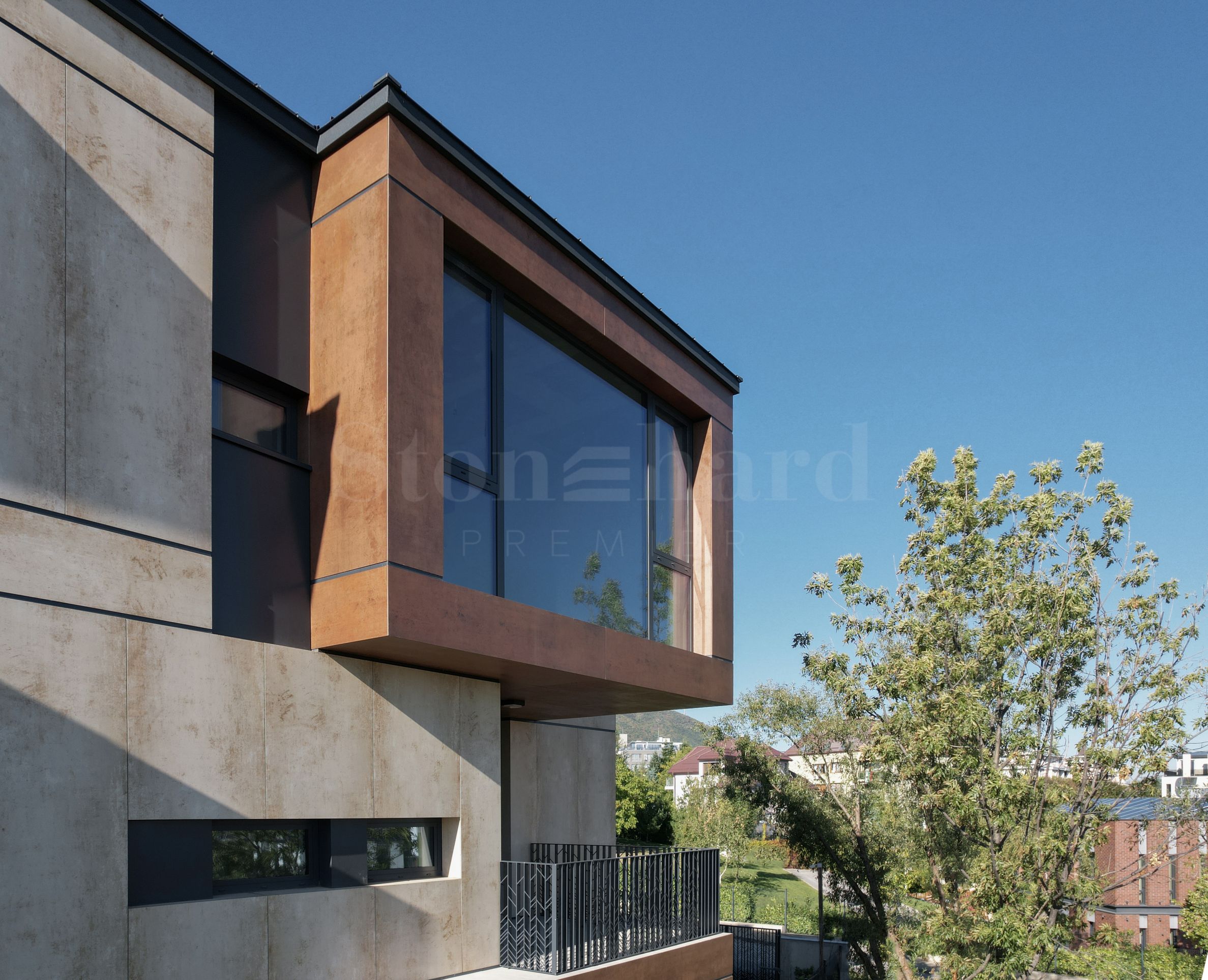 The building is designed with an emphasis on natural light, optimal clear heights and clear volumes. The living spaces are oriented towards panoramic views of the city or the landscaped courtyards, creating a characteristic sense of scale, close to that of single-family houses. The facade is filled with natural materials, ensuring harmony with the natural environment and the mountain context.