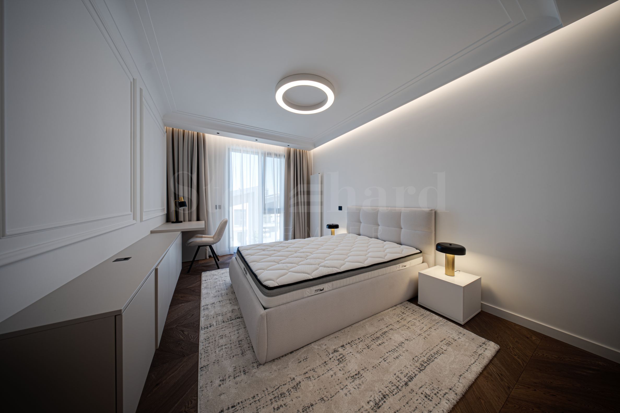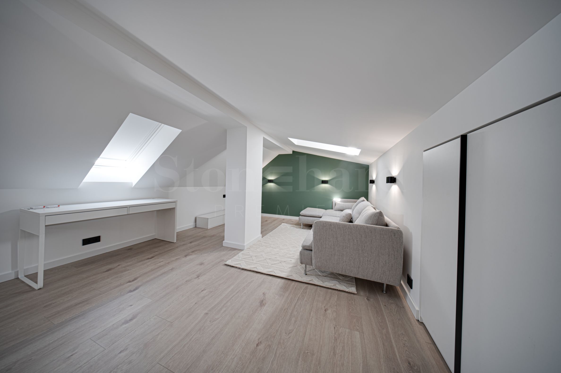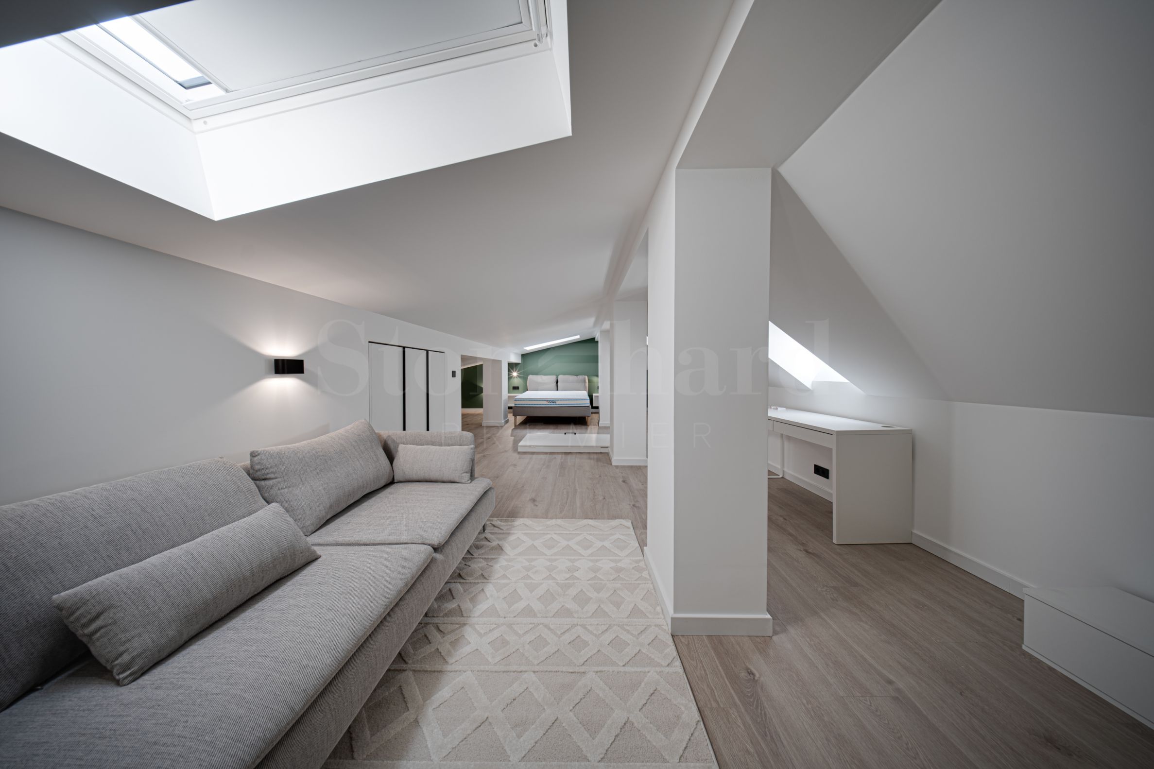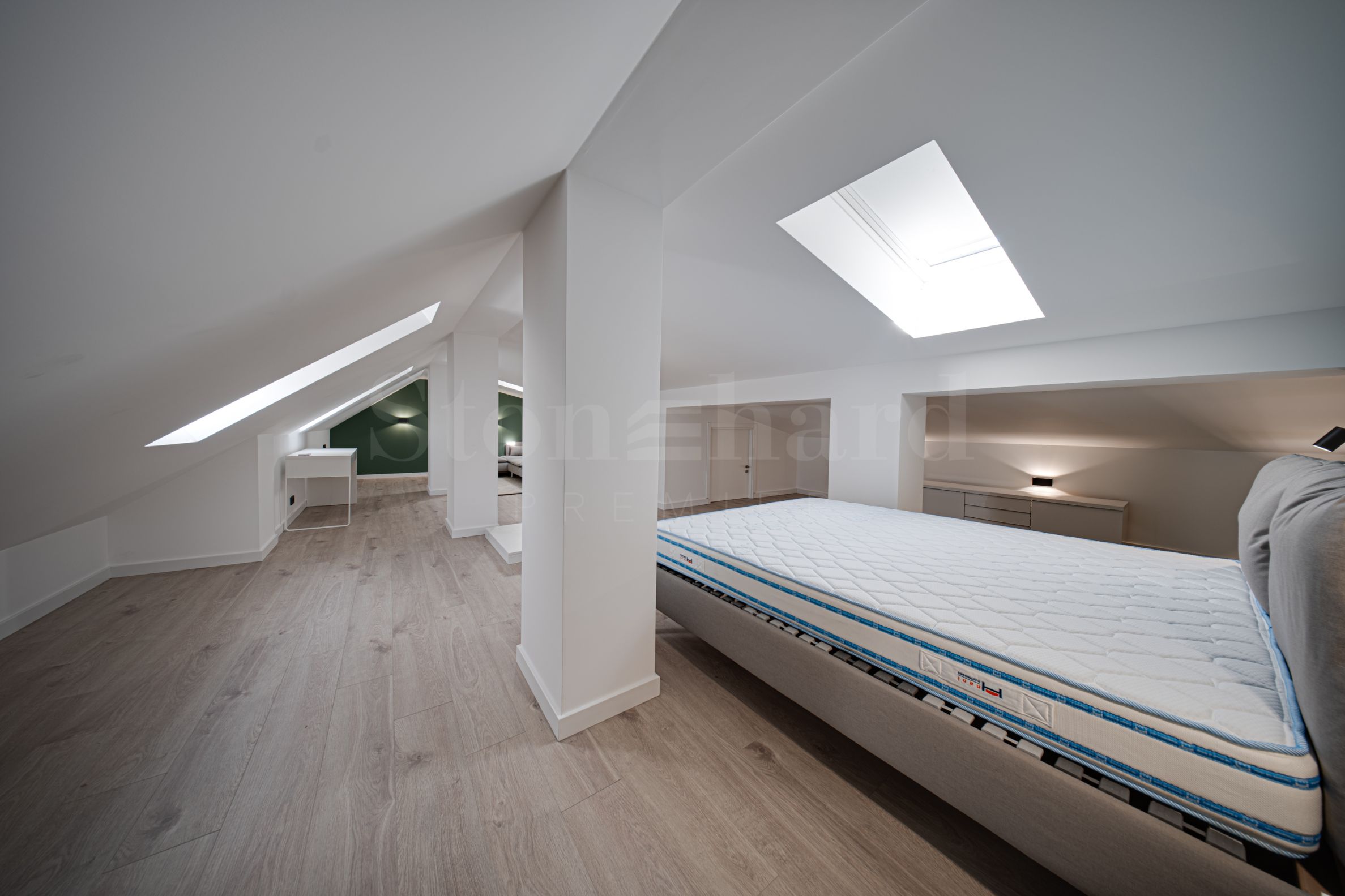 Second level – master bedroom with walk-in closet and private bathroom with toilet, second bedroom with double bed, guest bedroom, study (can be used as an additional bedroom, sofa bed available), bathroom with toilet;