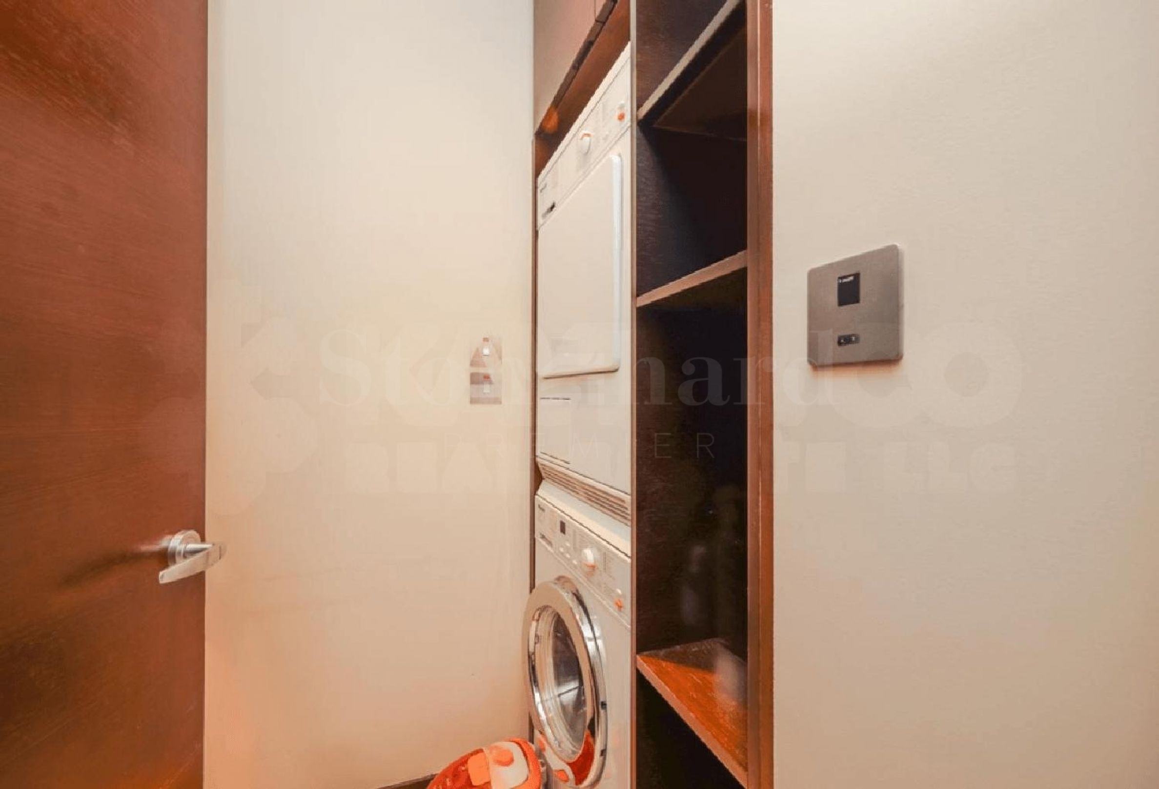 • The apartment is equipped with a built-in TV cabinet, a wine chiller, and an open plan kitchen for modern, convenient living