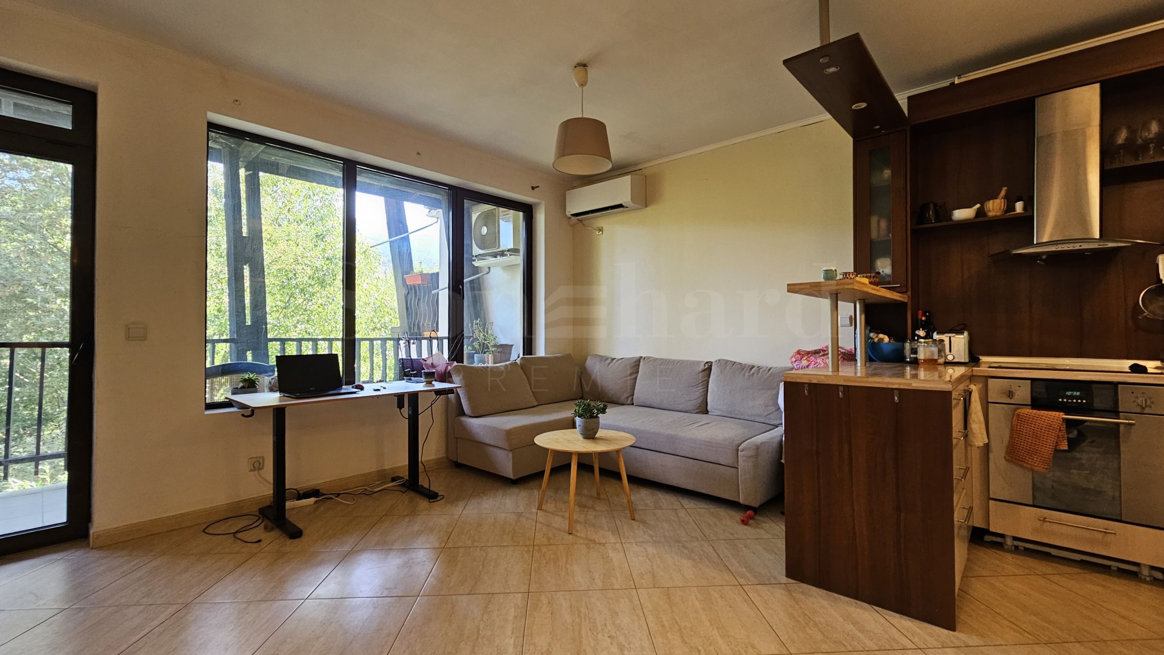 One-bedroom apartment with a yard and a garage next to the park in the "Gorna Banya" district