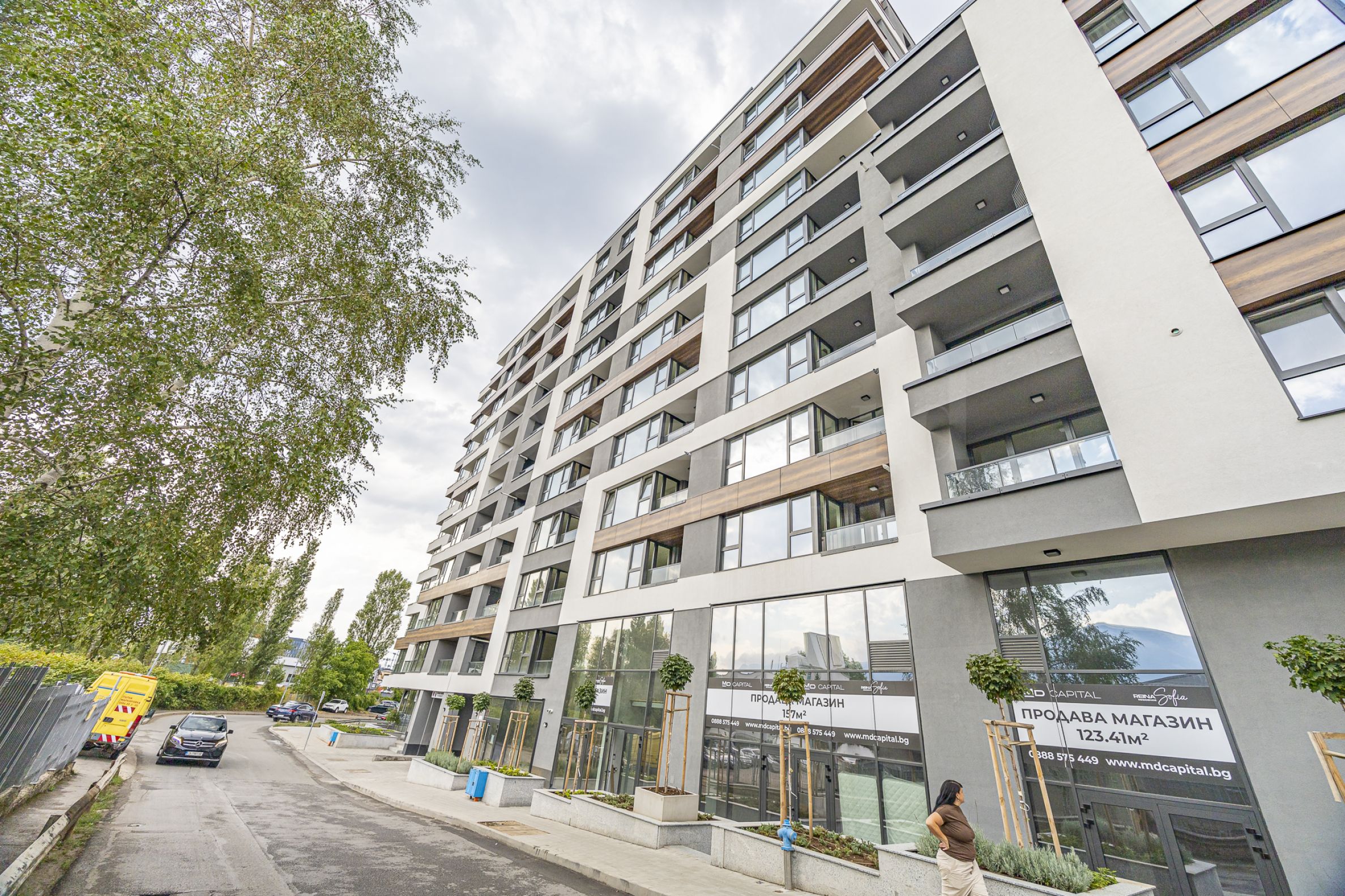Reina Sofia Residence is a stylish and modern residential building located in the heart of Sofia. It combines elegant architecture with high standards of construction and energy efficiency. It offers spacious apartments, smart home management technologies and quality materials, panoramic mountain views. The complex is designed in two buildings, built in a connected development in five entrances, has a total of 158 apartments, which are characterized by functional and bright rooms. On the ground floor there are commercial premises and a restaurant with a garden, and parking is provided with 195 parking spaces at the underground level. The security and convenience of the residents are ensured by access control to the underground level of the building and video surveillance and 24-hour security at the entrance to the building.