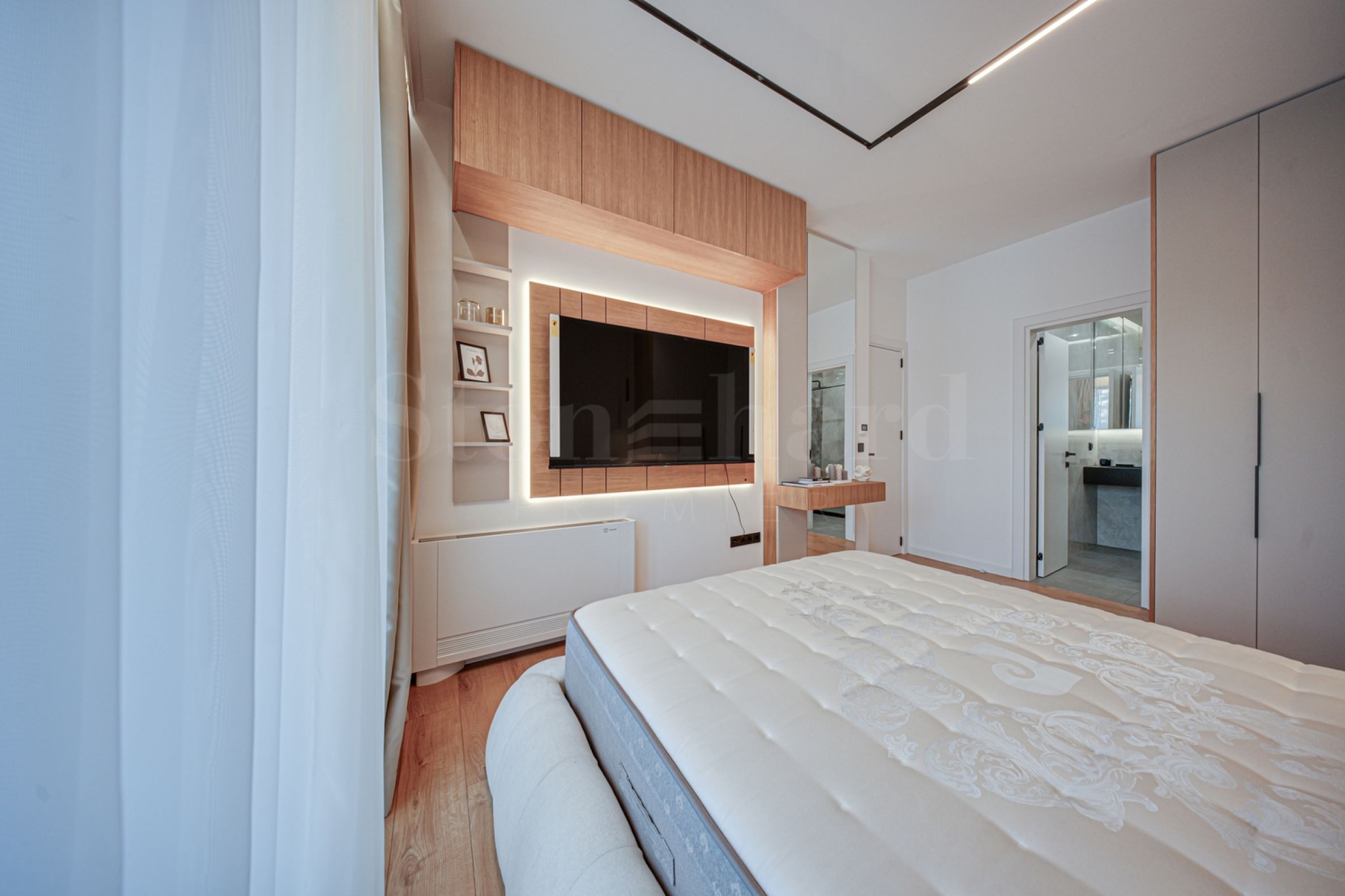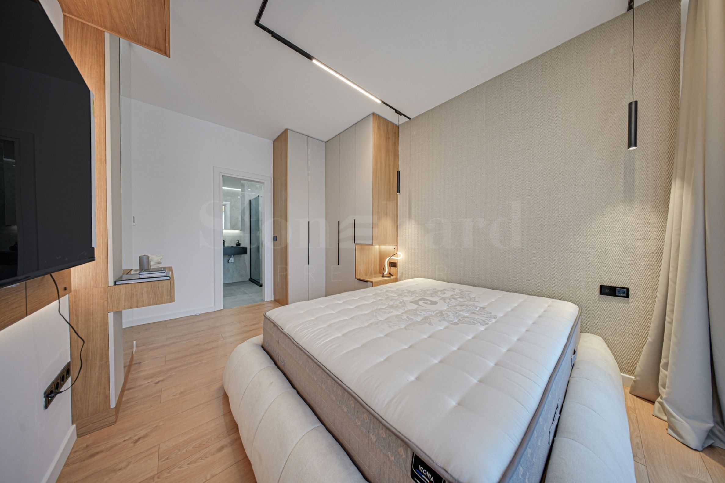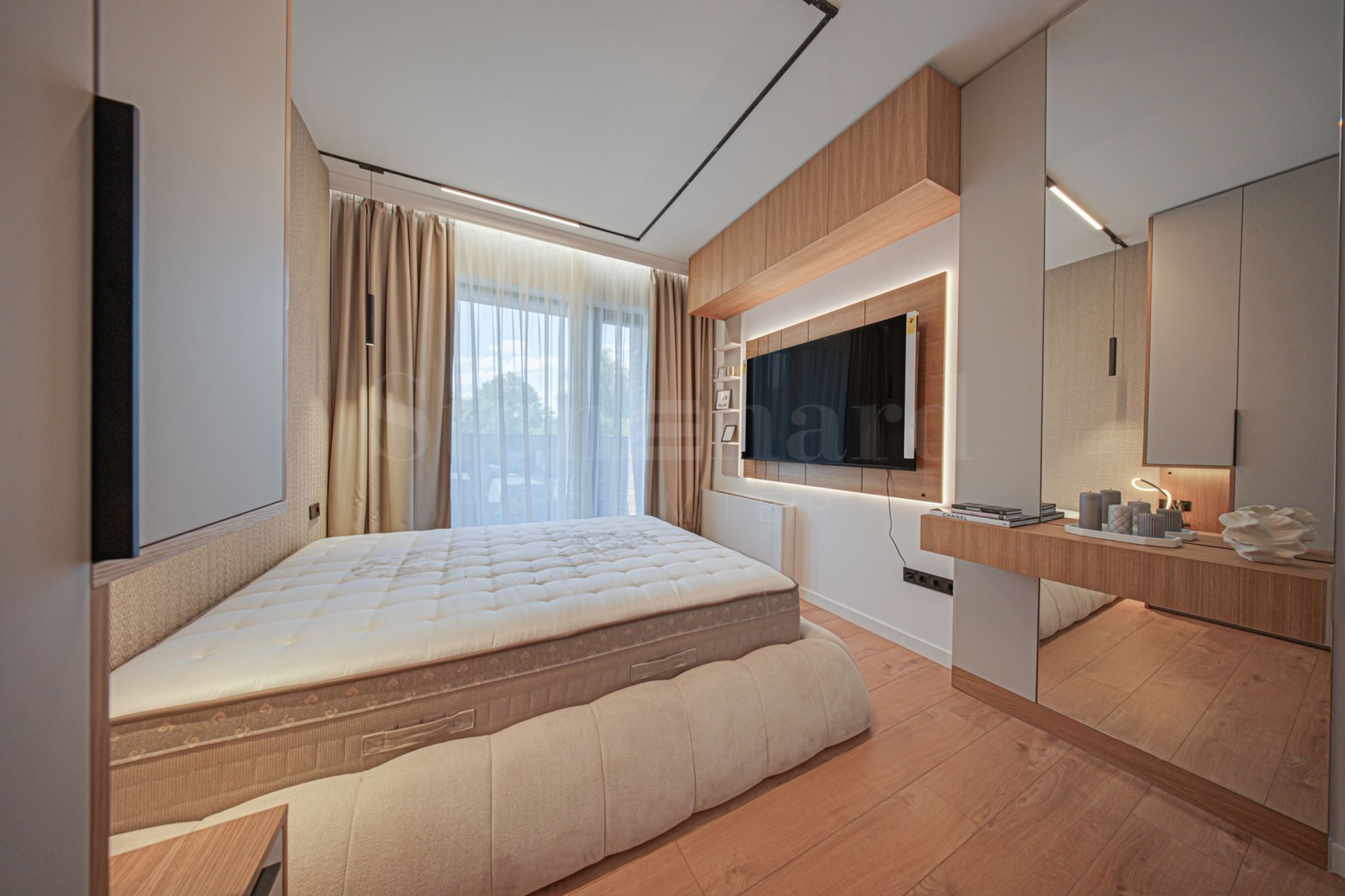 The 110.81 sq m apartment is located on the 2nd floor, overlooking the courtyard. The property is bright, offers a modern look and an interior with clean lines. The large windows contribute to an abundance of space and light, and the quality materials and refined furniture - to coziness and elegance. The heating is underfloor through a gas boiler, and air conditioners have been additionally installed for comfort during the summer months.